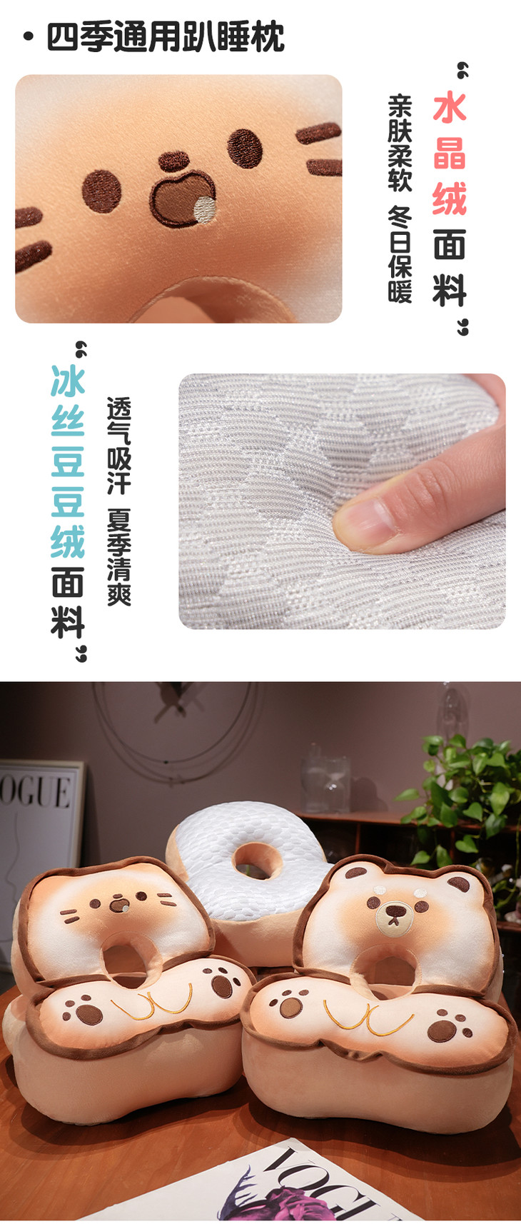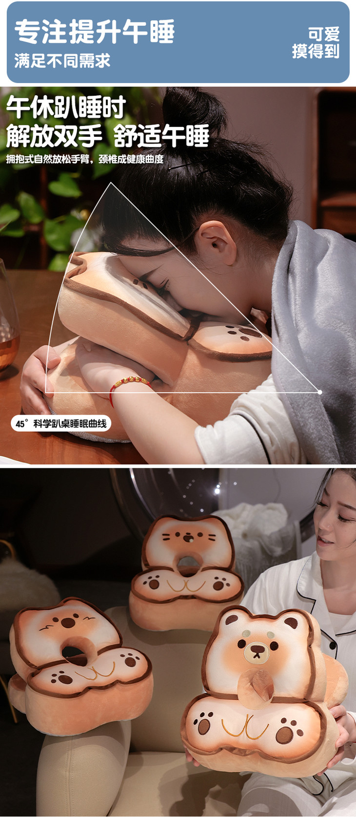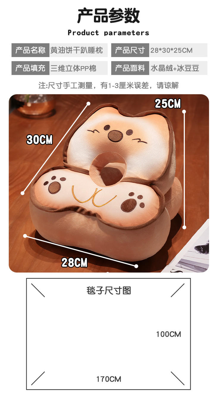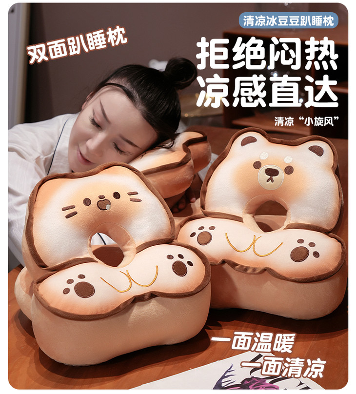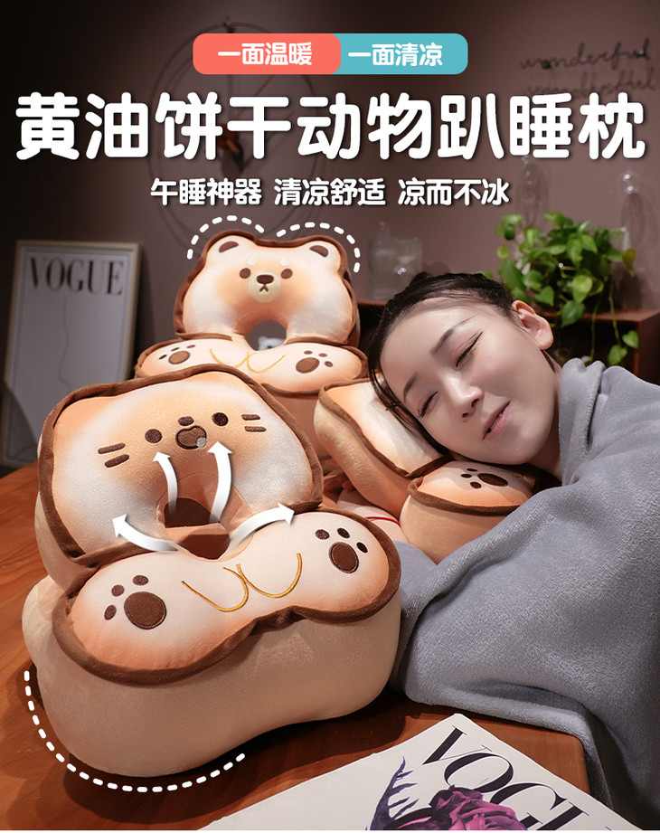 自然醒黄油饼干冰豆豆双面午睡枕办公室午休神器小学生趴睡枕桌上趴枕抱QYL