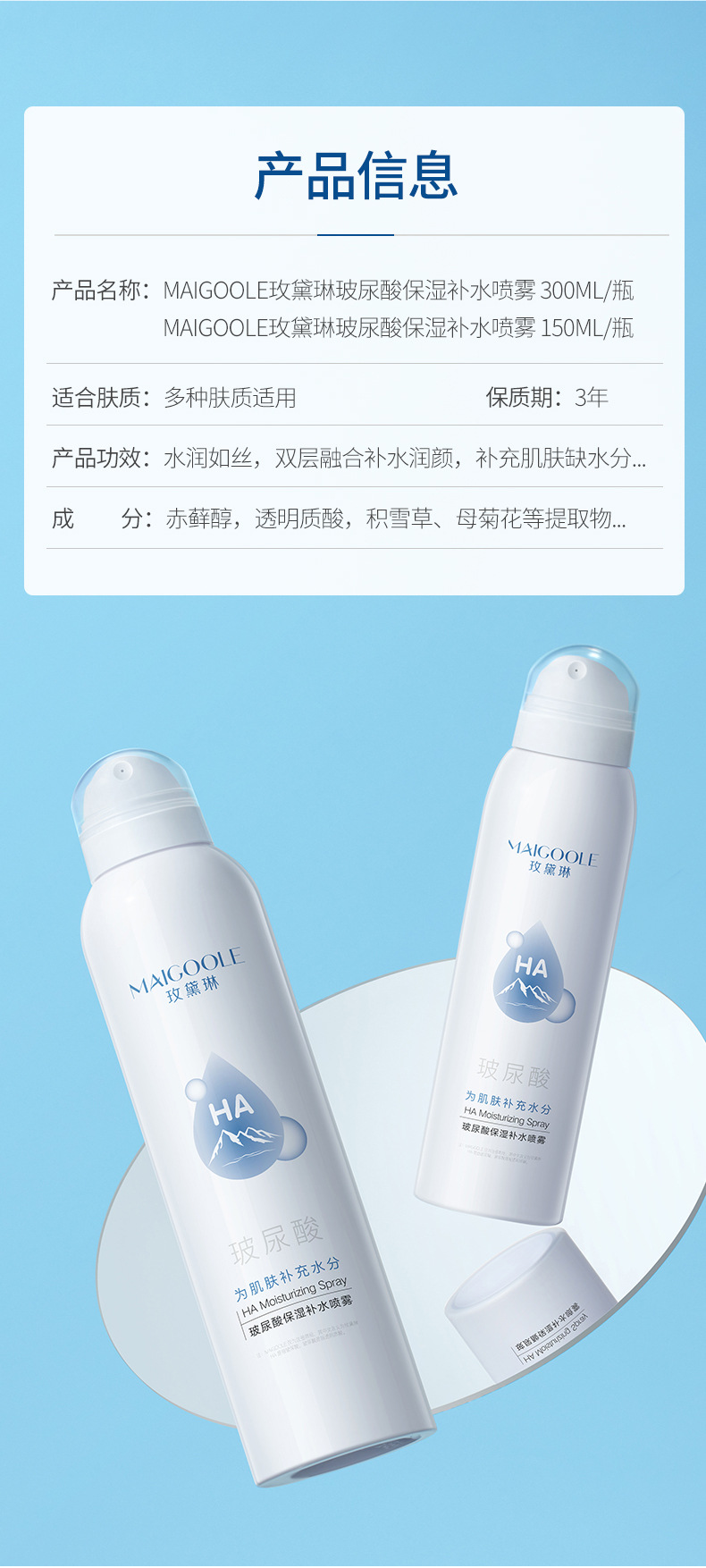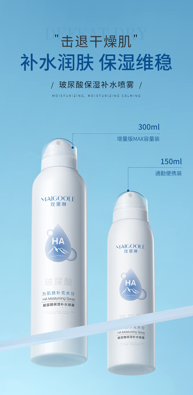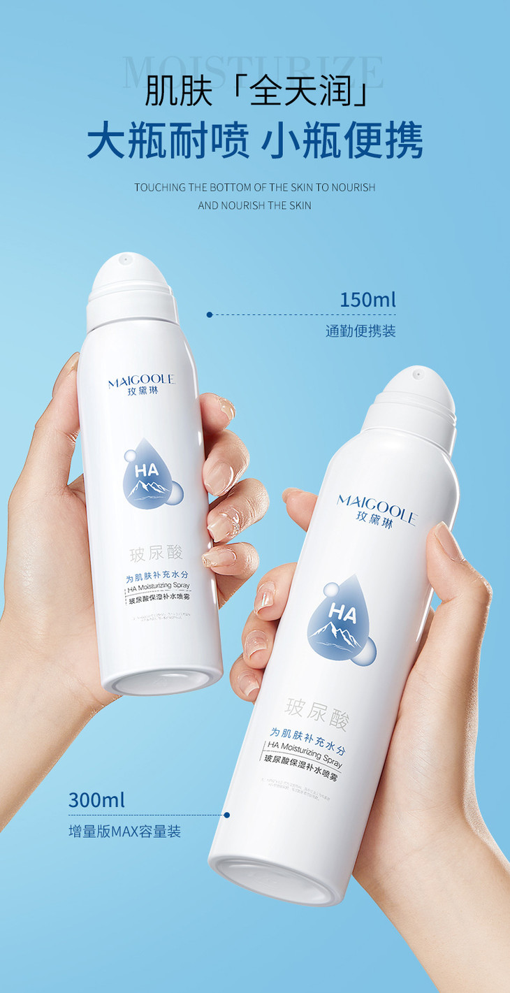 【买1送1 玫黛琳玻尿酸保湿补水喷雾】细腻爽肤水便携干燥补水喷雾
