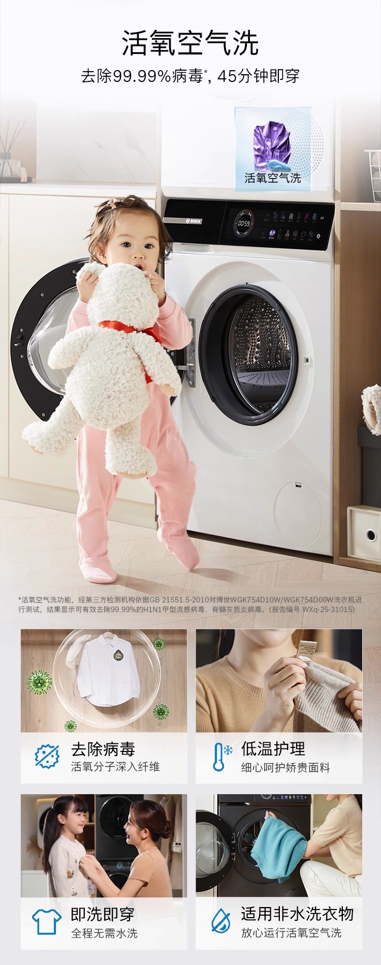 博世(BOSCH)6系Modena10KG变频滚筒洗衣机家用 活氧空气洗 智能投放洗衣液蒸汽除皱 深层净洗 智能投放 全自动烘干机冷凝器自清洁 WGK754D00W+WQK755U00W