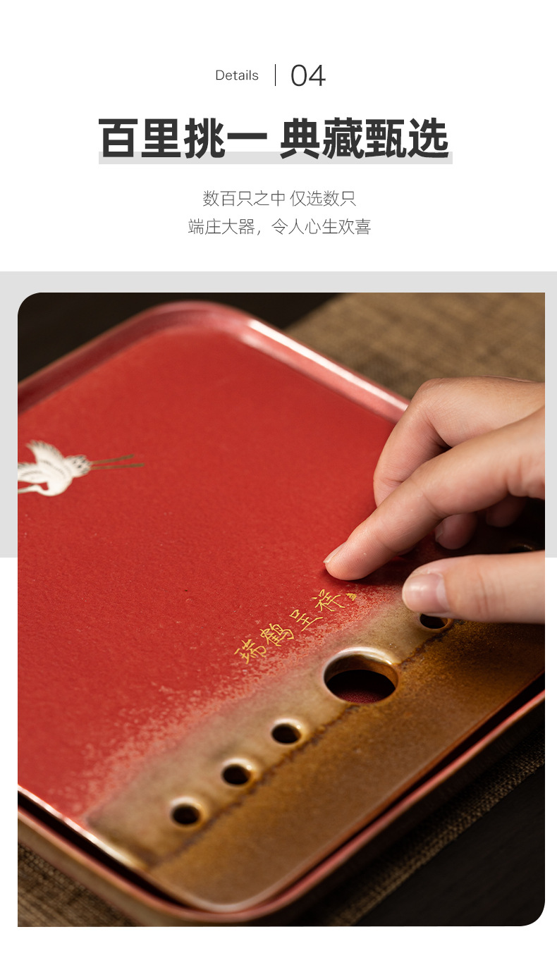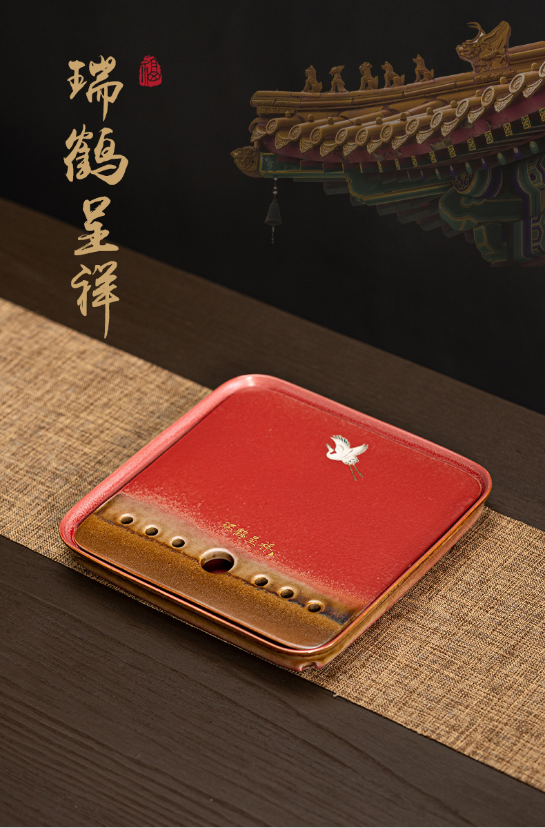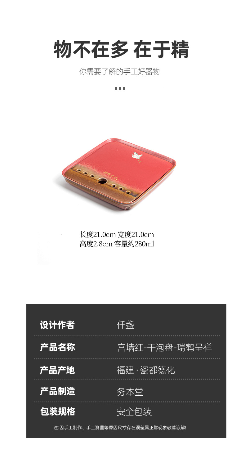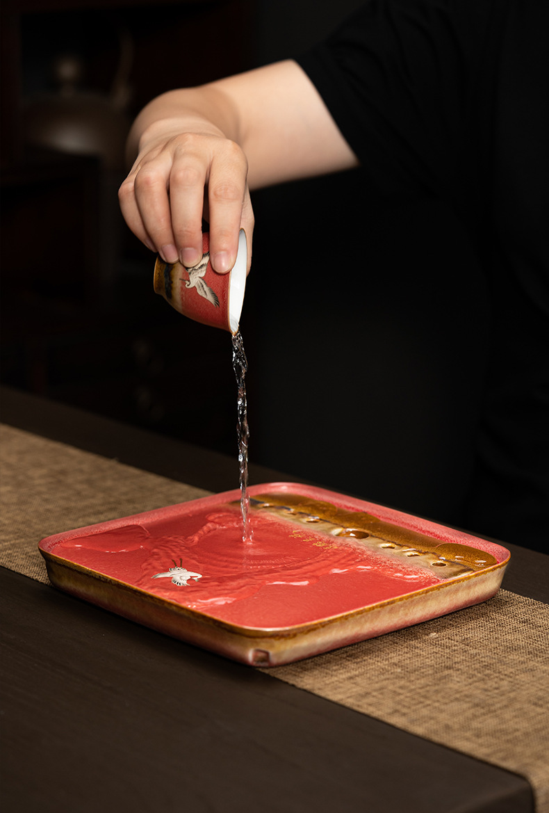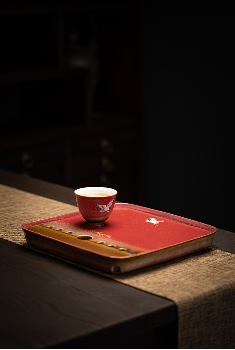 宫墙红蓄水茶盘红色干泡盘结婚茶盘喜庆大红色圆形新娘嫁妆用品