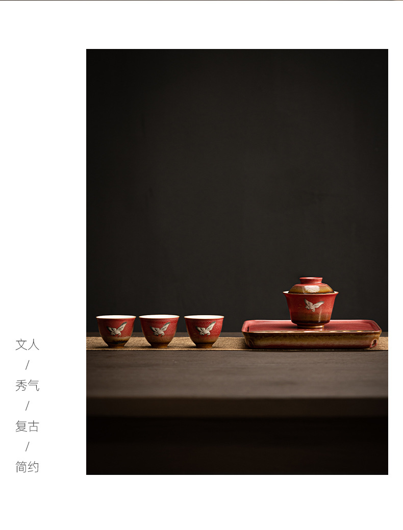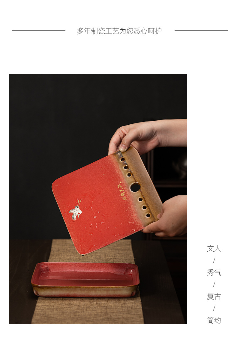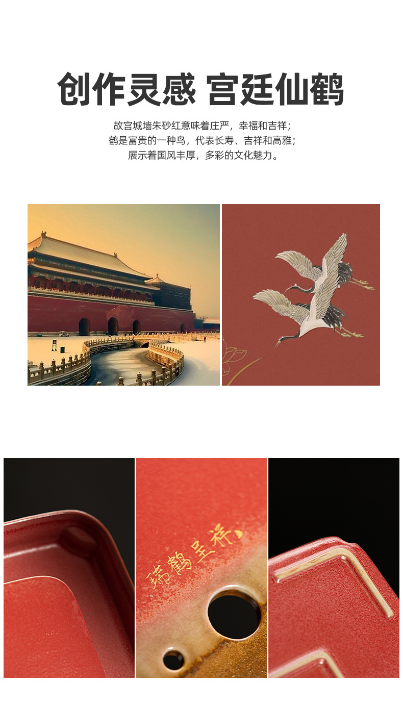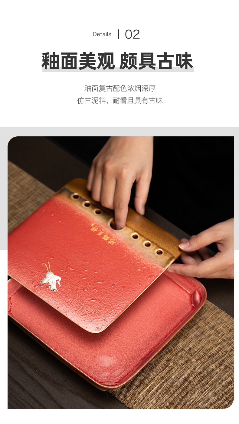 宫墙红蓄水茶盘红色干泡盘结婚茶盘喜庆大红色圆形新娘嫁妆用品