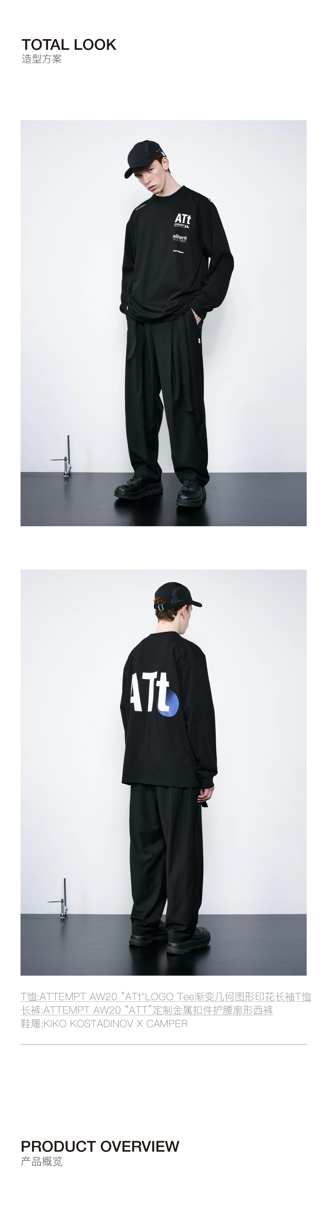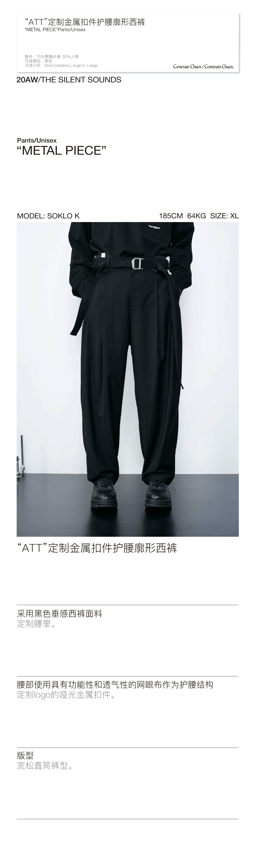 ATTEMPT AW20 “ATT”定制金属扣件护腰廓形西裤宽松垂感休闲西裤