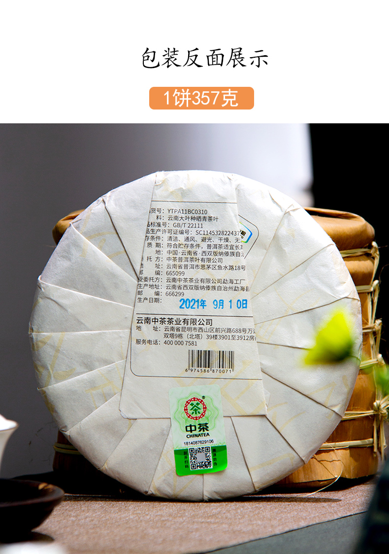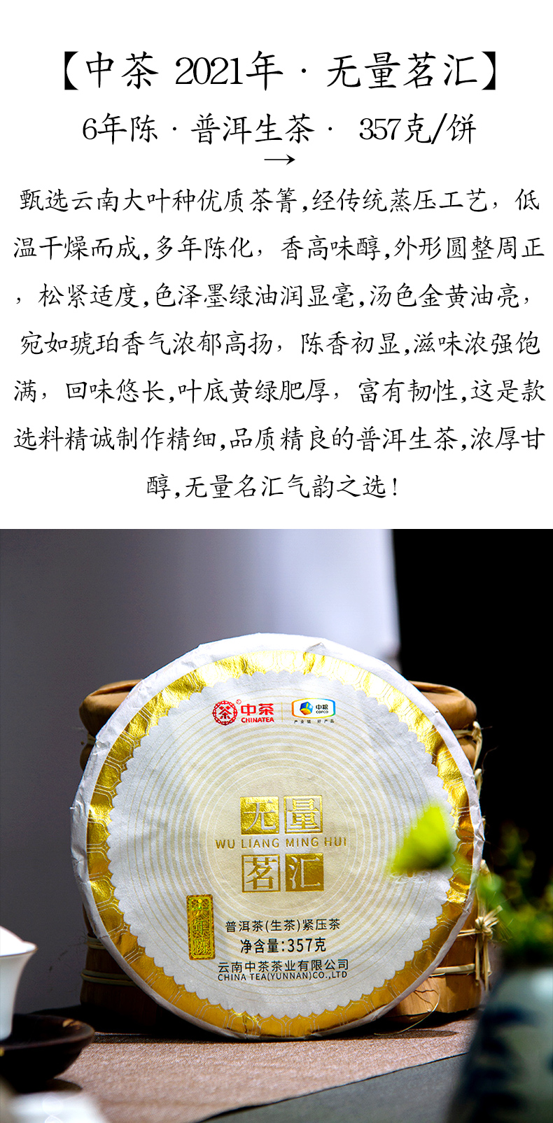 中粮-中茶2021年无量茗汇(6年陈)云南普洱茶生茶七子饼357g/饼/干仓直发
