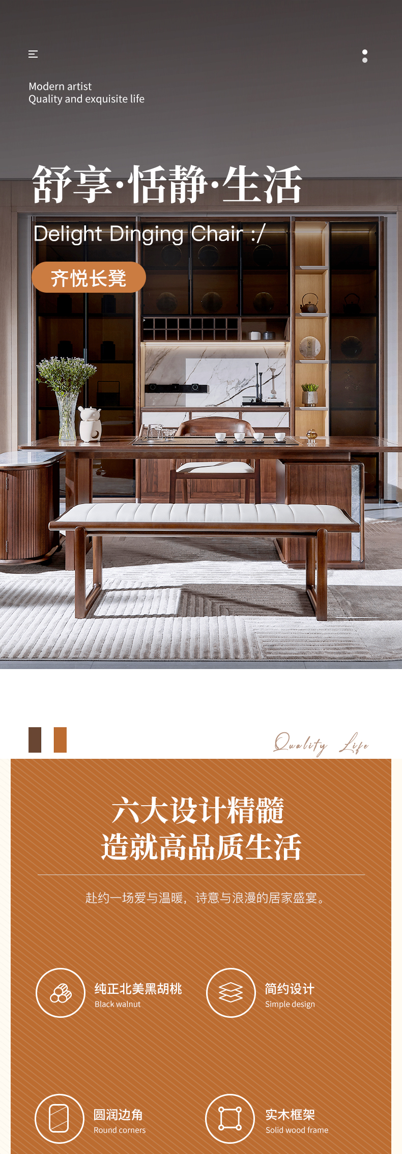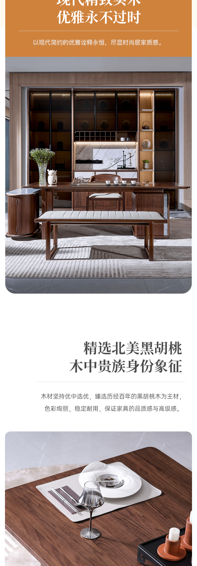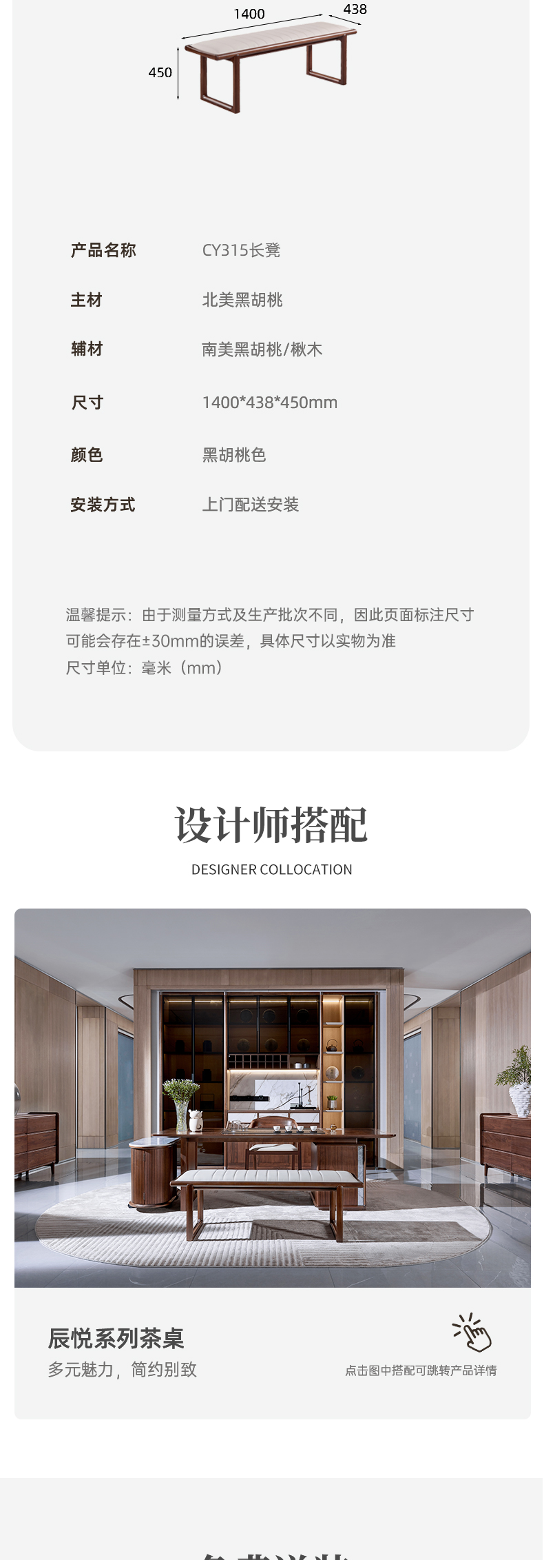 【现代风-CY315长凳】现代风/餐厅/茶室/北美黑胡桃/实木+超纤皮长凳