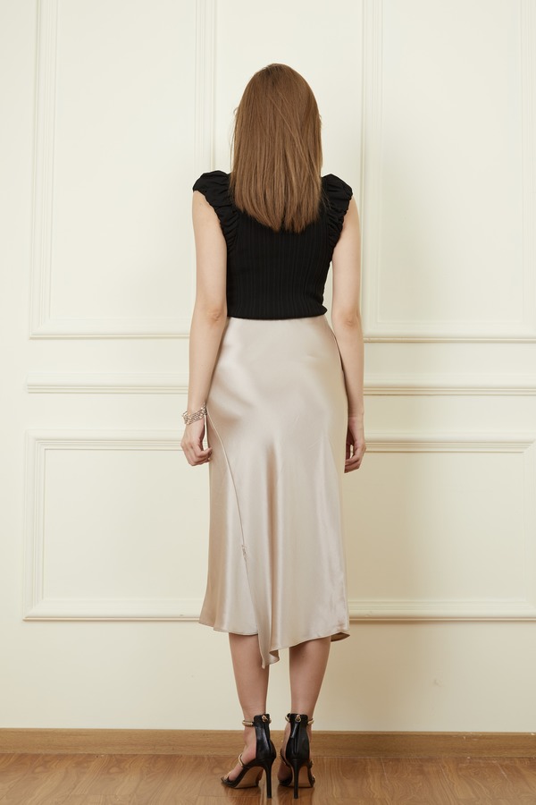 Le Malene 优雅黑色针织上衣缎面半裙套装 18458