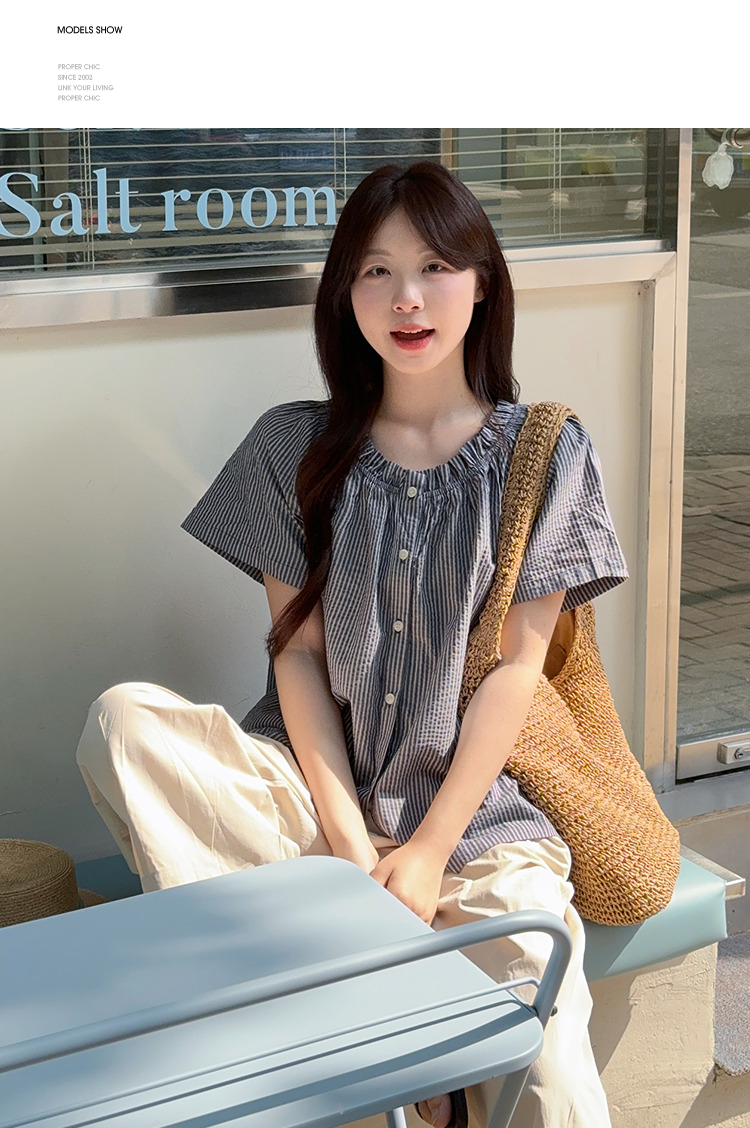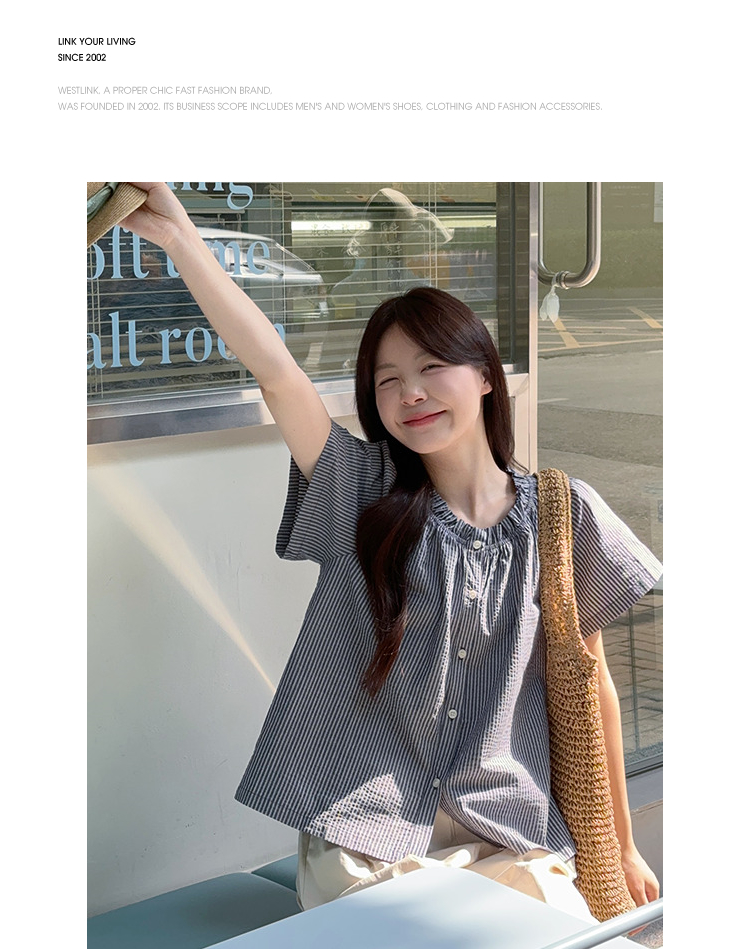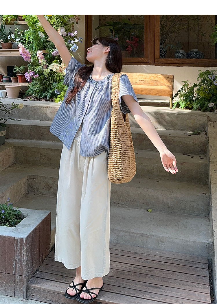 西遇条纹短袖开衫套装女夏季新款七分宽松高腰阔腿裤两件套SS050583/SS050584