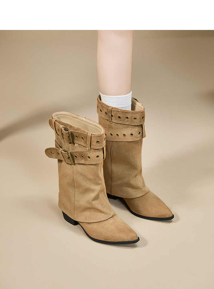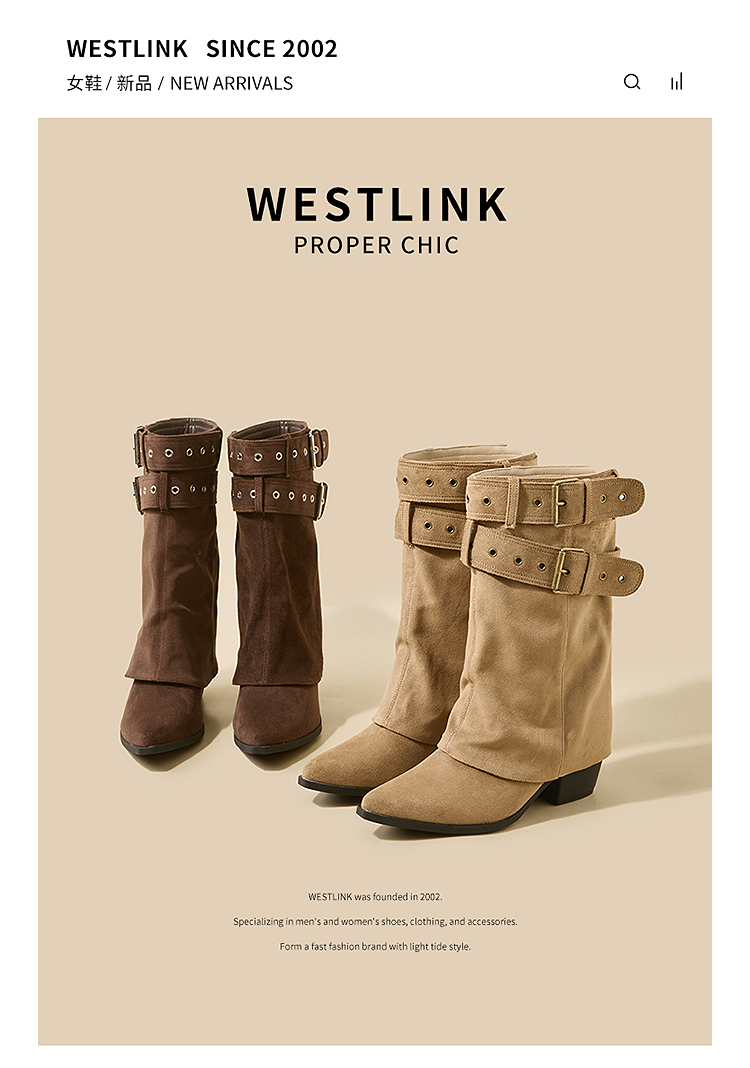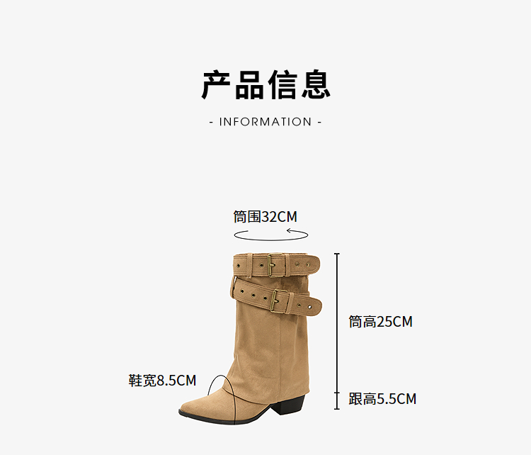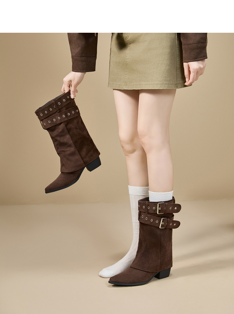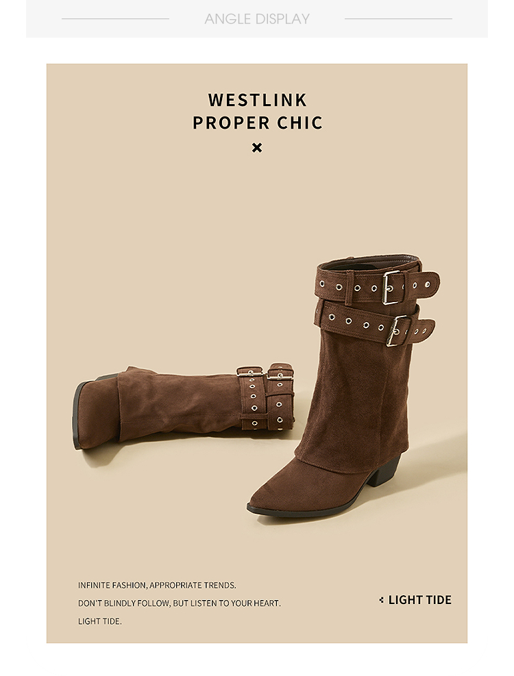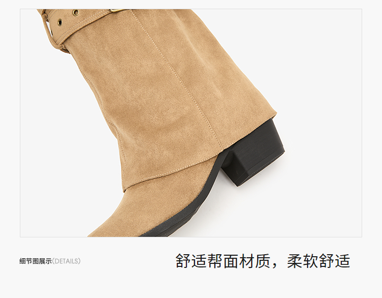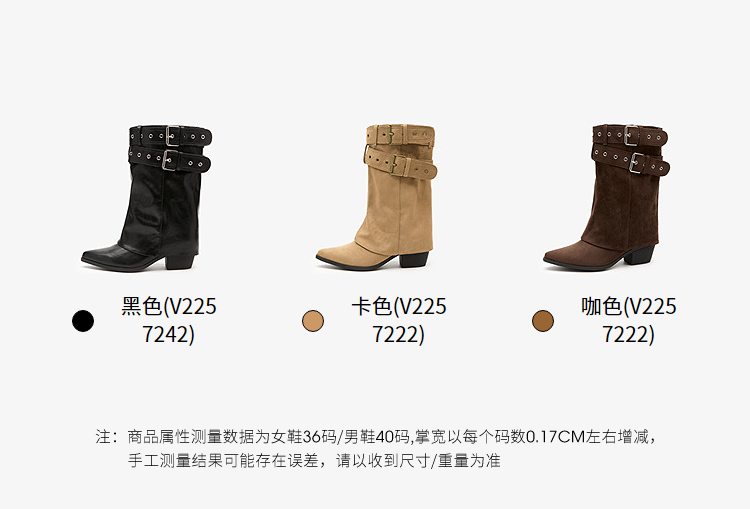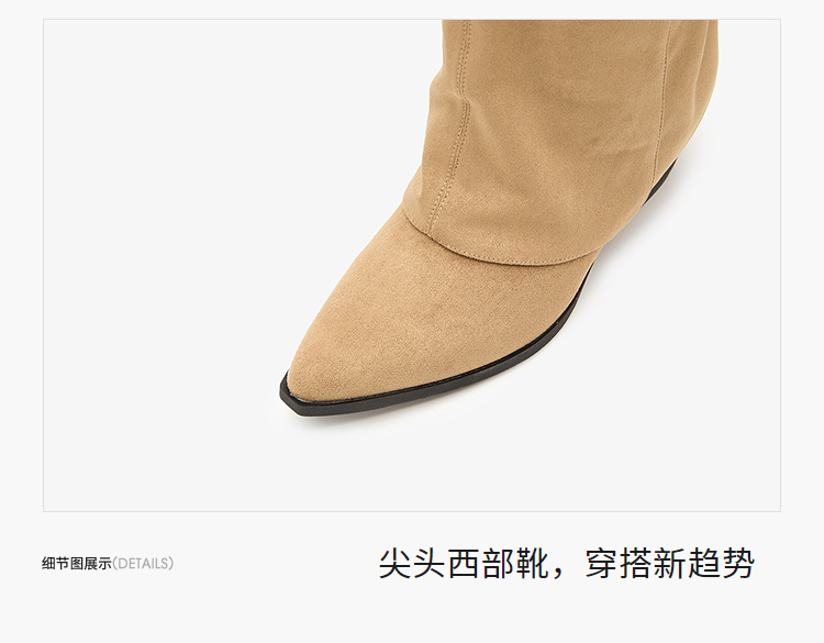 西遇尖头裤管靴女新款秋冬辣妹美拉德西部牛仔靴粗跟中筒靴子V2257242/V2257222