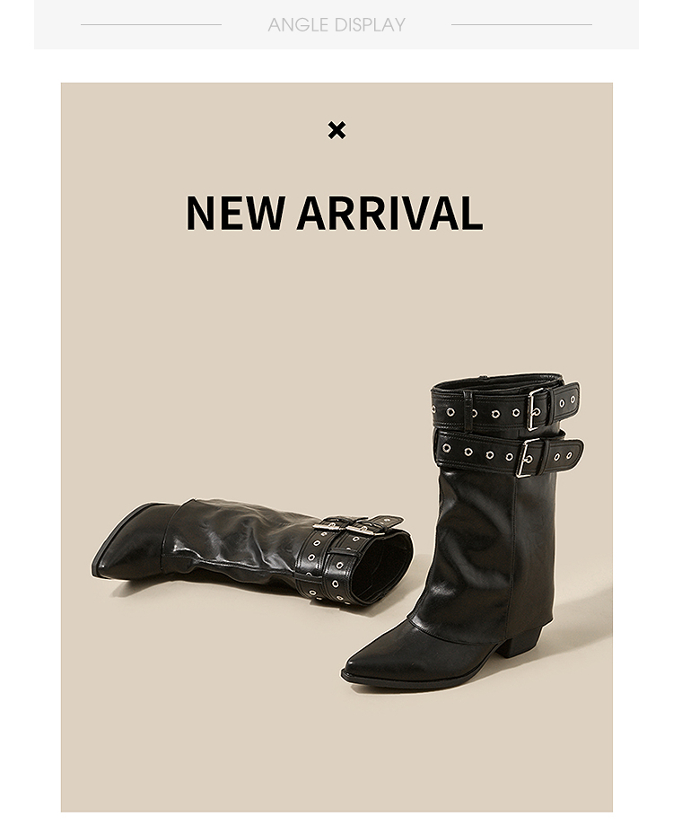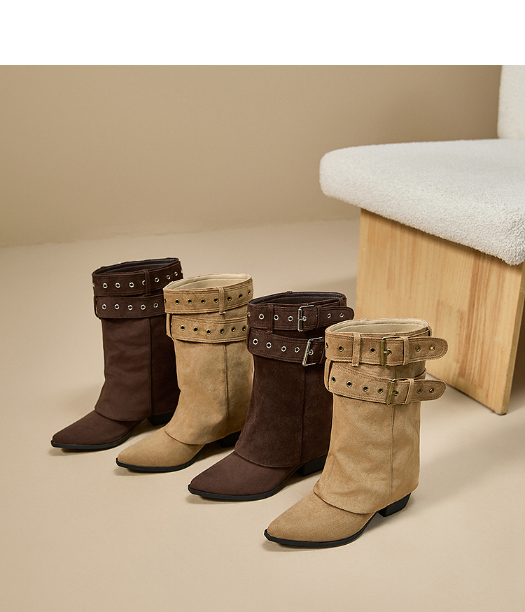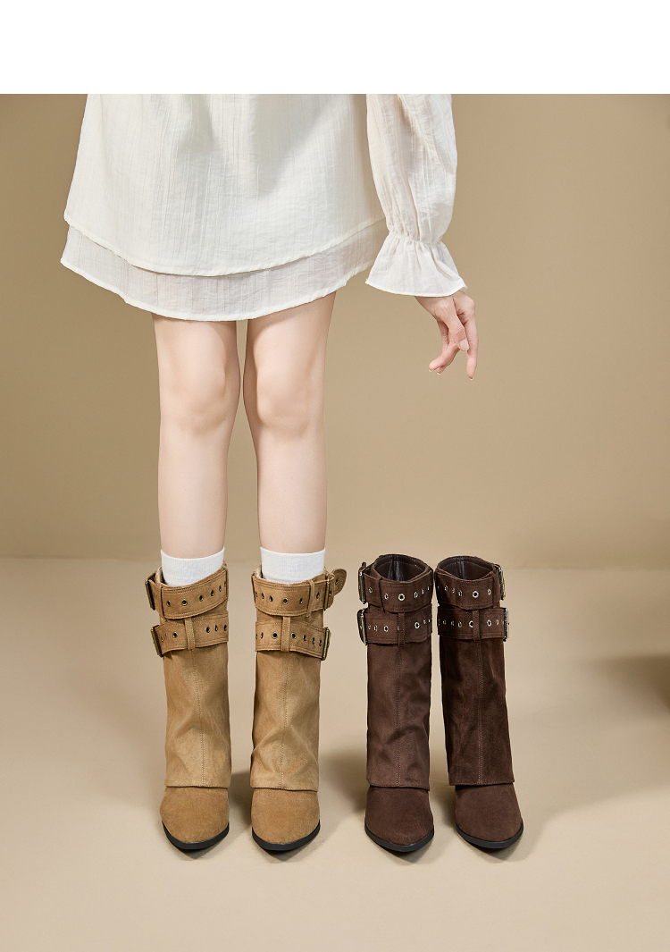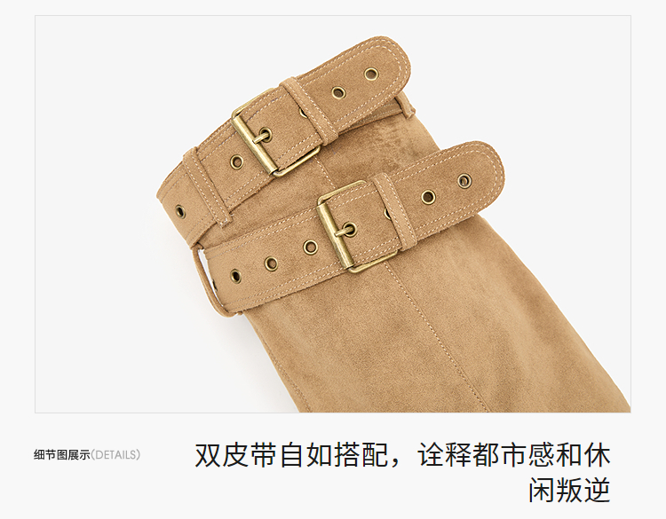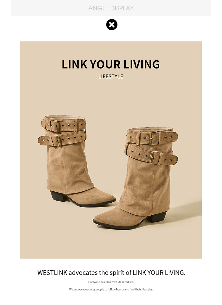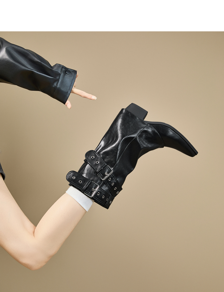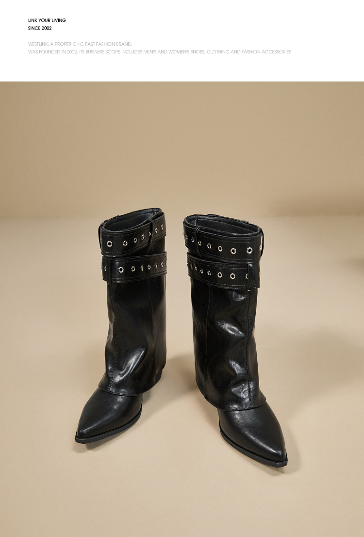 西遇尖头裤管靴女新款秋冬辣妹美拉德西部牛仔靴粗跟中筒靴子V2257242/V2257222