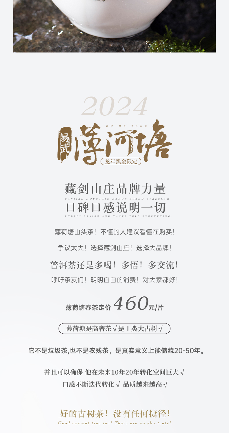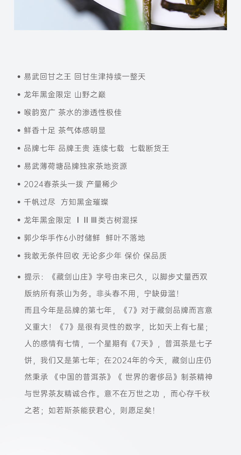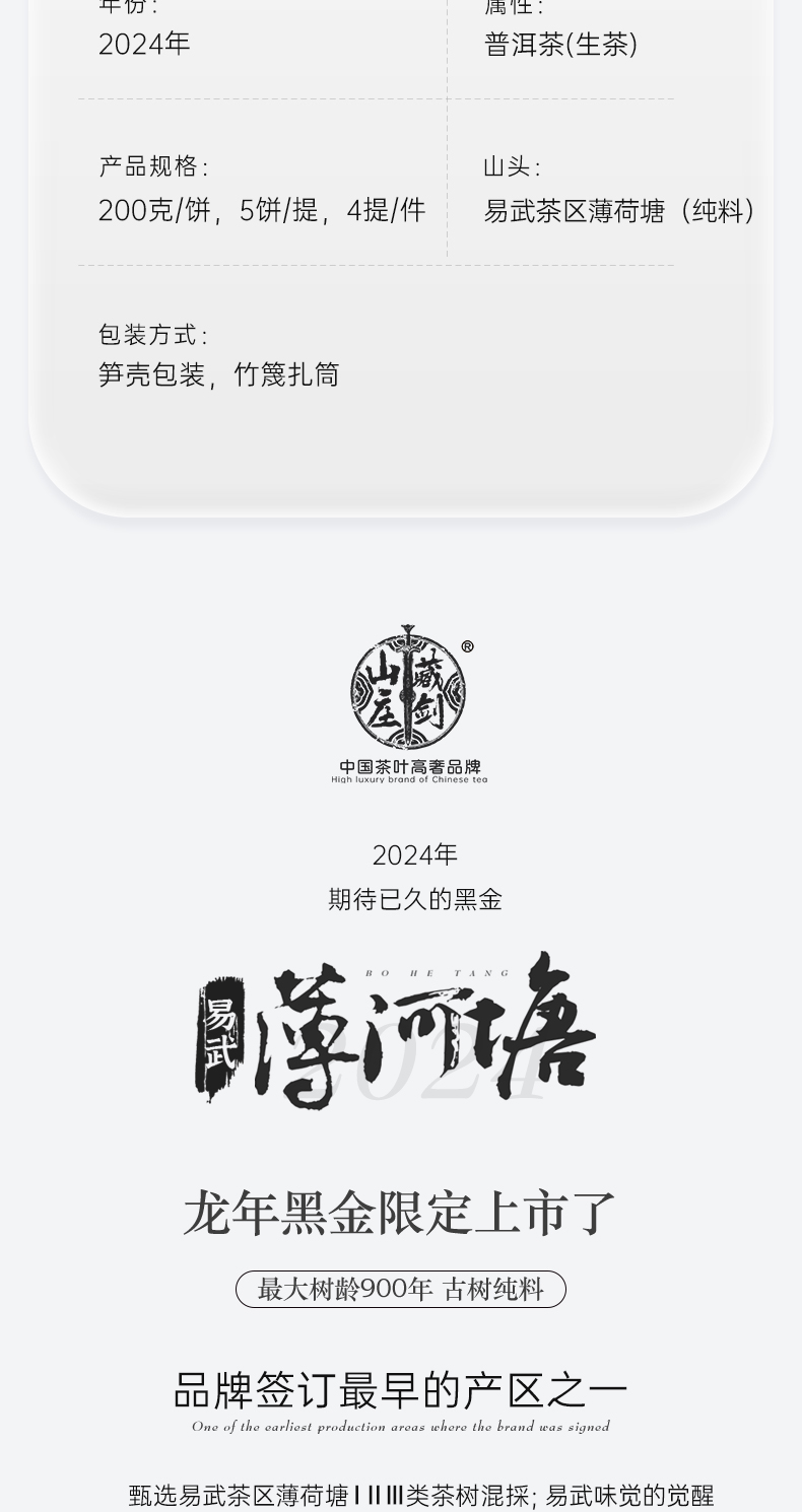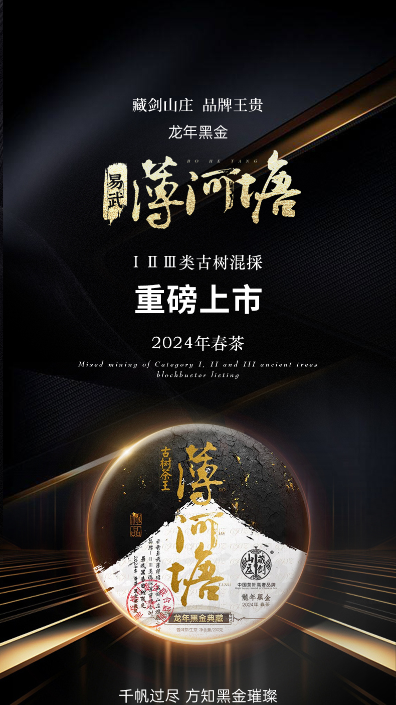 【藏剑山庄】云南普洱茶生茶 2024年春茶 龙年黑金易武薄荷塘200克饼茶
