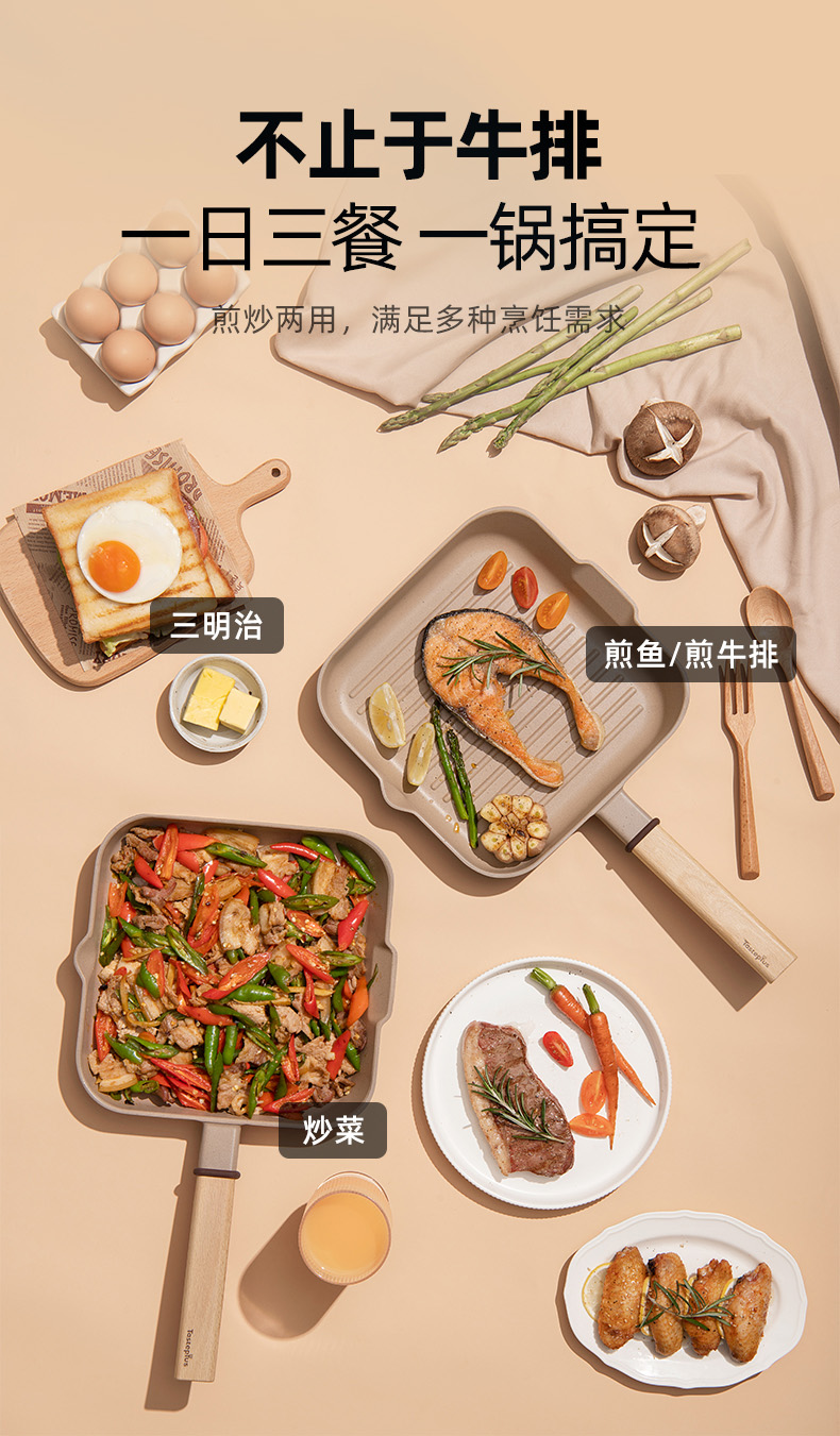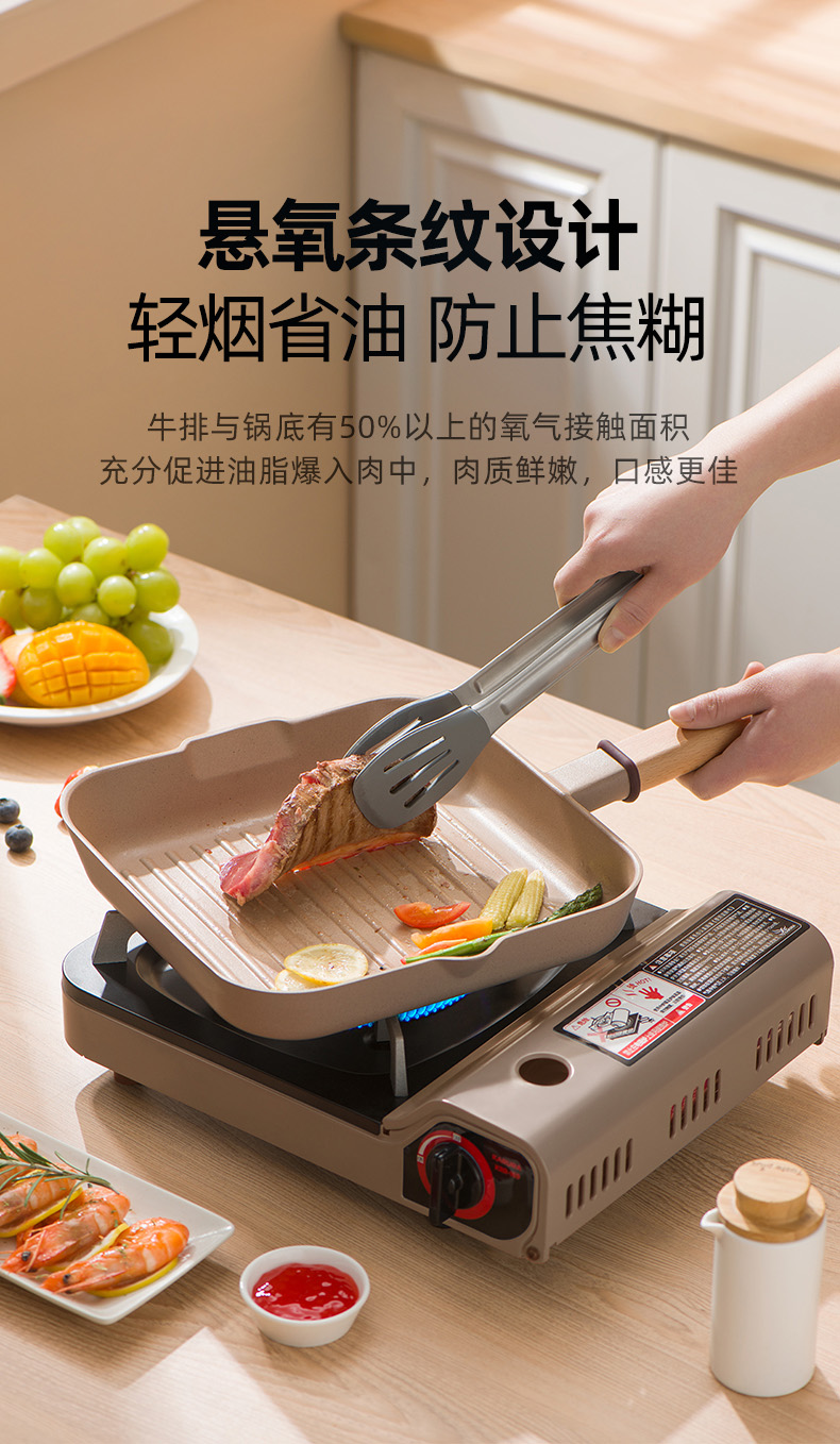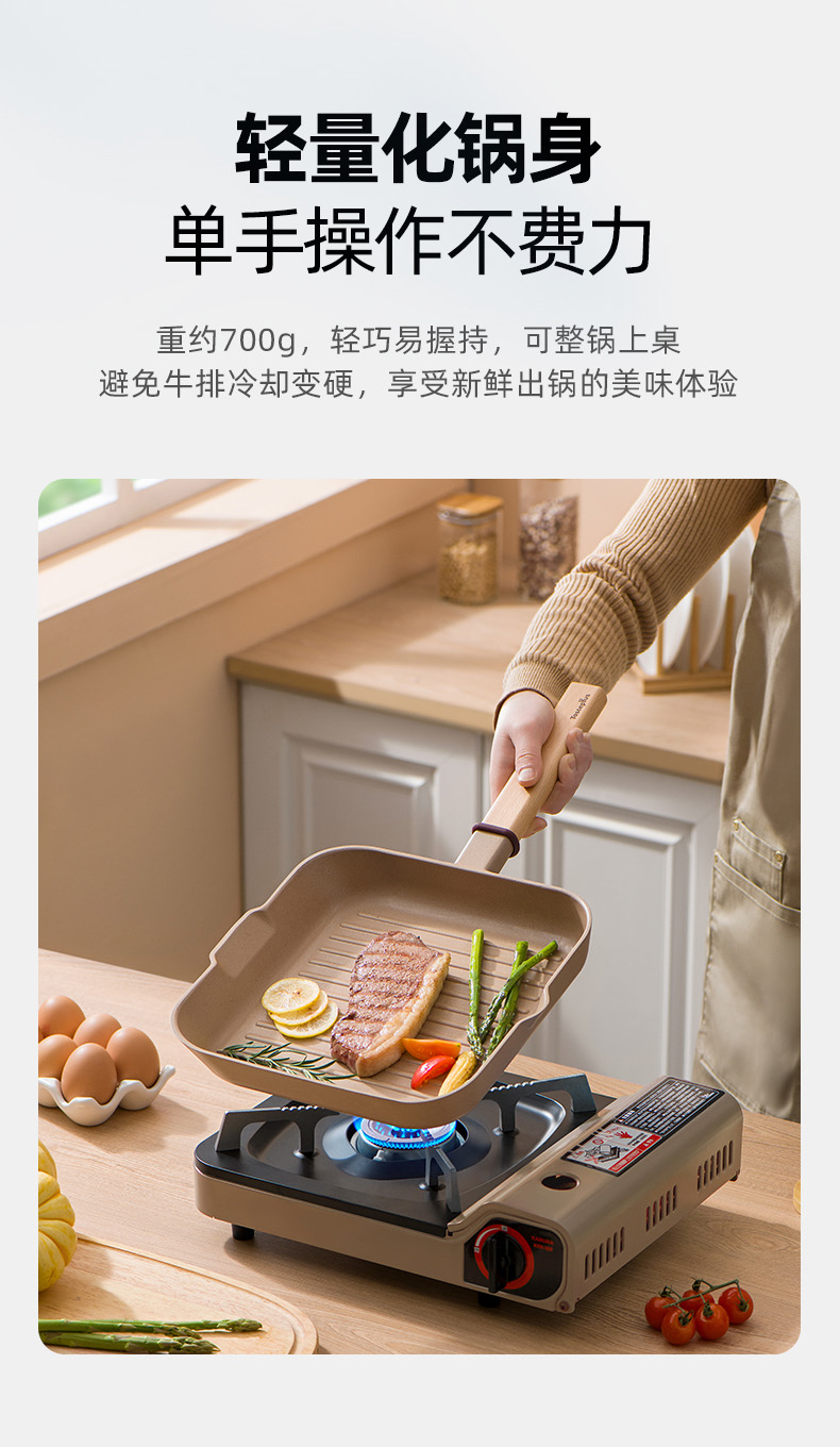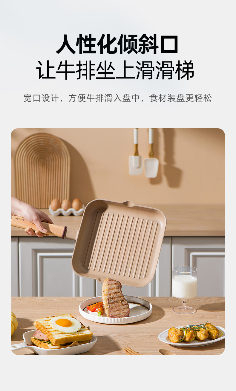 悦味牛排锅24CM悬氧条纹不粘锅创意倾斜口设计家用平底早餐煎烤锅