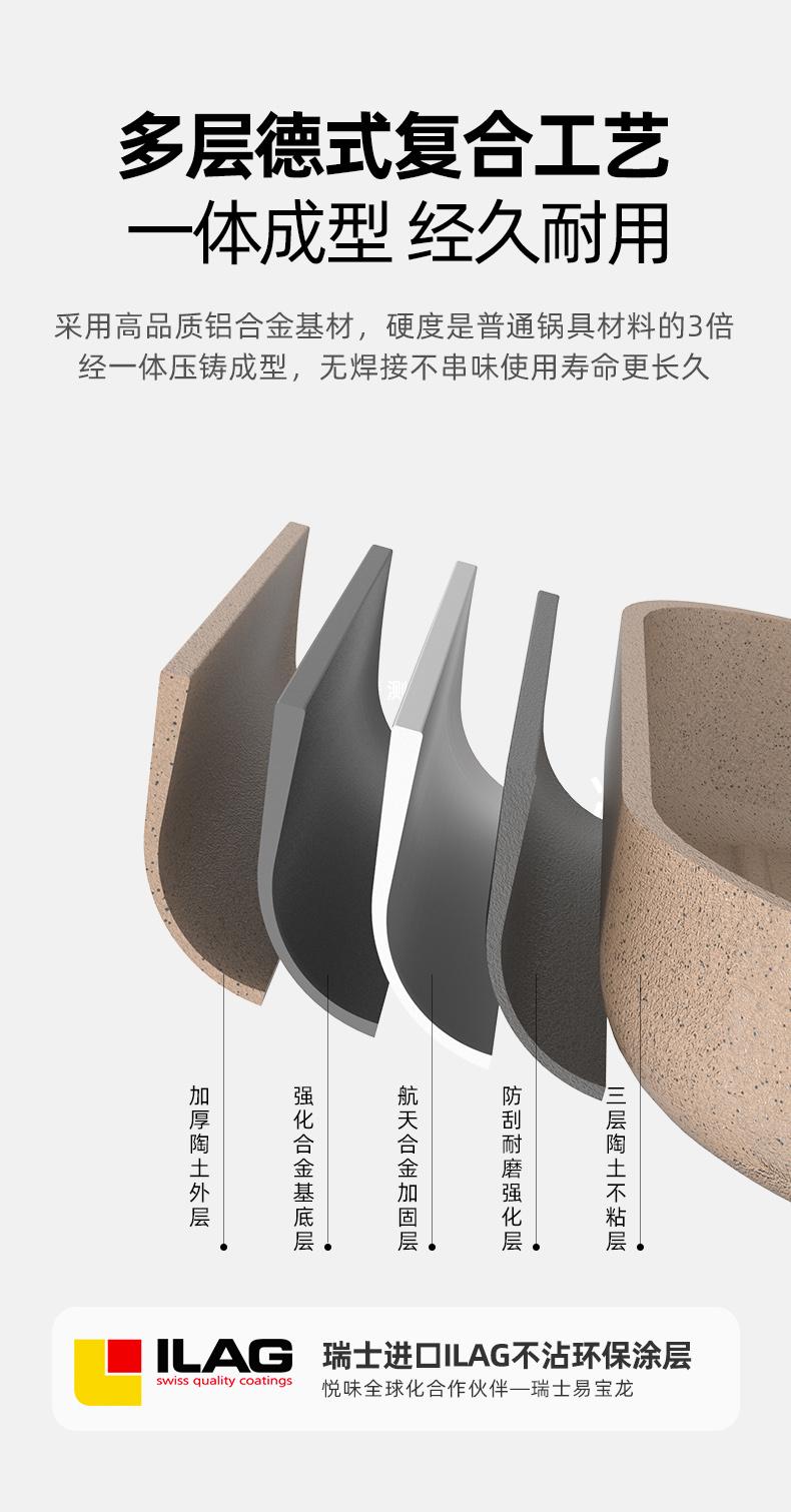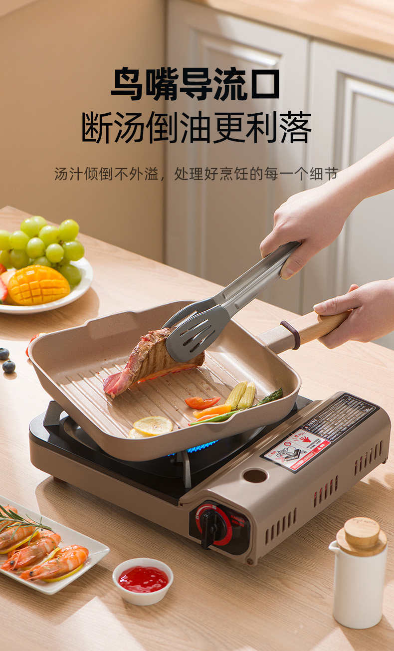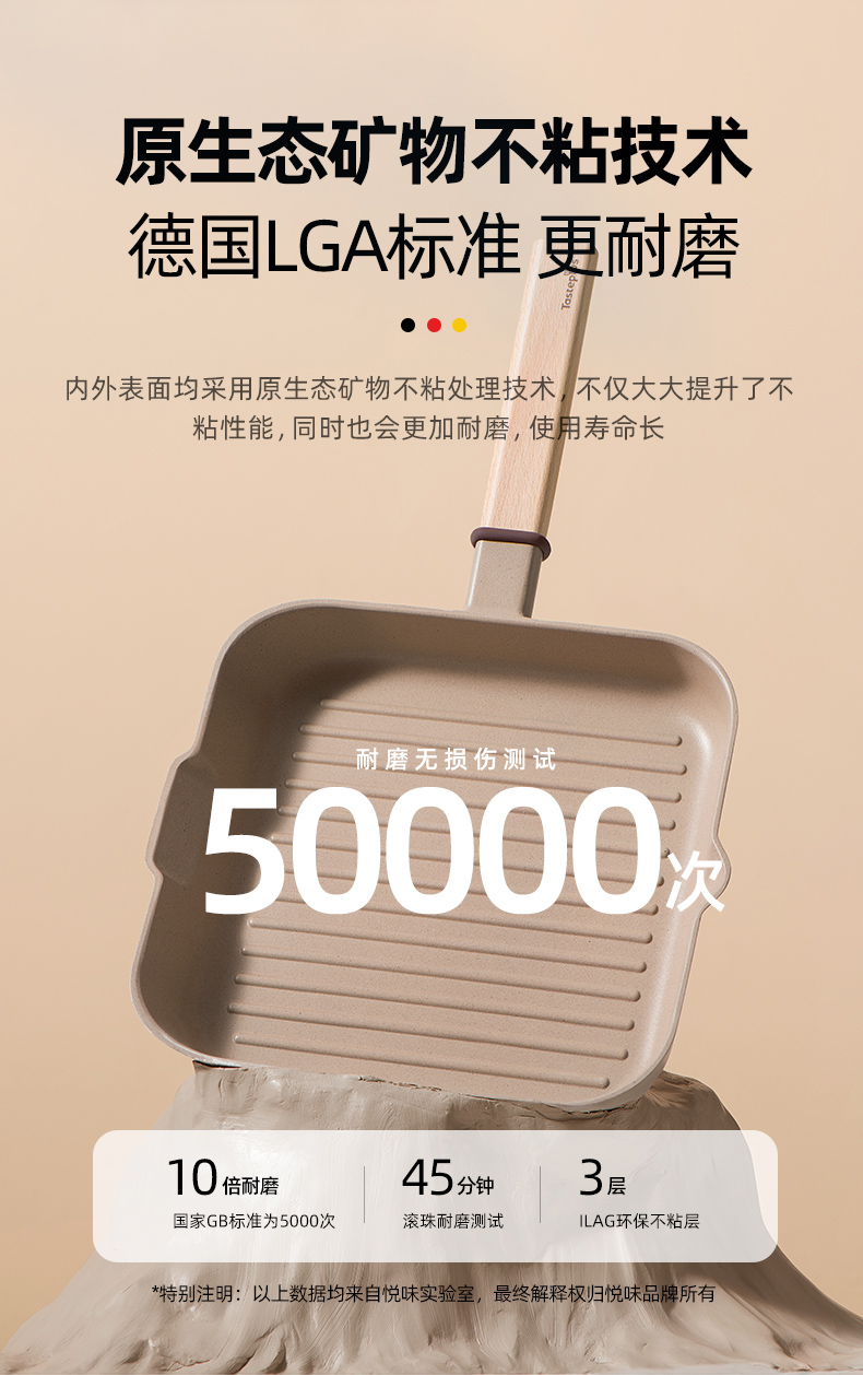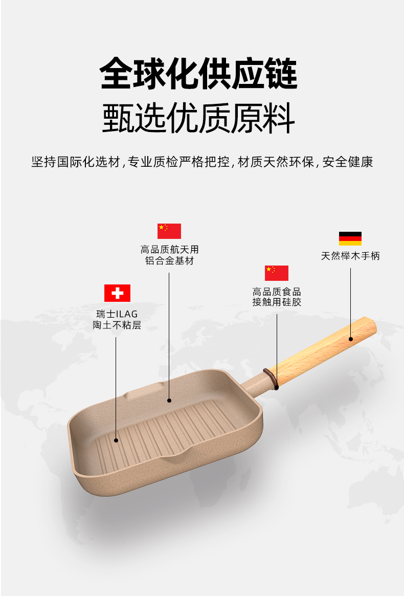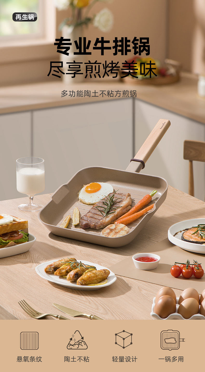 悦味牛排锅24CM悬氧条纹不粘锅创意倾斜口设计家用平底早餐煎烤锅