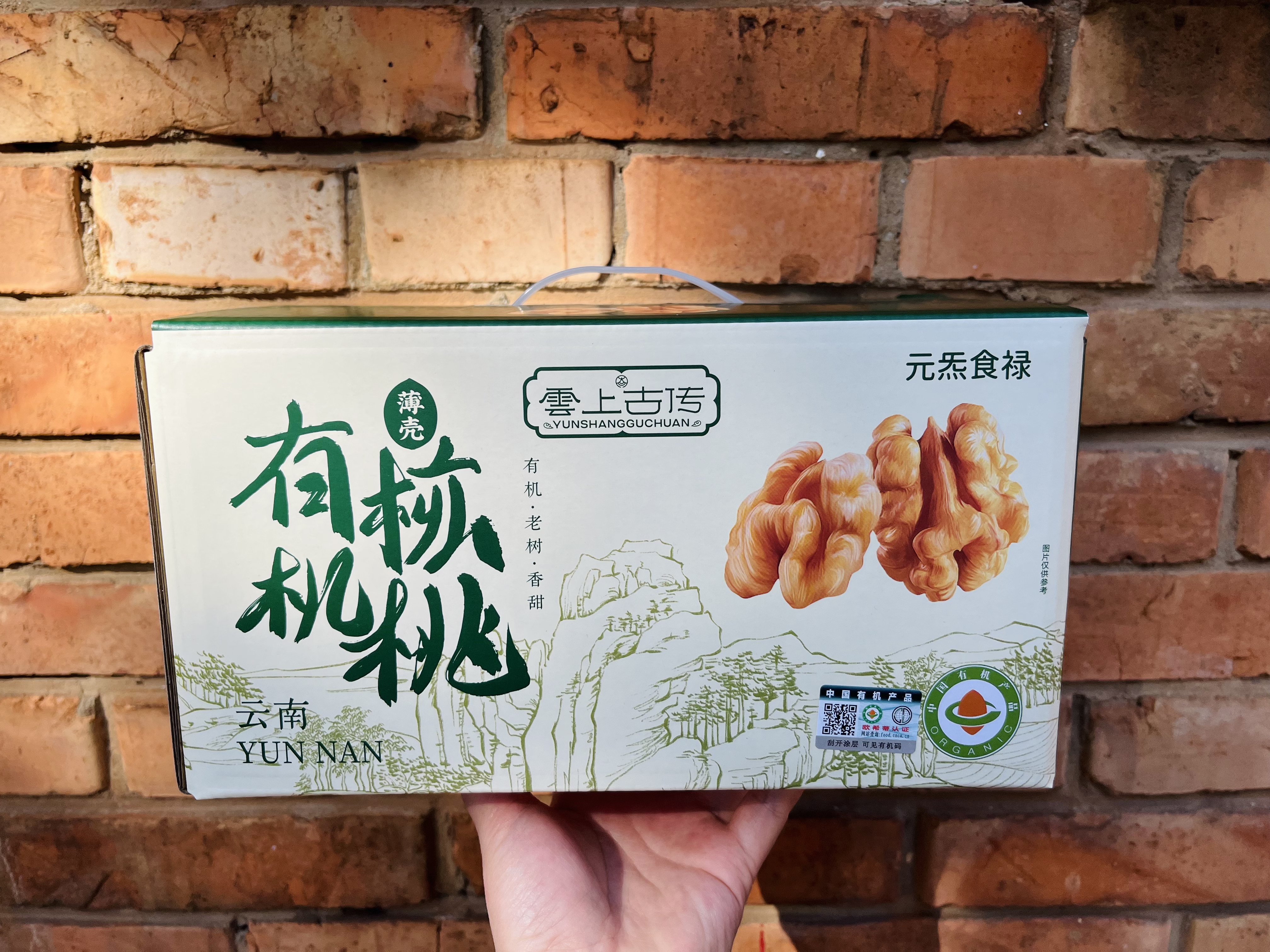 云上古传 云南老树有机核桃 3斤礼盒装 皮儿薄、仁白、肉厚、香而不涩, 果仁清脆;来自云南宾川百年古树,有机认证;不漂白,0添加,自然成熟,人工采摘;