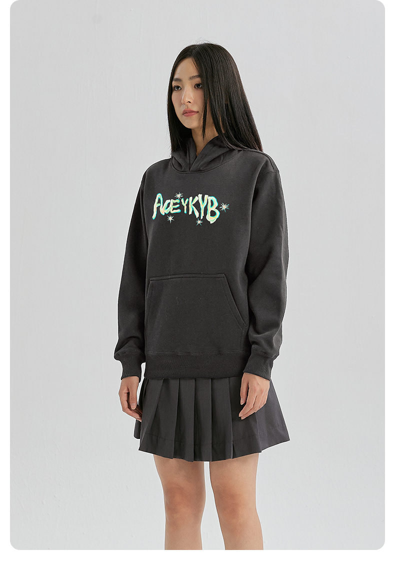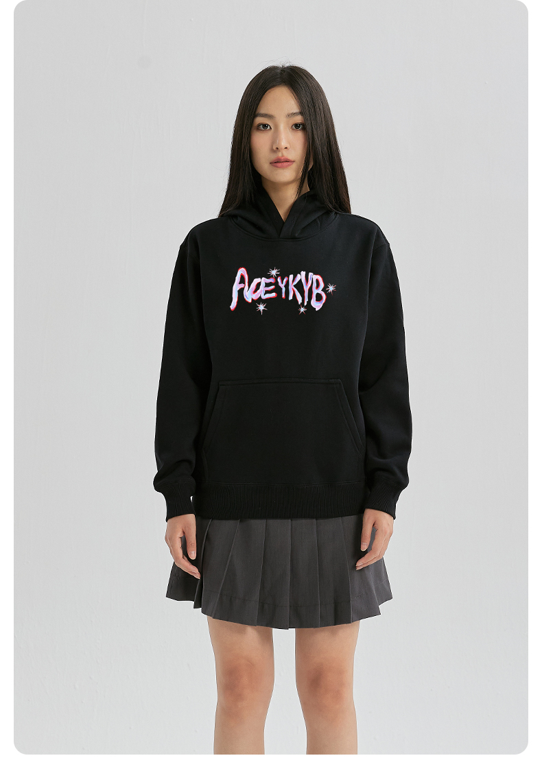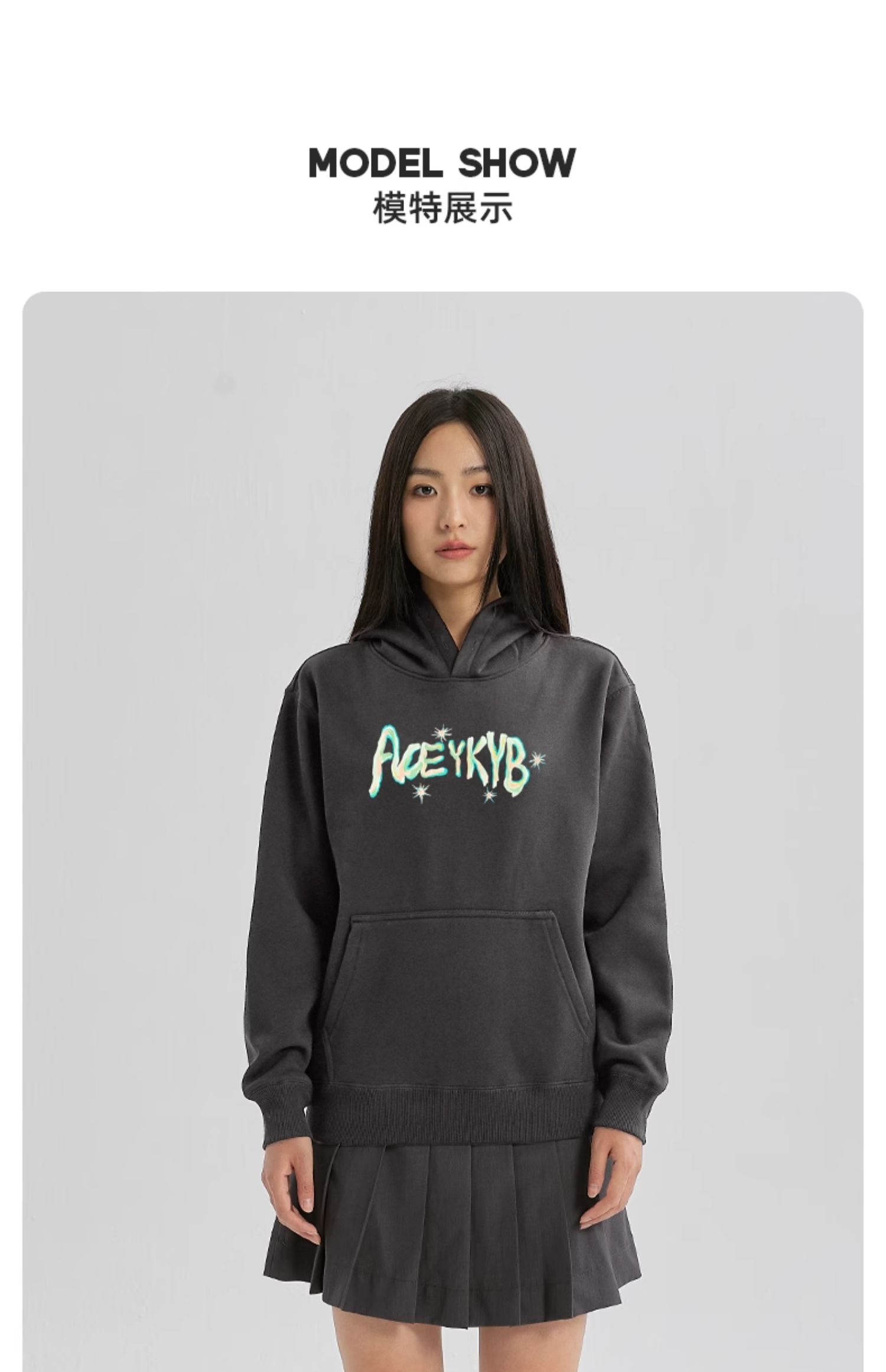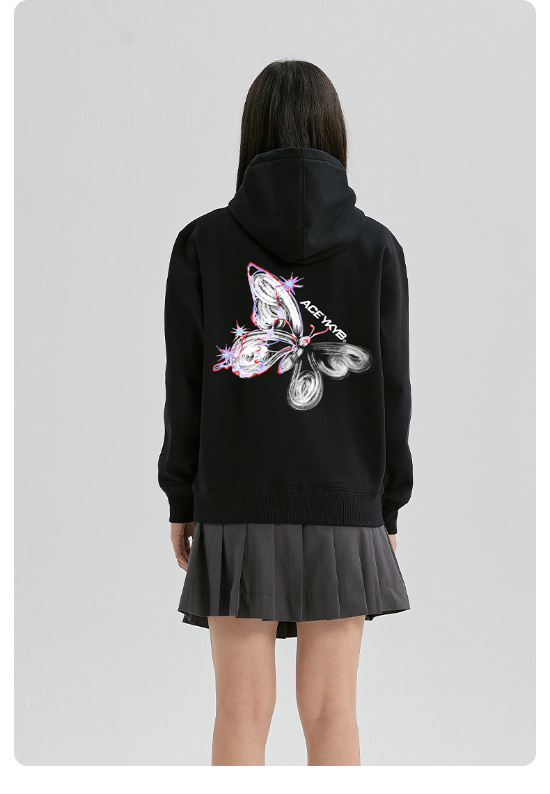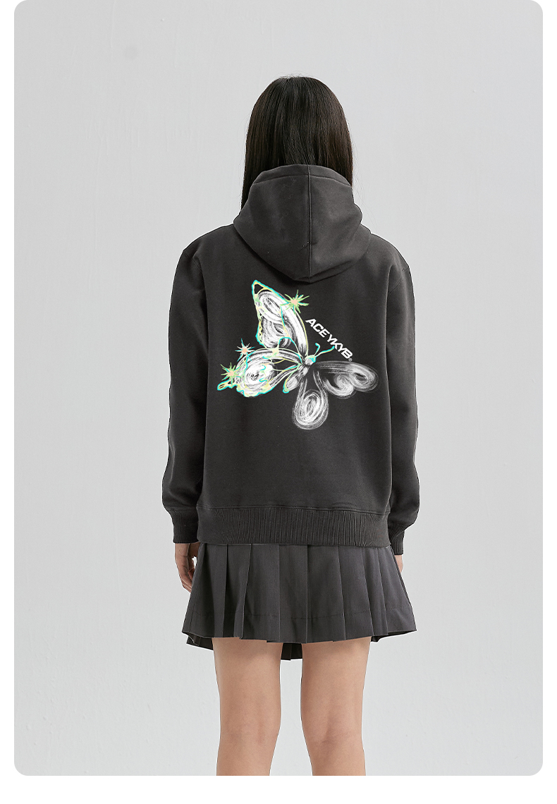 YKYB冬季新款烫画蝴蝶连帽加绒卫衣保暖落肩宽松百搭套头帽衫