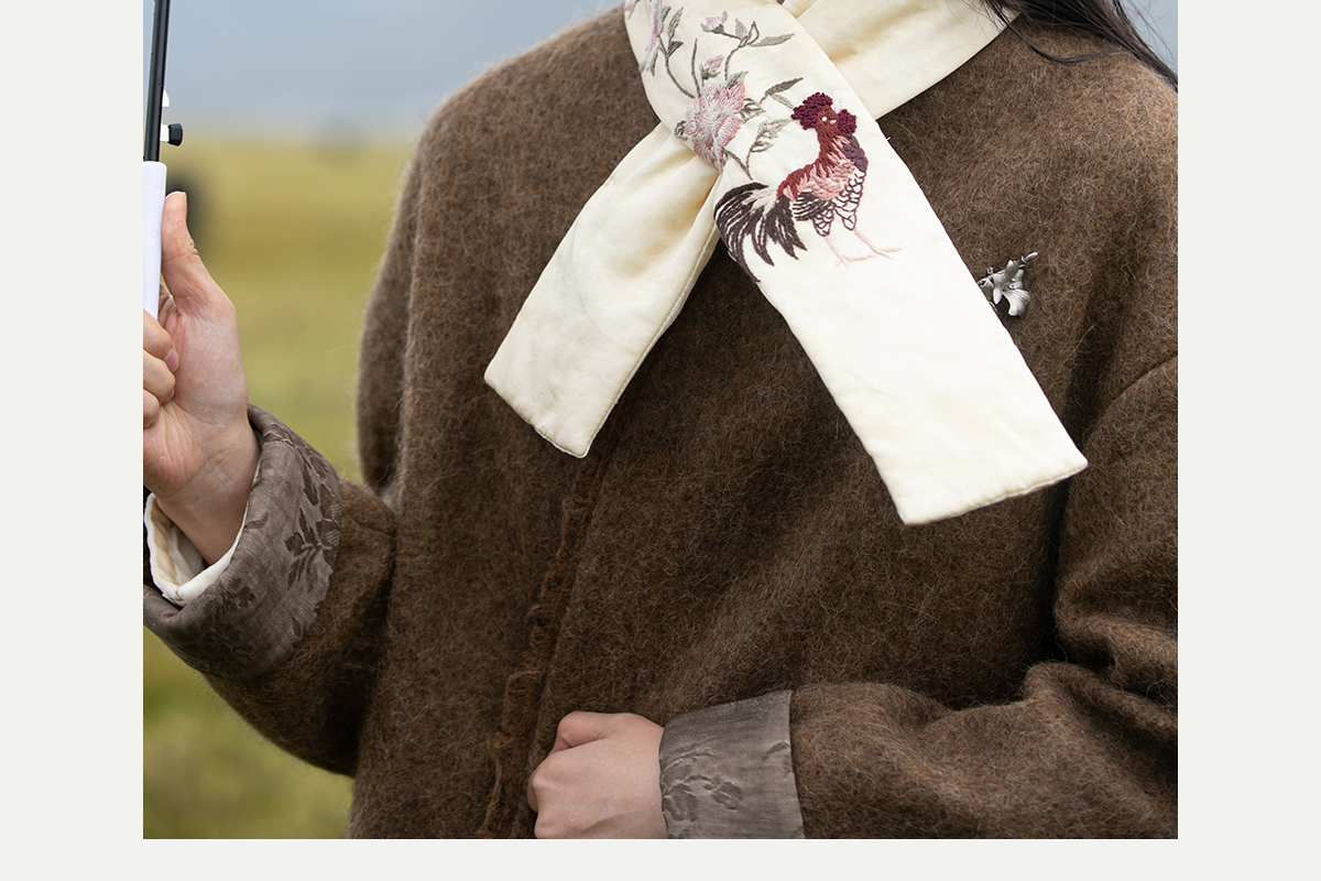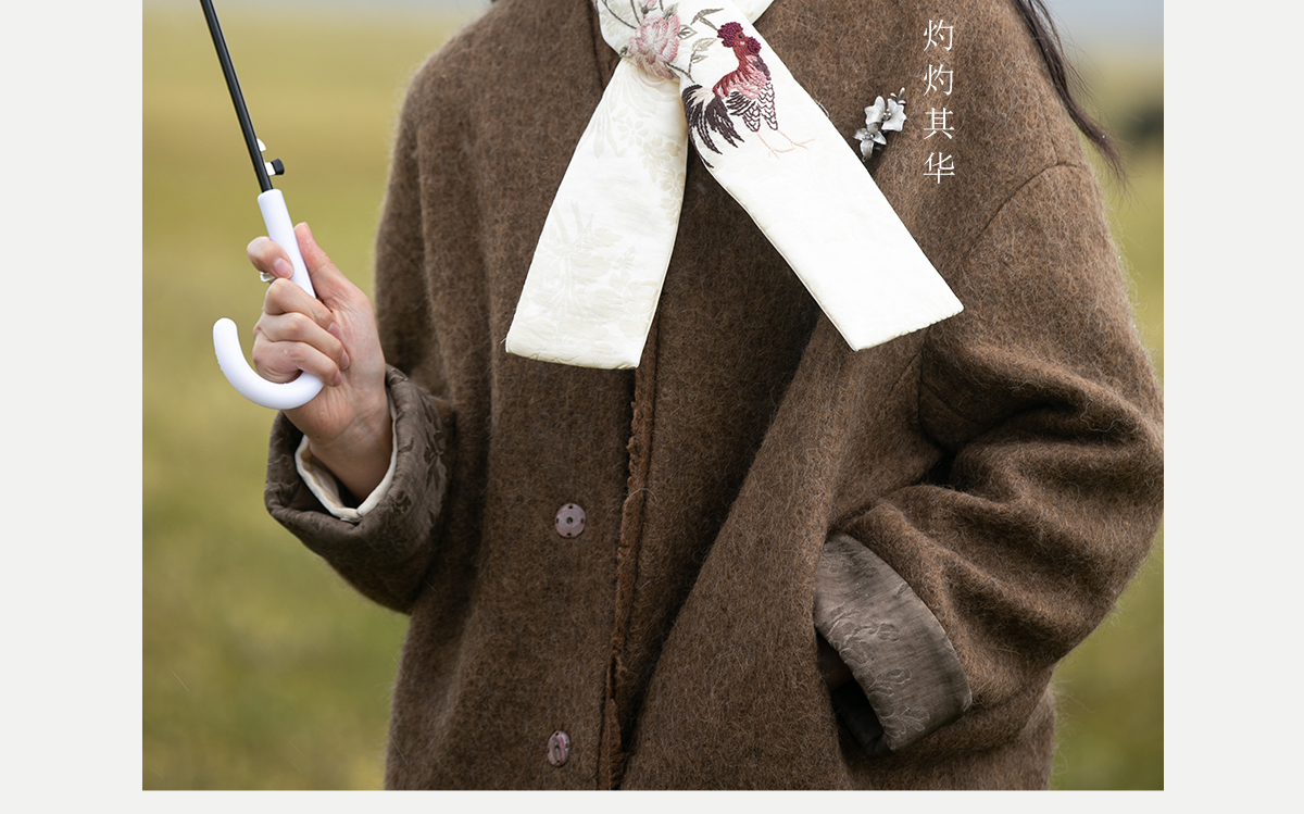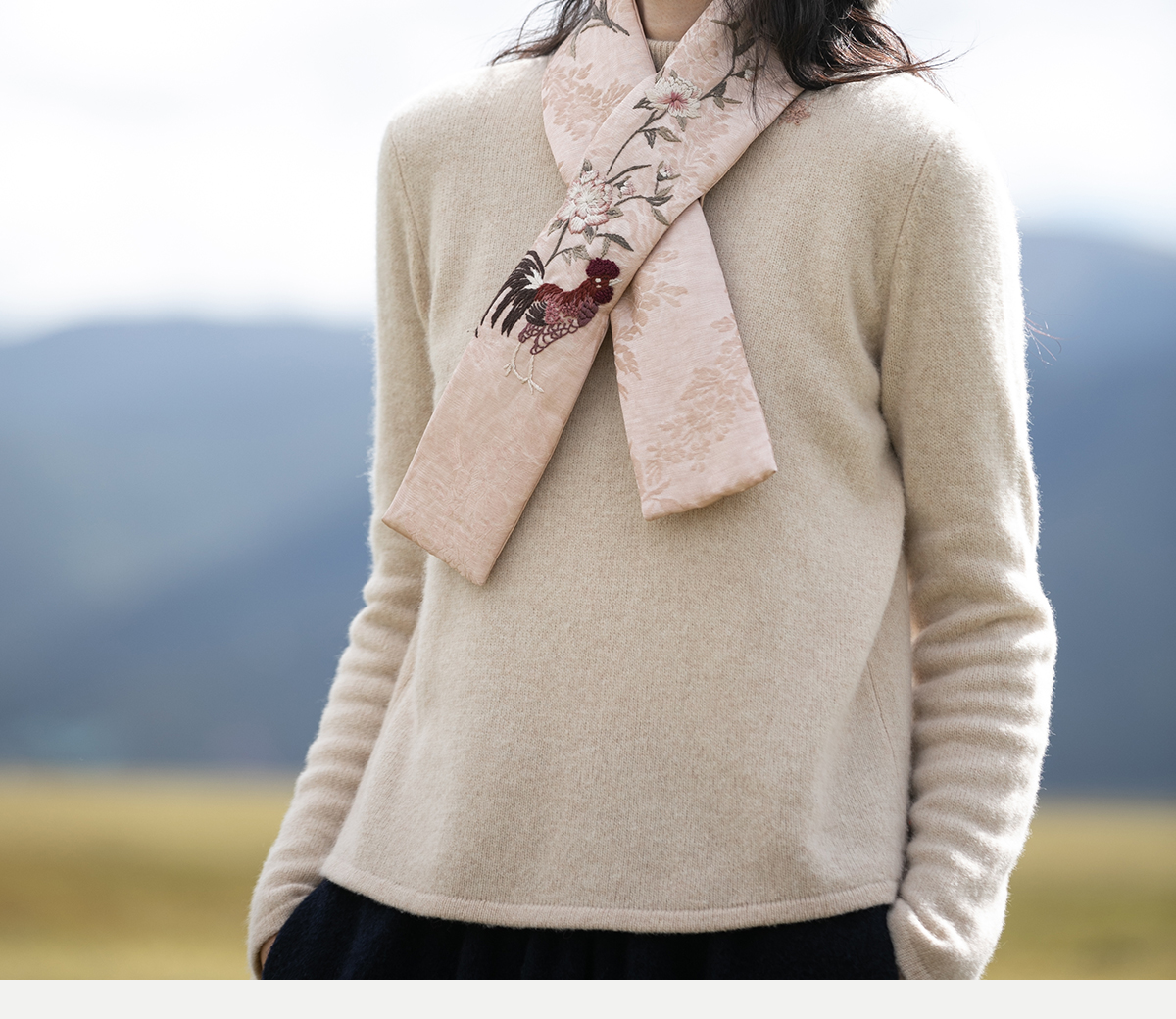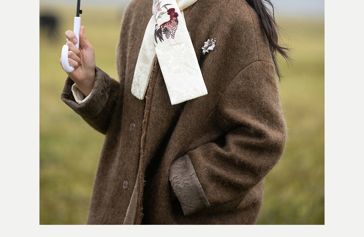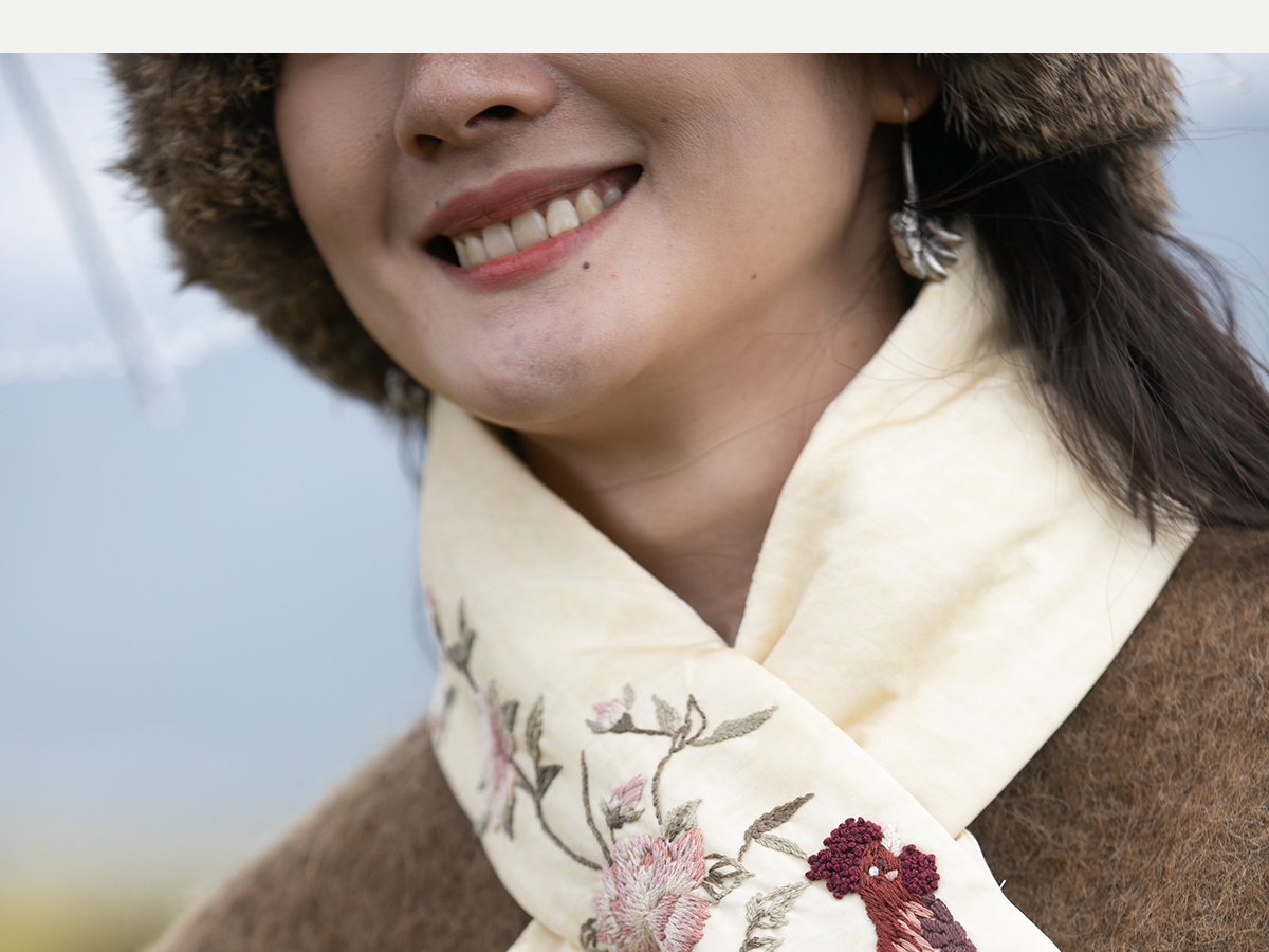 牧衣游原创 丝麻棉手工刺绣炒色夹棉围巾 春又生【不支持会员折】