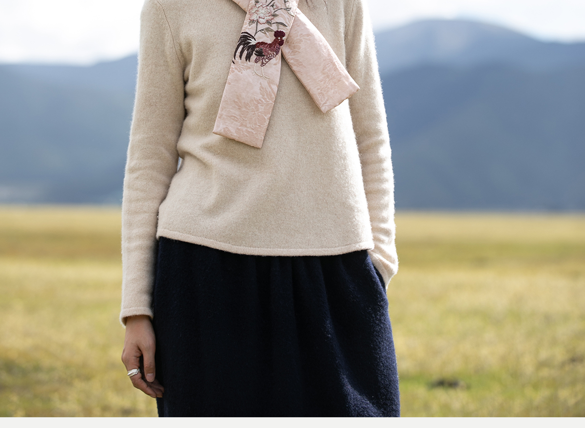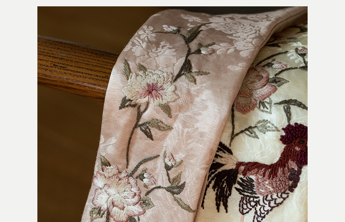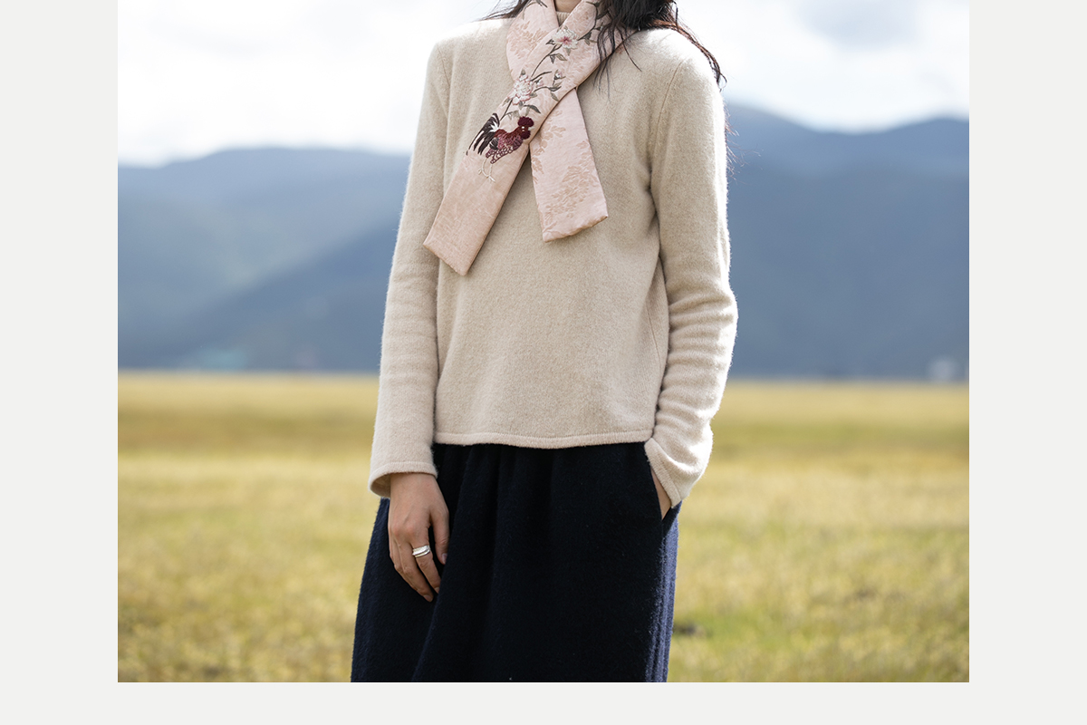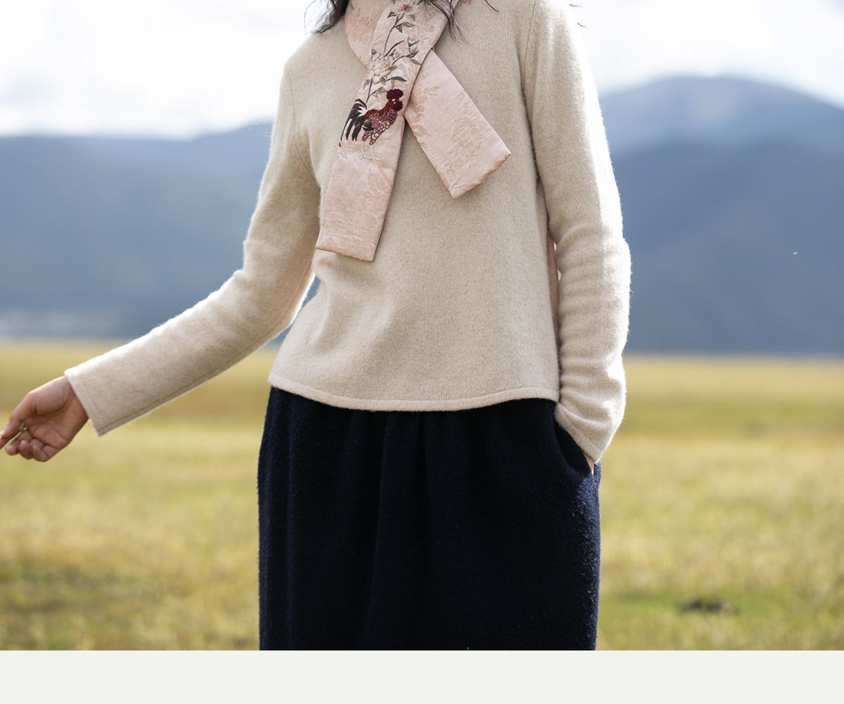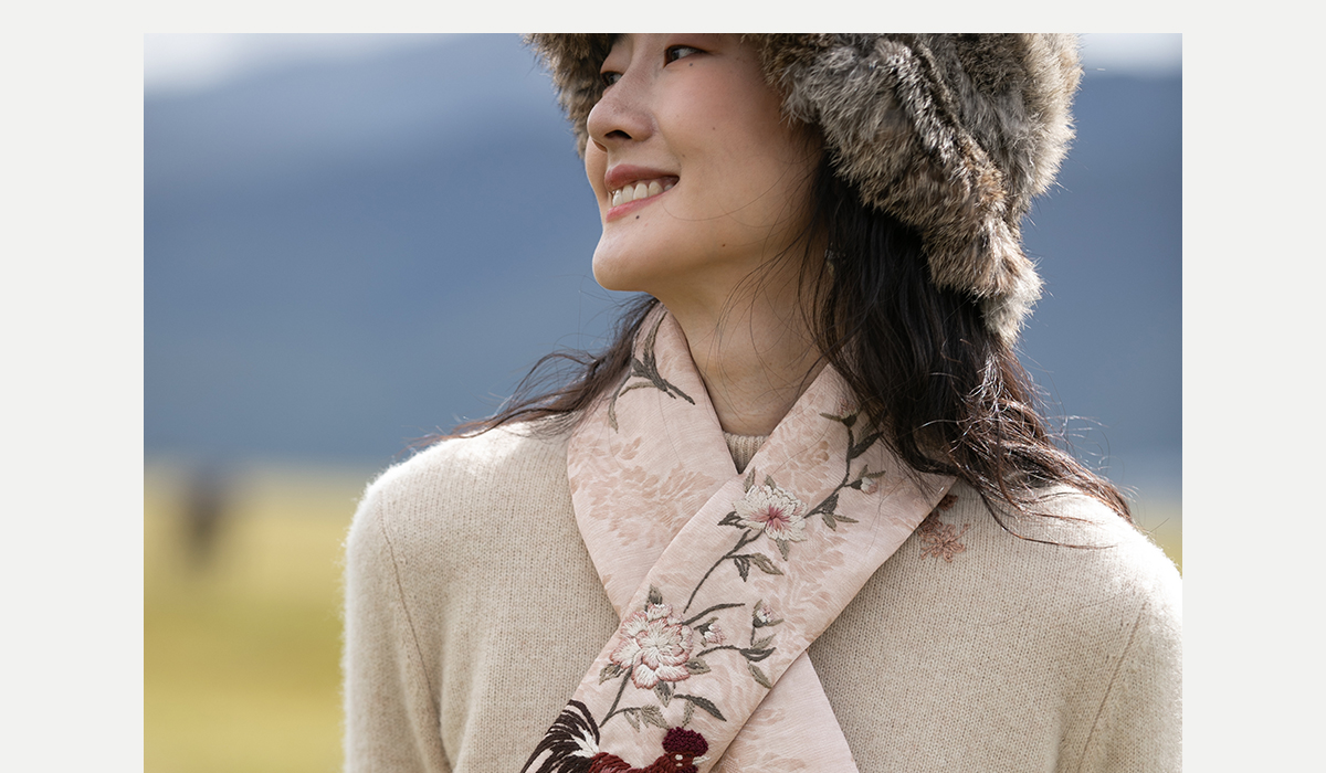 牧衣游原创 丝麻棉手工刺绣炒色夹棉围巾 春又生【不支持会员折】