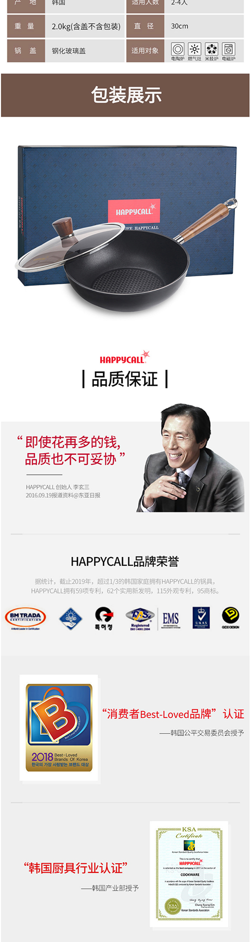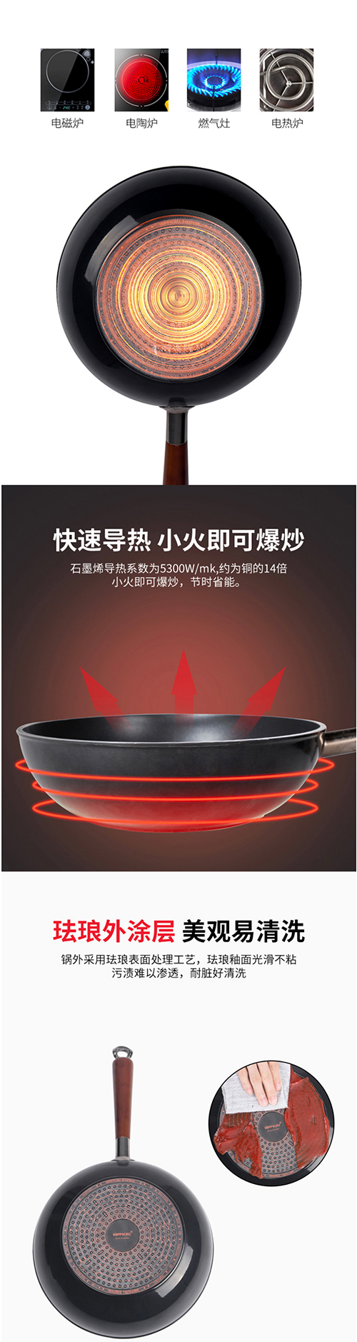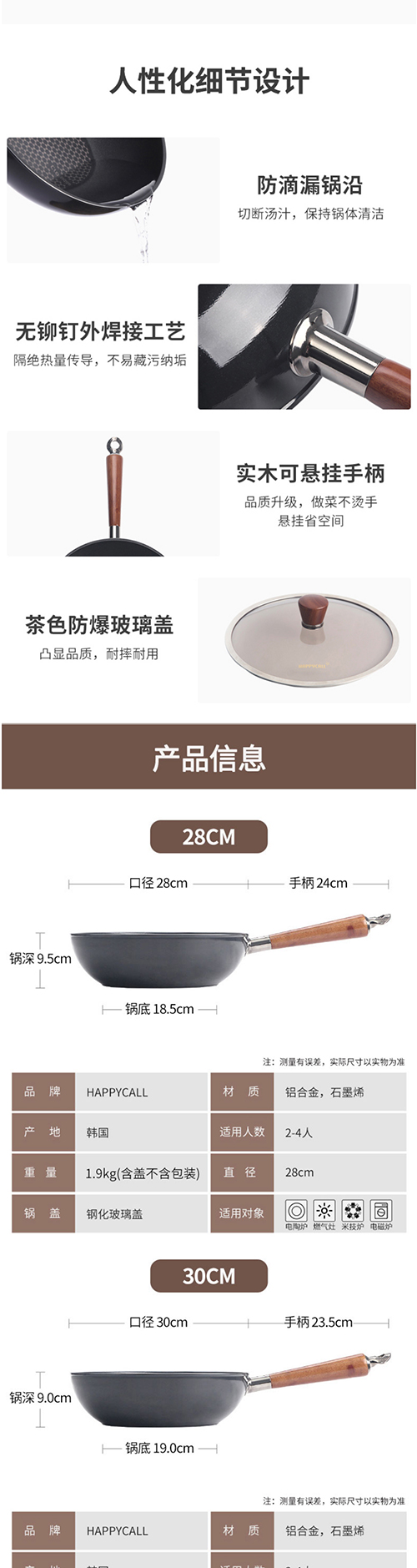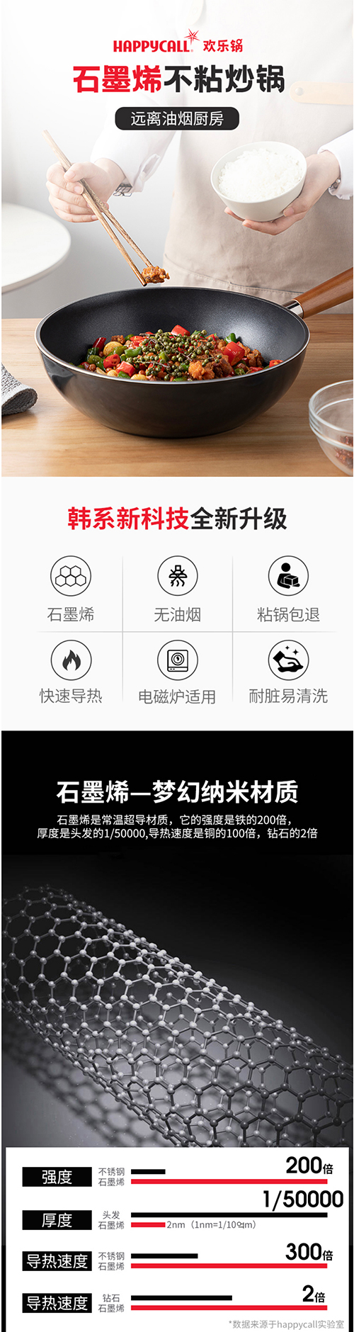 HAPPYCALL韩国进口石墨烯多功能家用平底炒锅无油烟炒菜锅不粘锅不挑炉灶煎炒两用电磁炉明火通用 3001-0250