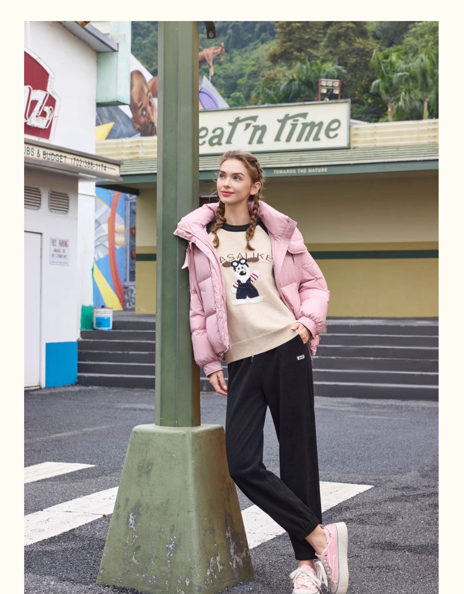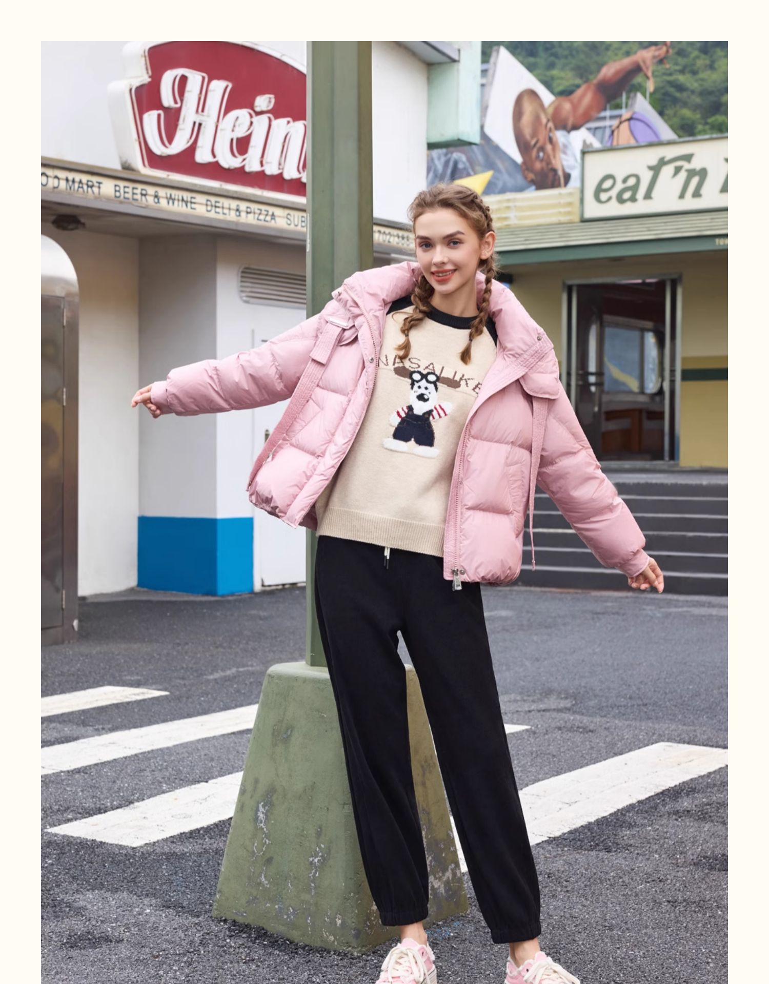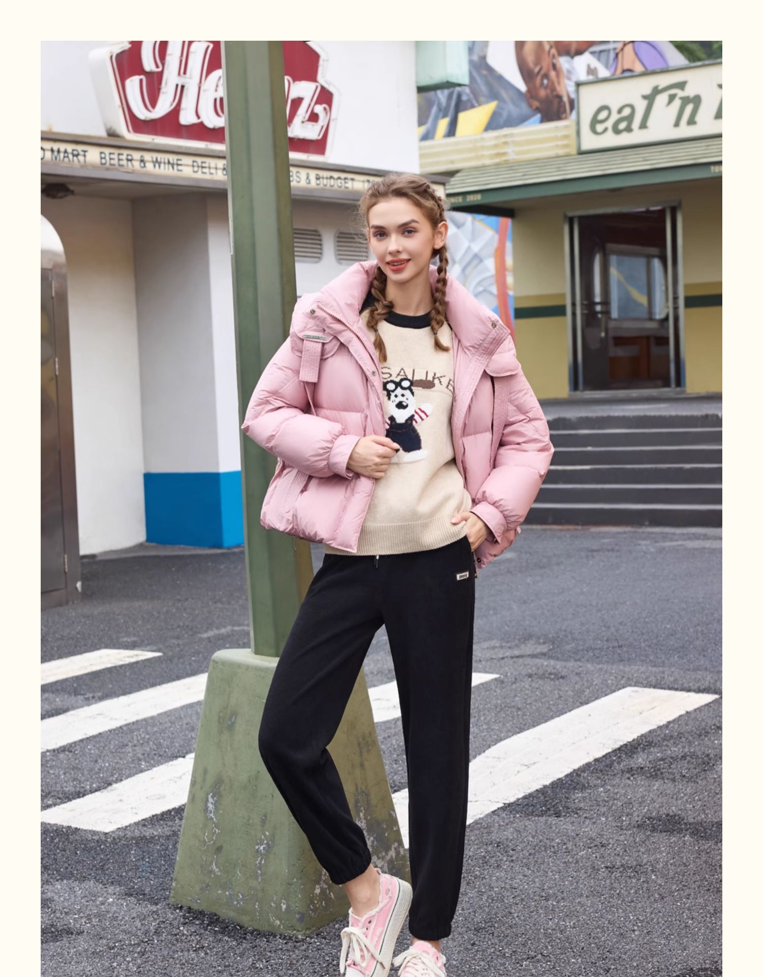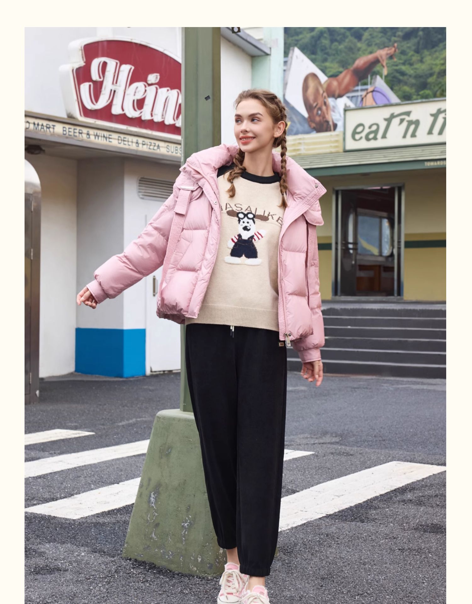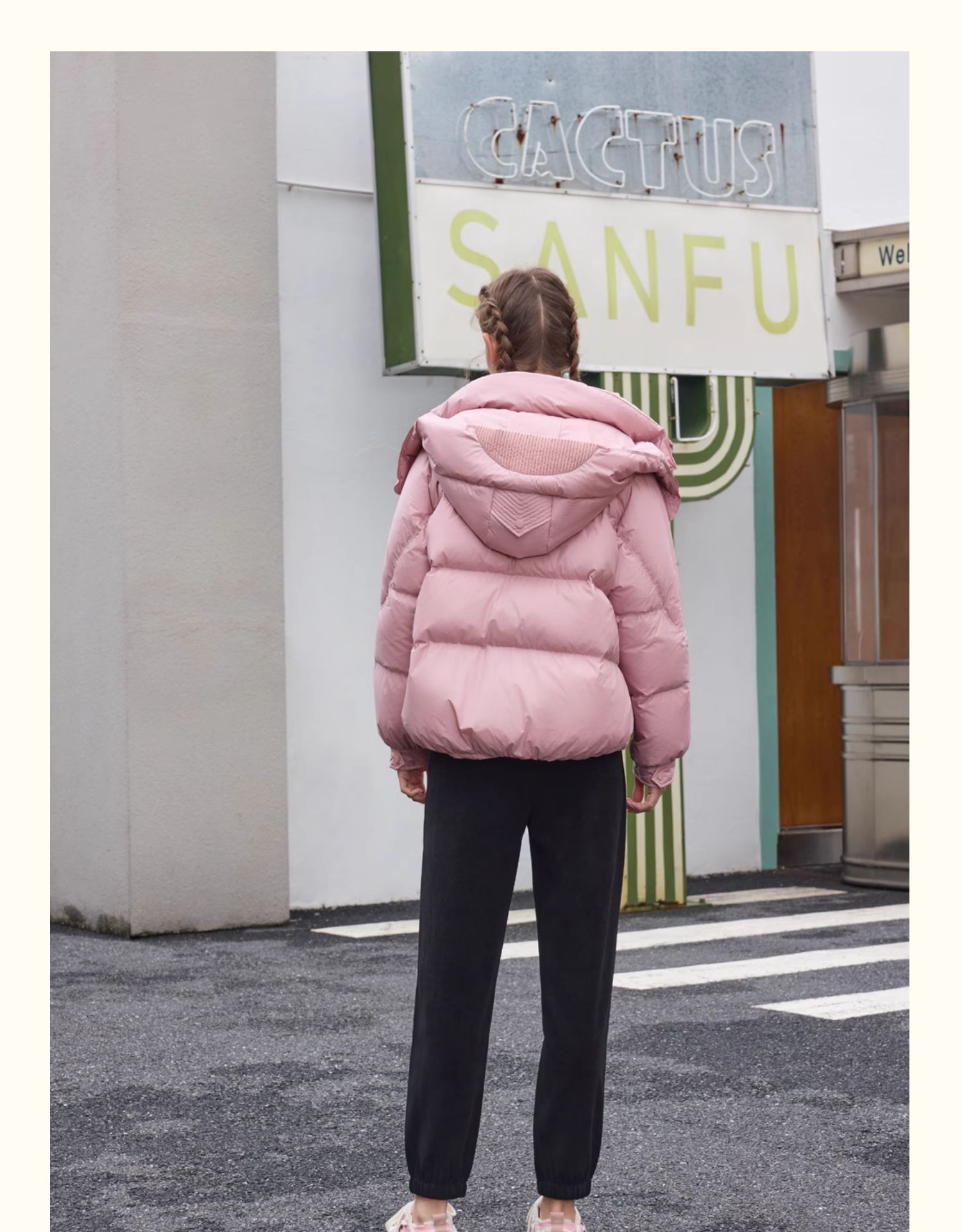 半身缘女装 冬季短款连帽双吊绳休闲面包服羽绒服244113P01713336