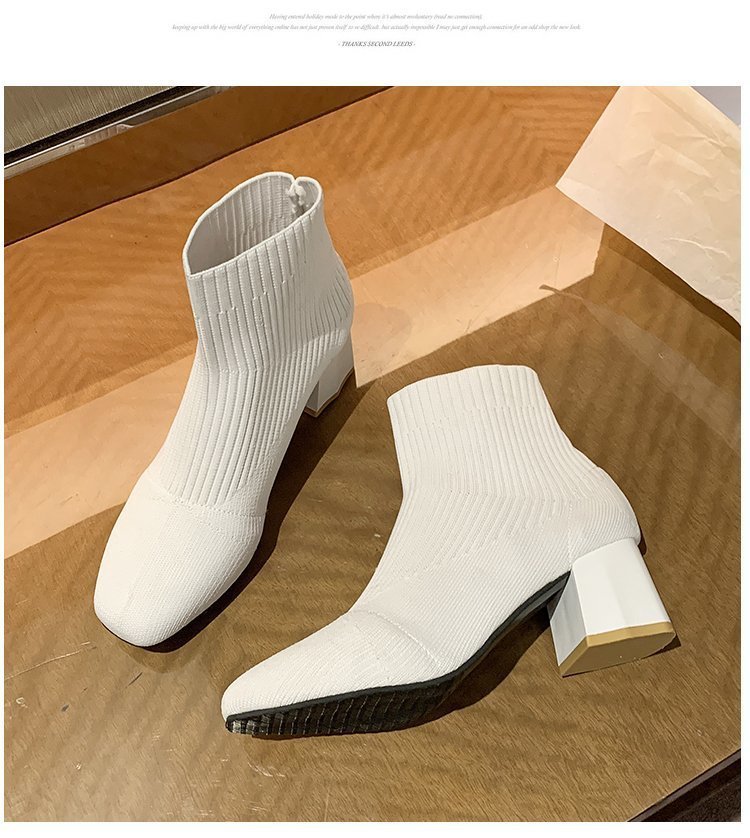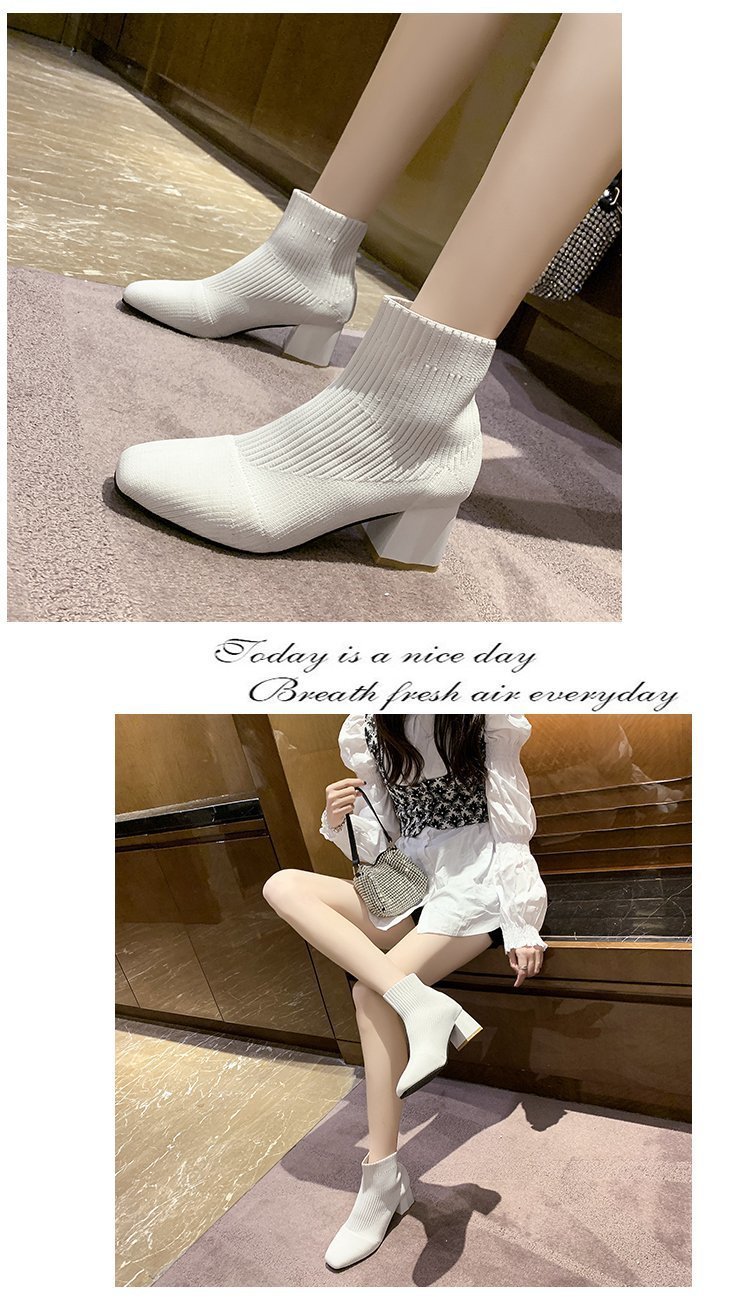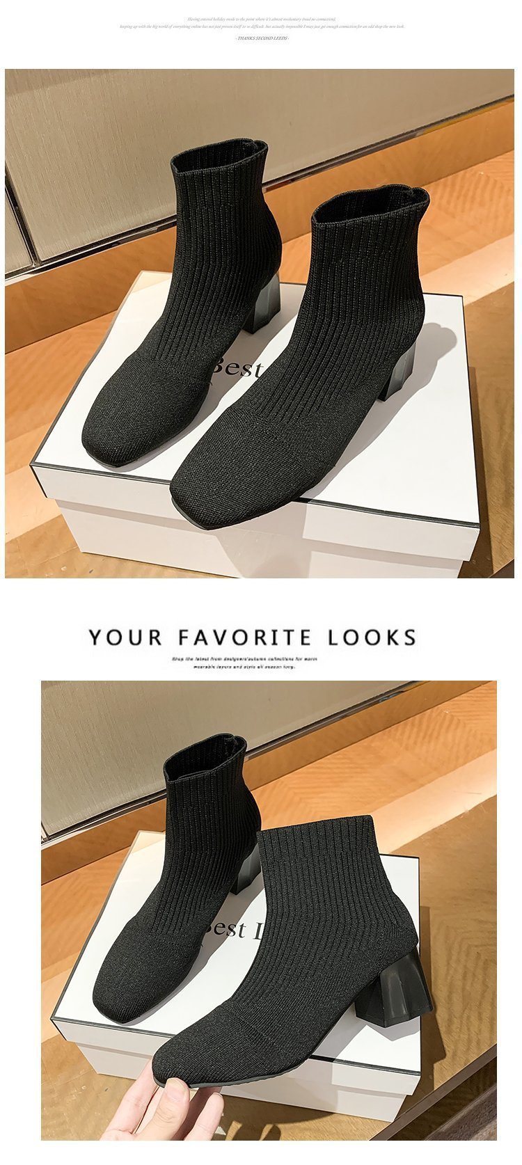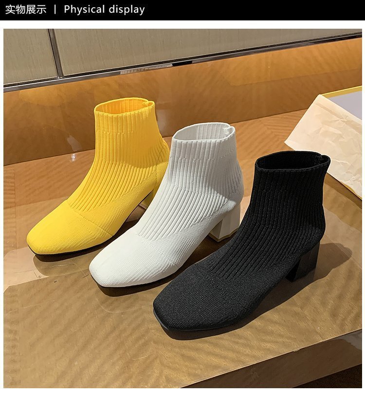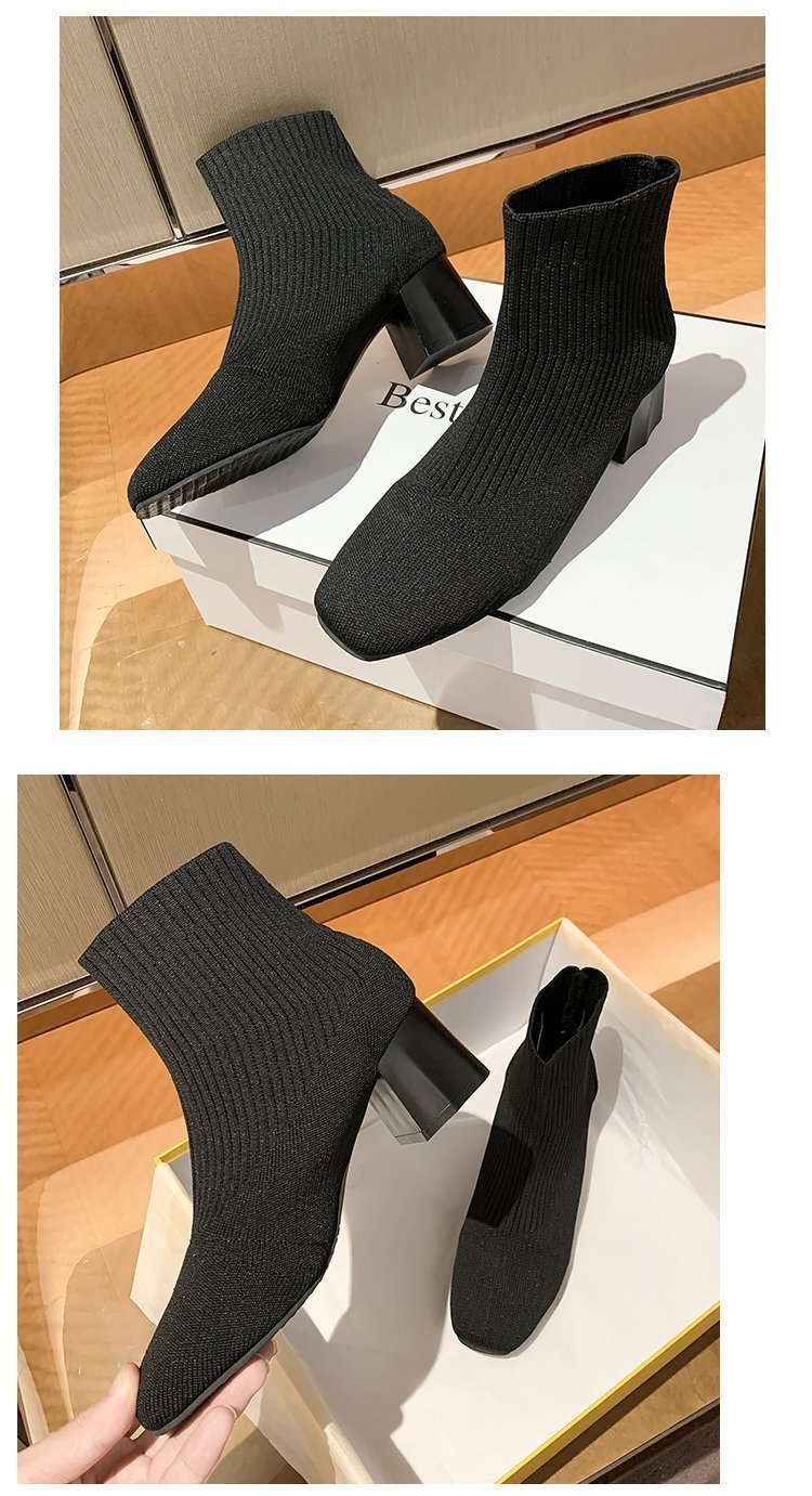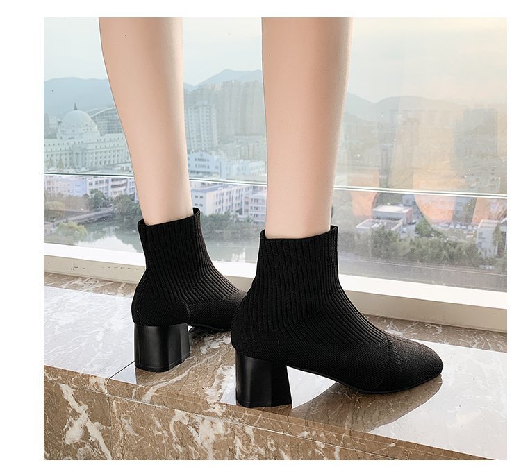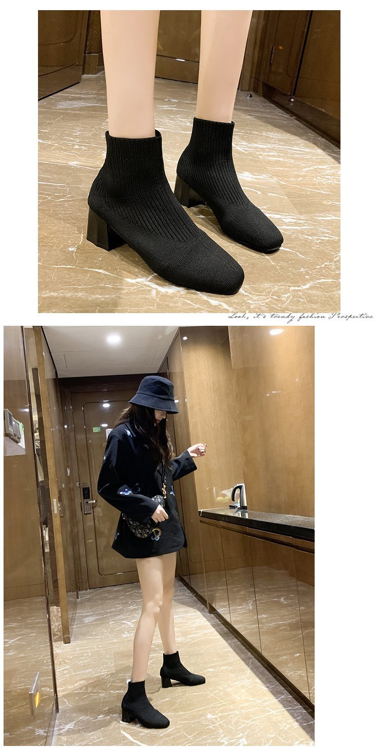 马丁靴女2024新款女靴冬季韩版方头套筒短靴女式粗跟中跟飞织靴子新款爆款小红书同款