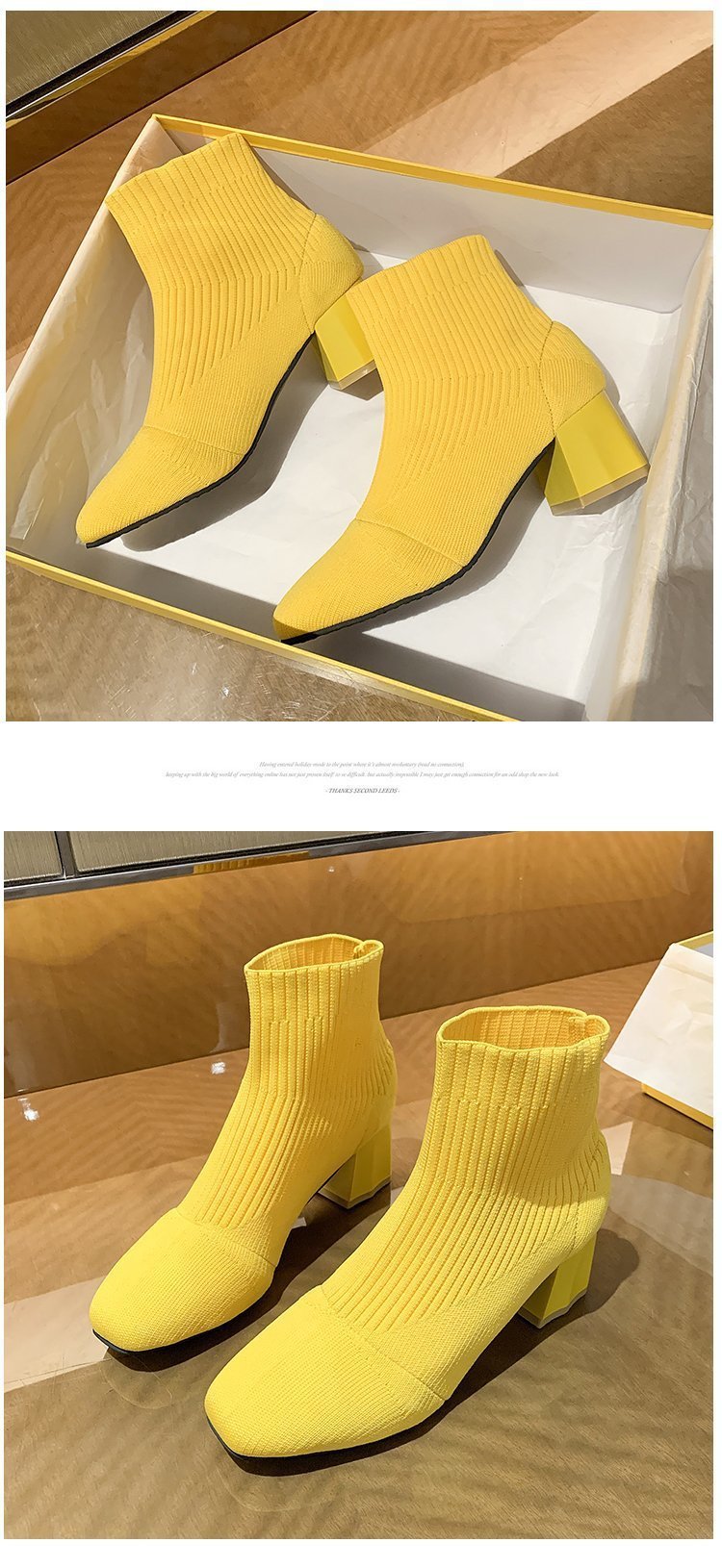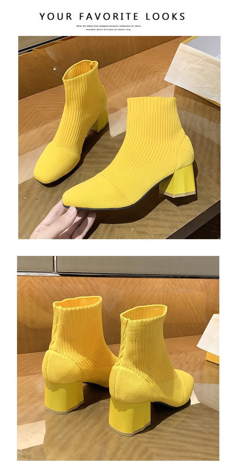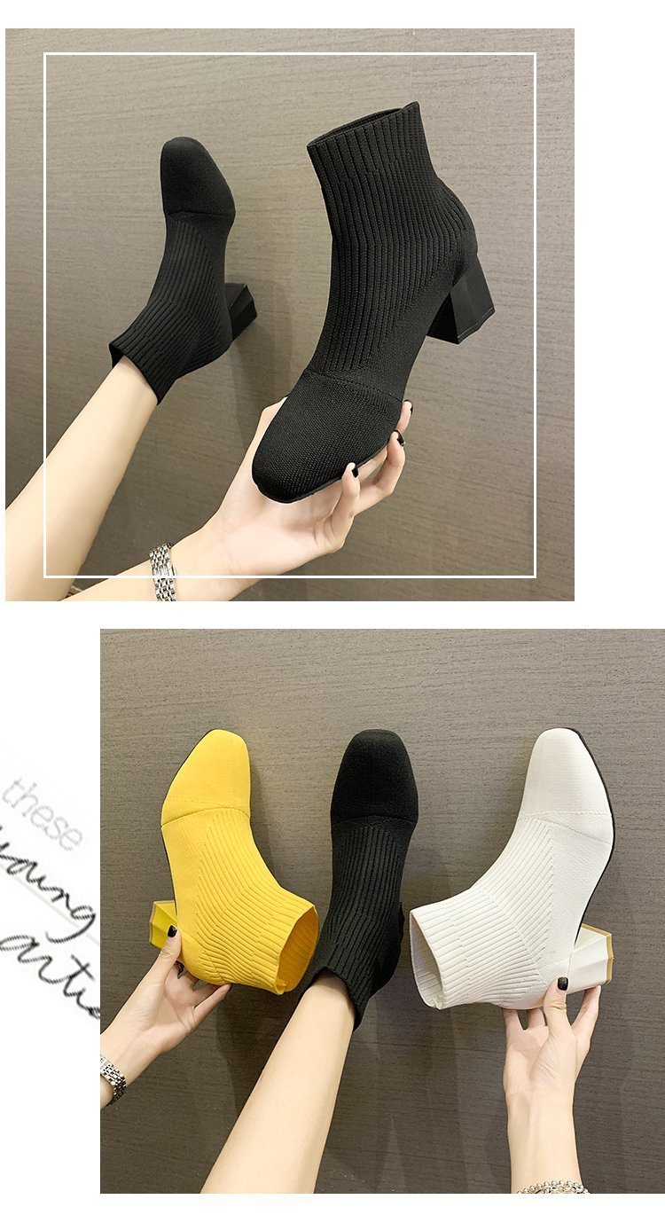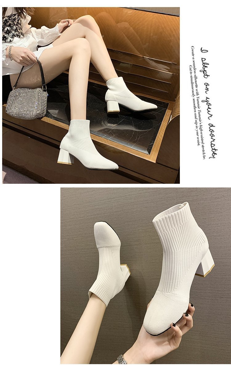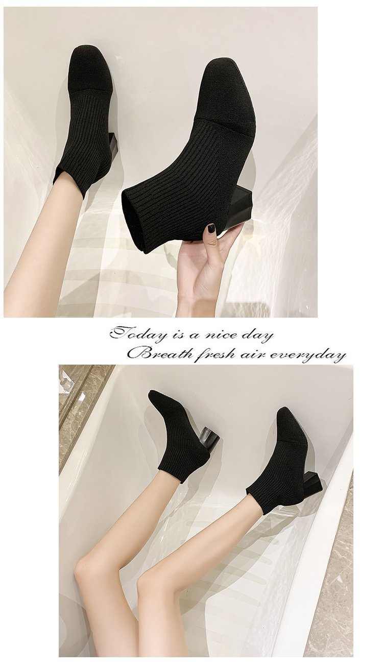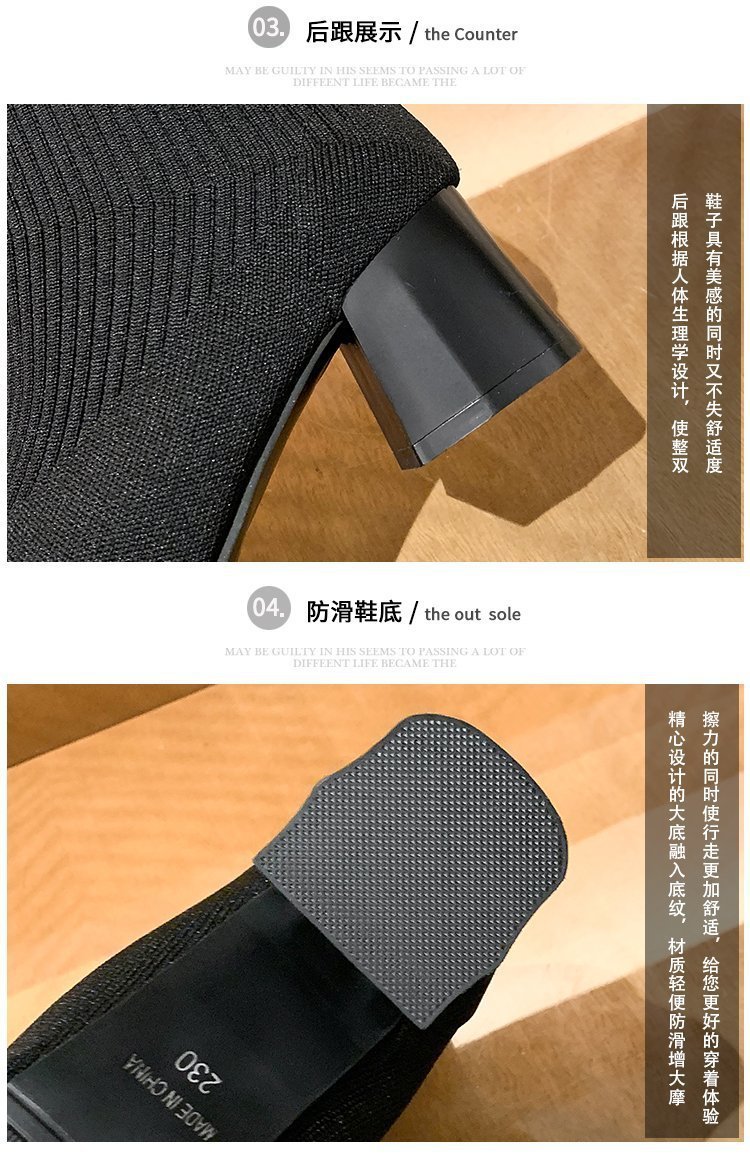 马丁靴女2024新款女靴冬季韩版方头套筒短靴女式粗跟中跟飞织靴子新款爆款小红书同款
