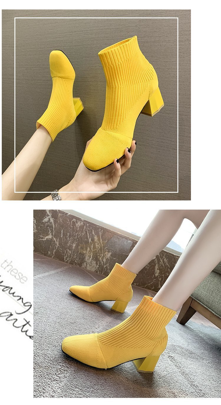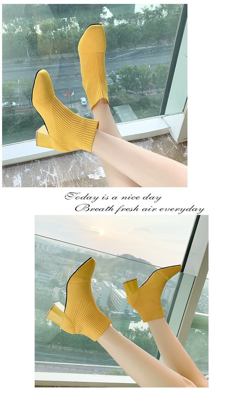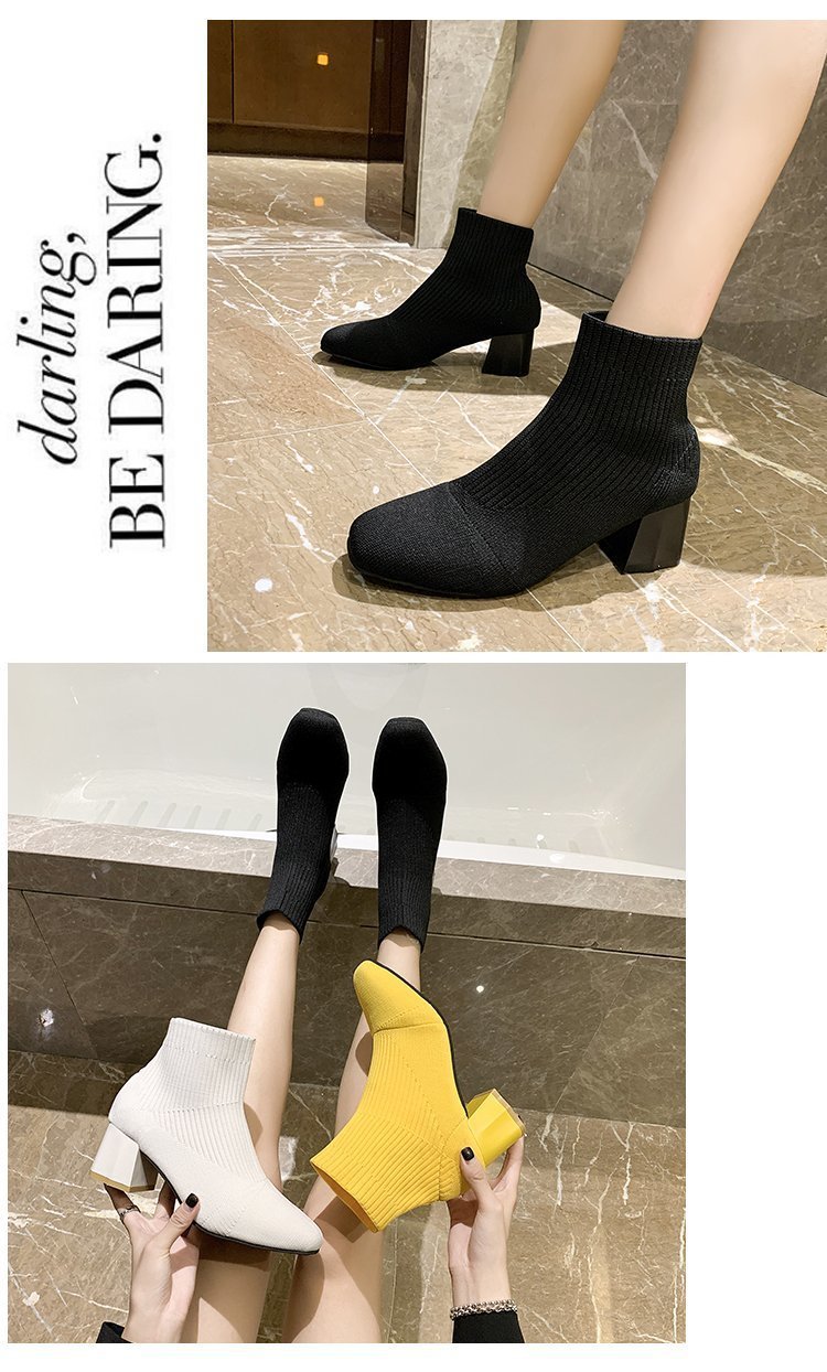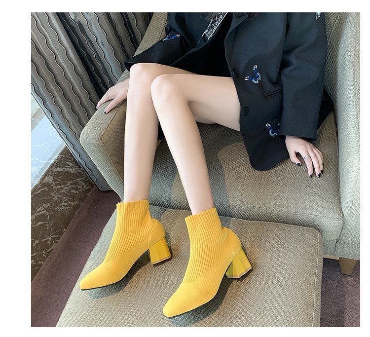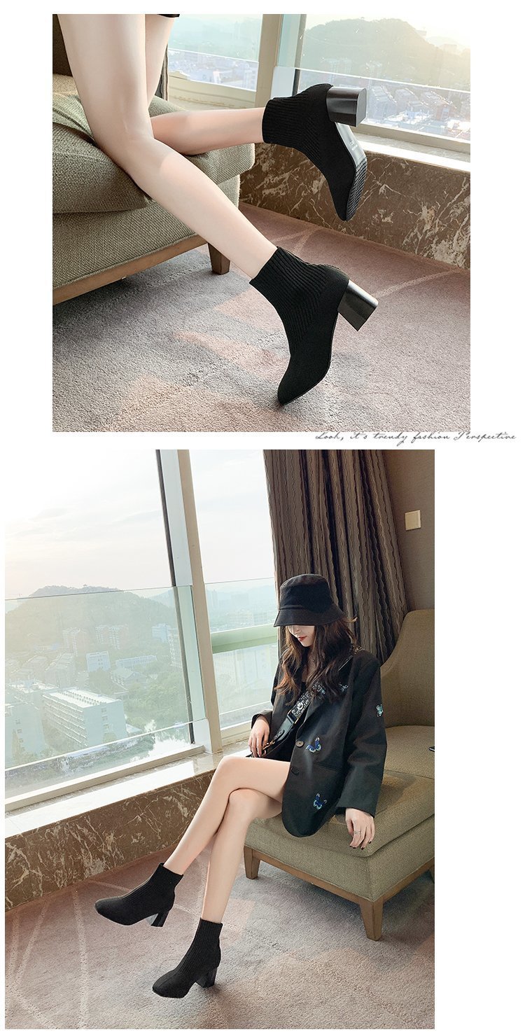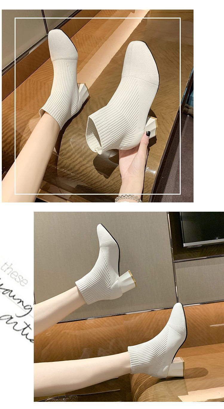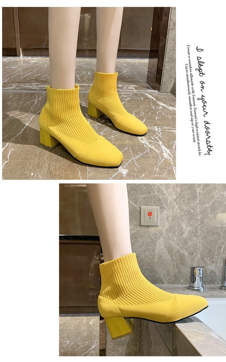 马丁靴女2024新款女靴冬季韩版方头套筒短靴女式粗跟中跟飞织靴子新款爆款小红书同款