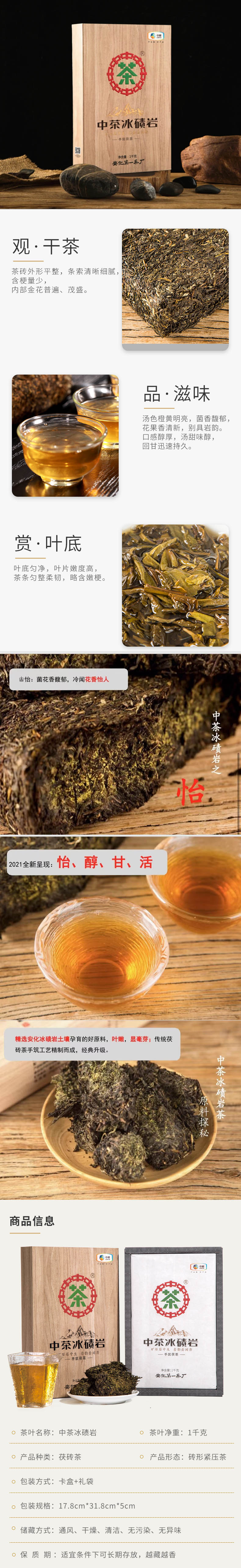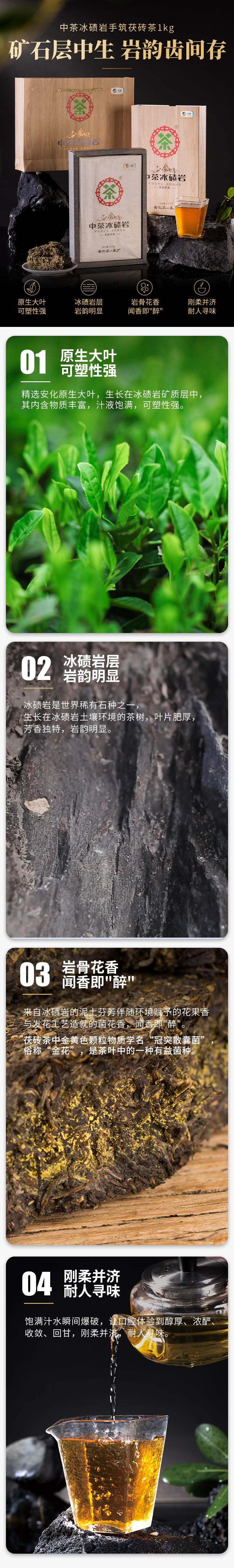 中粮-中茶安化黑茶(金花茯砖中茶冰碛岩)茯砖茶 1000g/盒/金花饱满/原产地直发