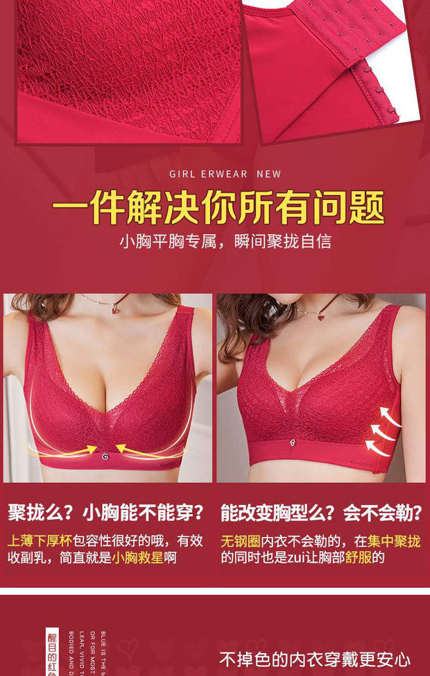 无钢圈内衣女聚拢小胸无痕文胸套装加厚上托收副乳调整型薄款胸罩