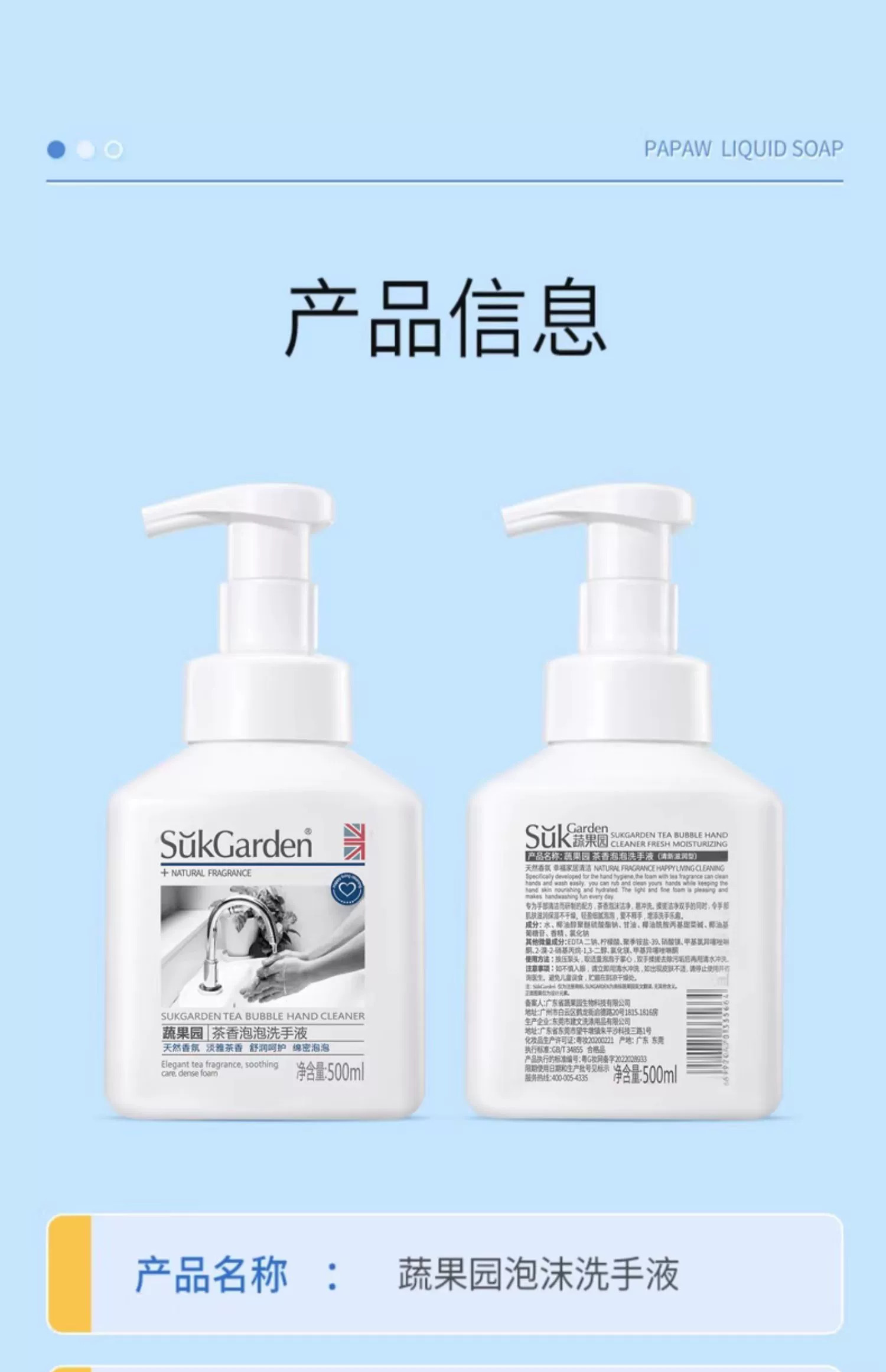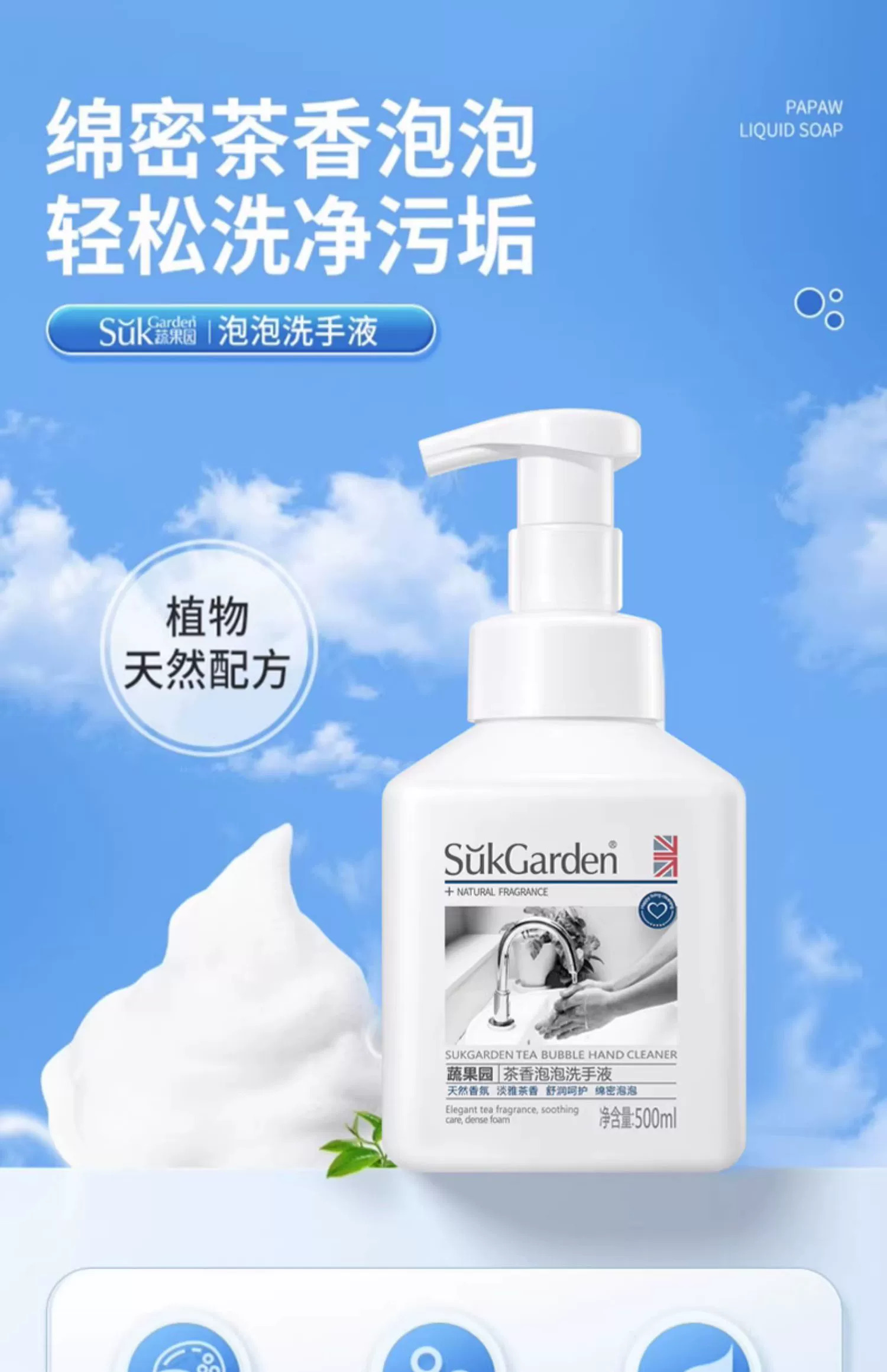 蔬果园(SukGarden)茶泡泡清香婴儿洗手液 泡沫洗手液 500ML茶香泡泡洗手液*3