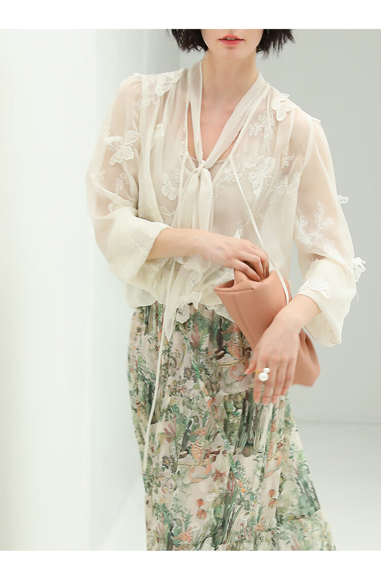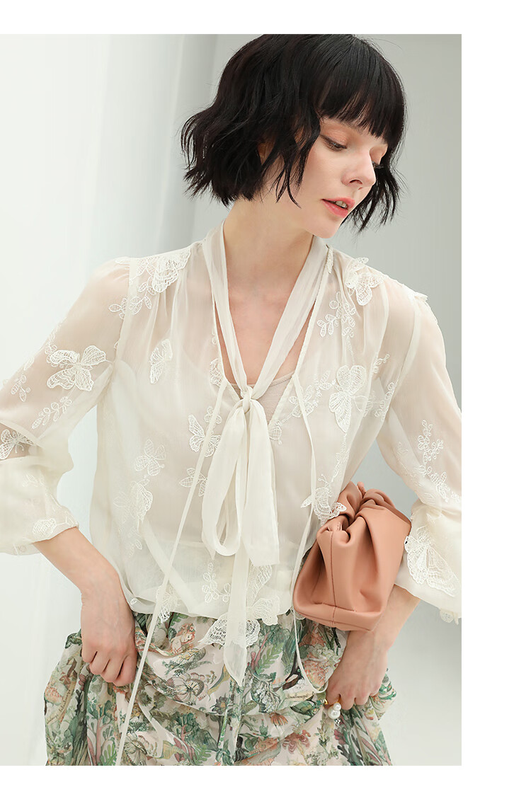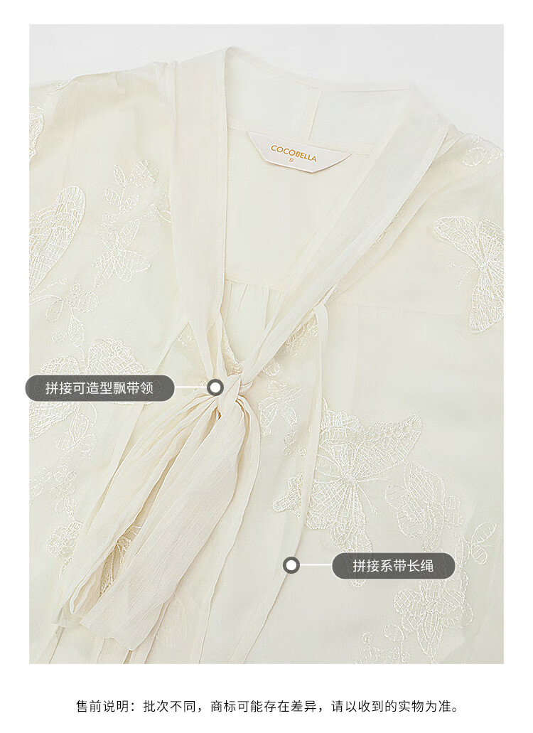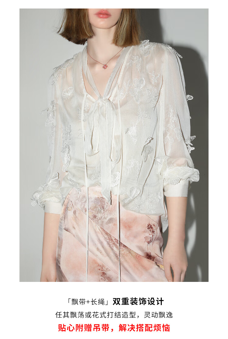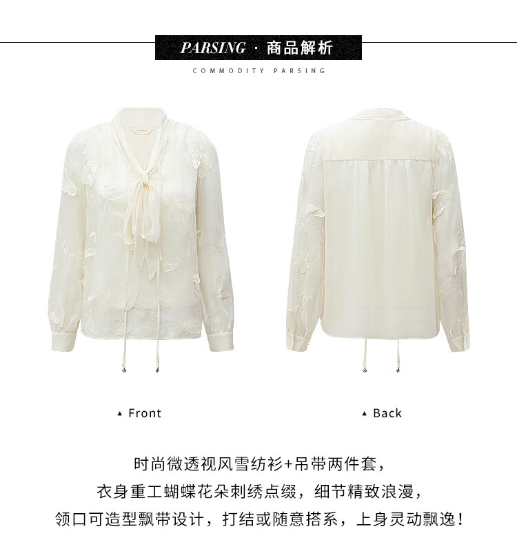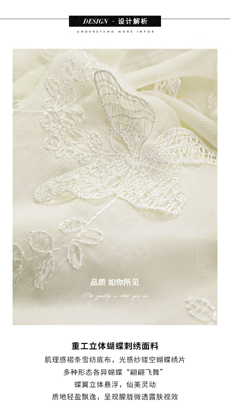 COCOBELLA手工立体蝴蝶刺绣飘逸透视飘带雪纺衫吊带套装LC52
