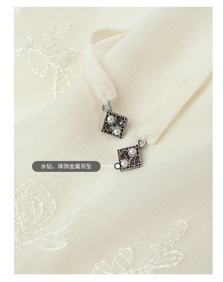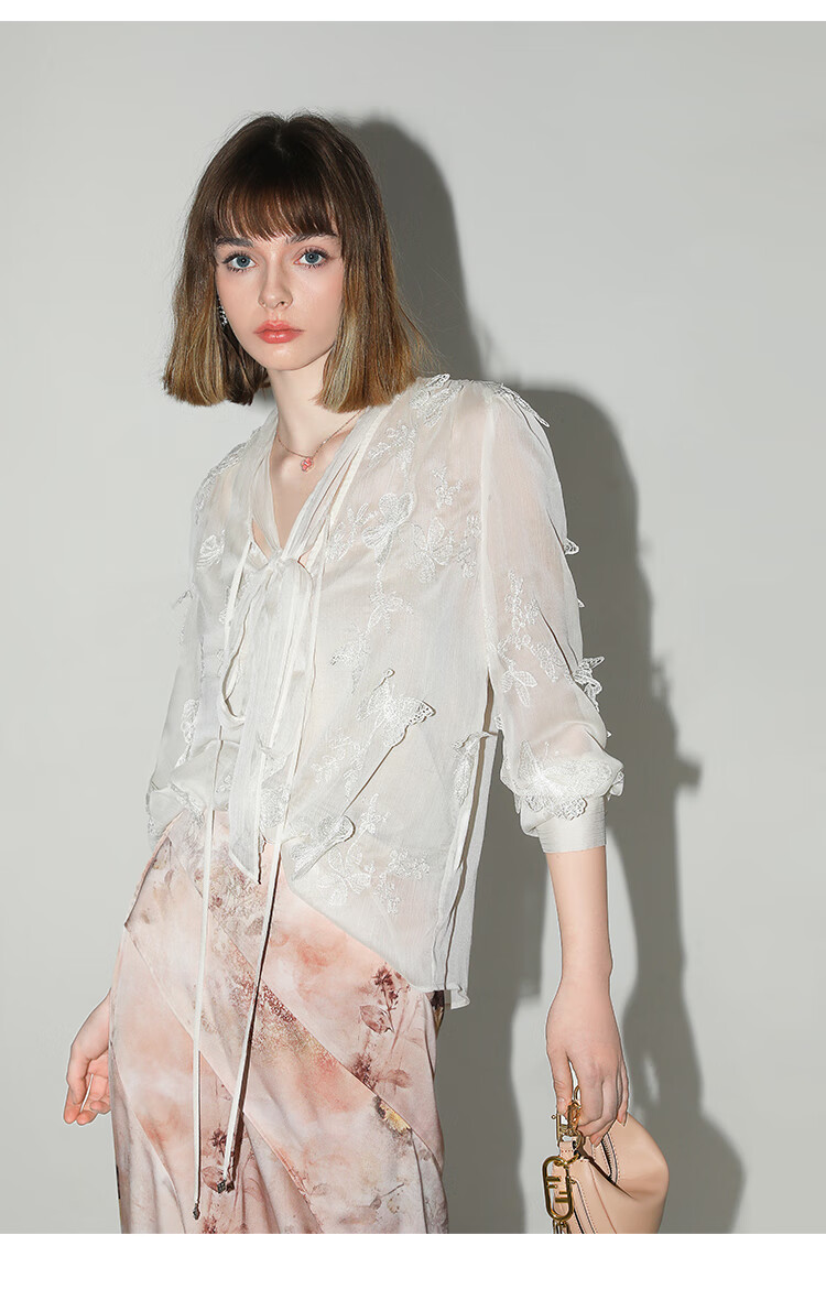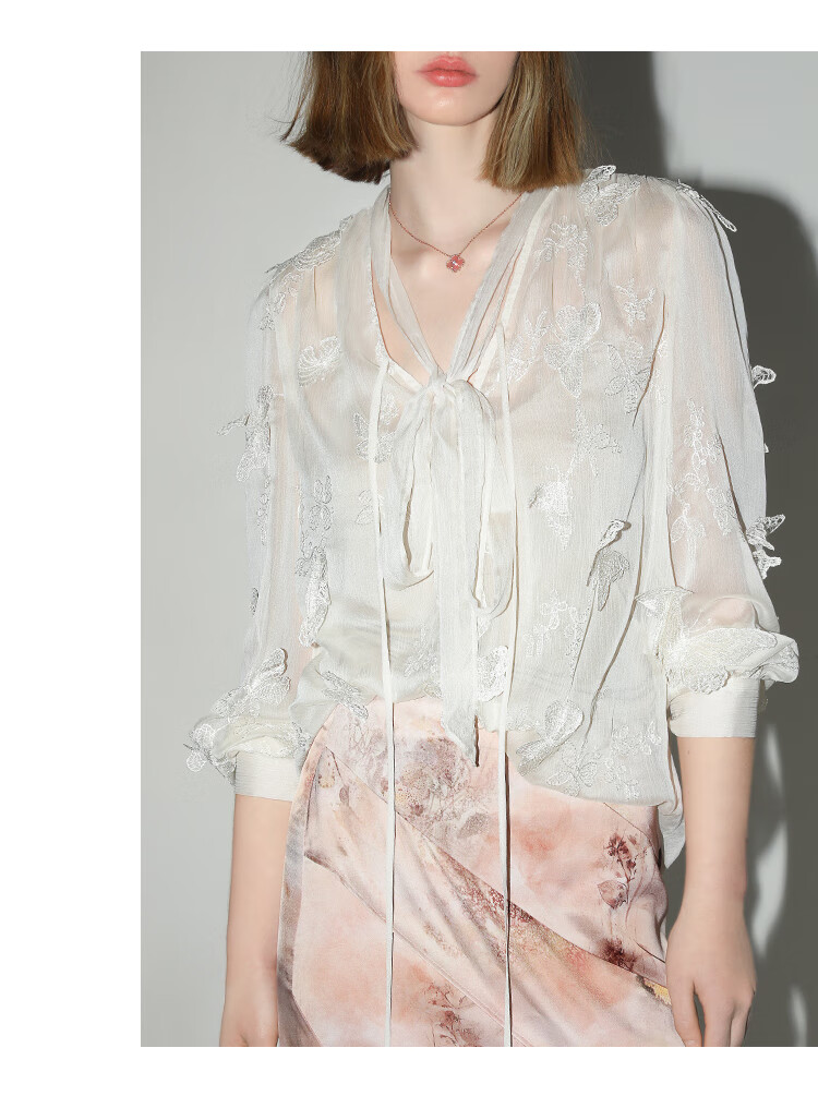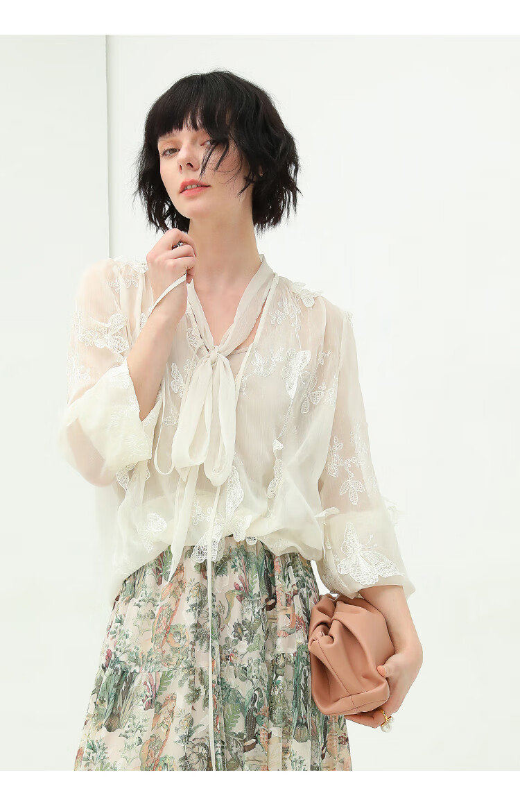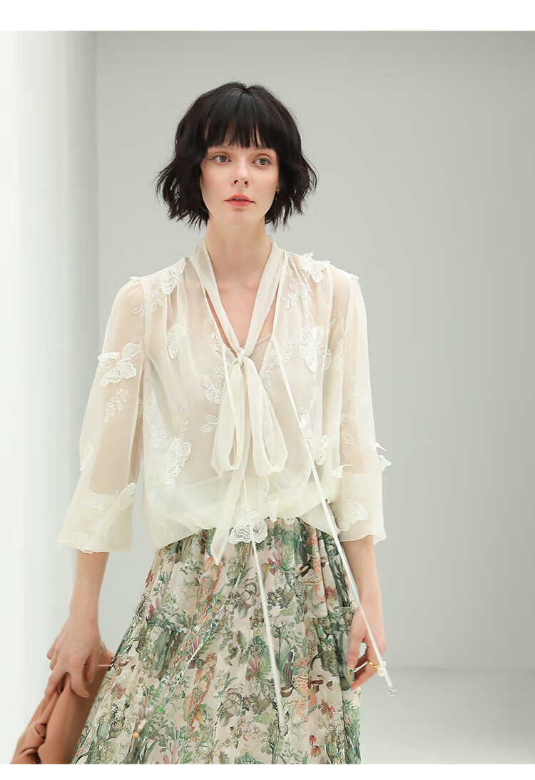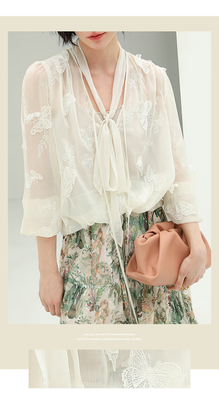 COCOBELLA手工立体蝴蝶刺绣飘逸透视飘带雪纺衫吊带套装LC52
