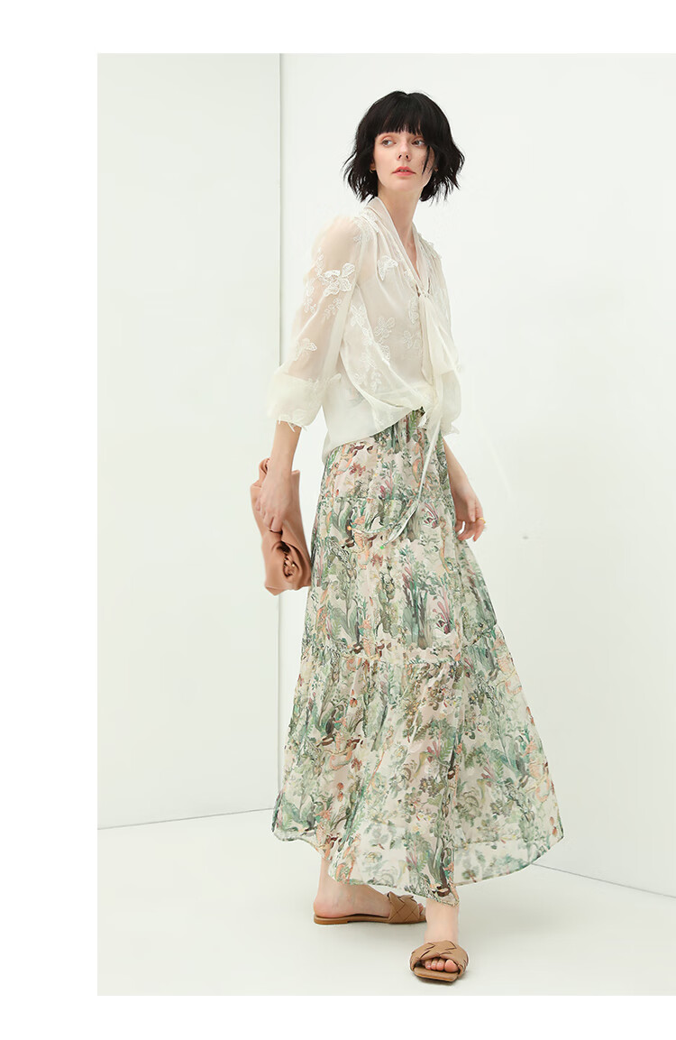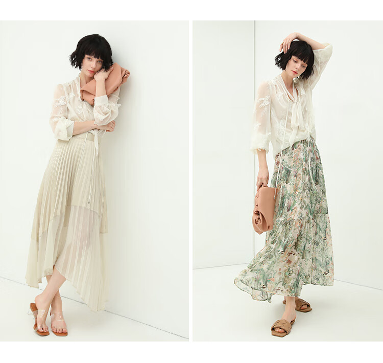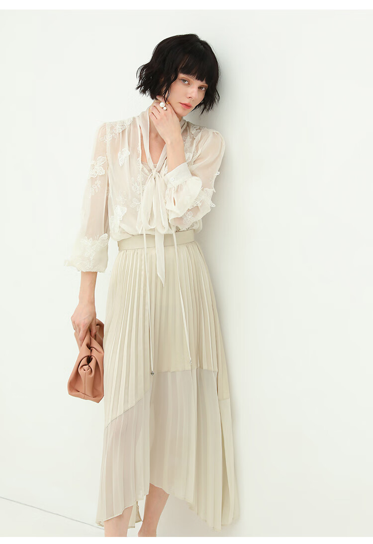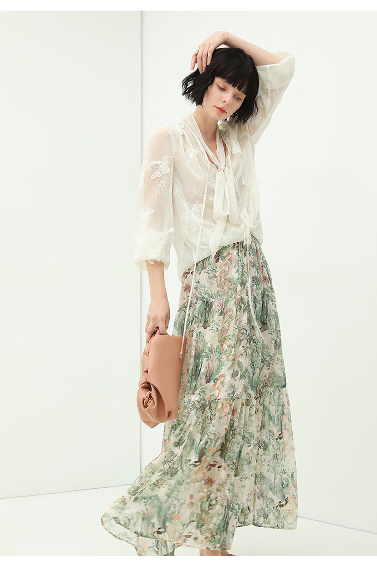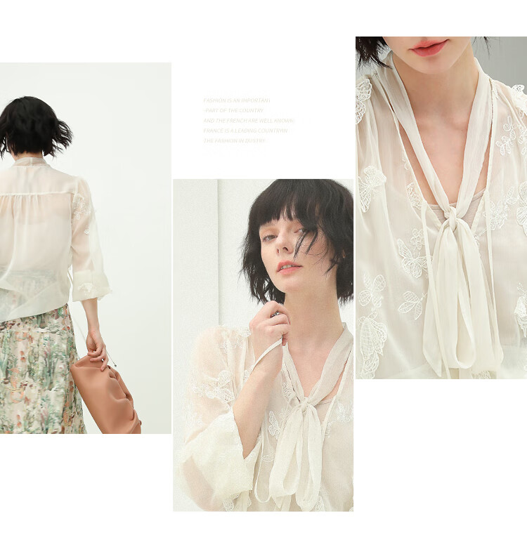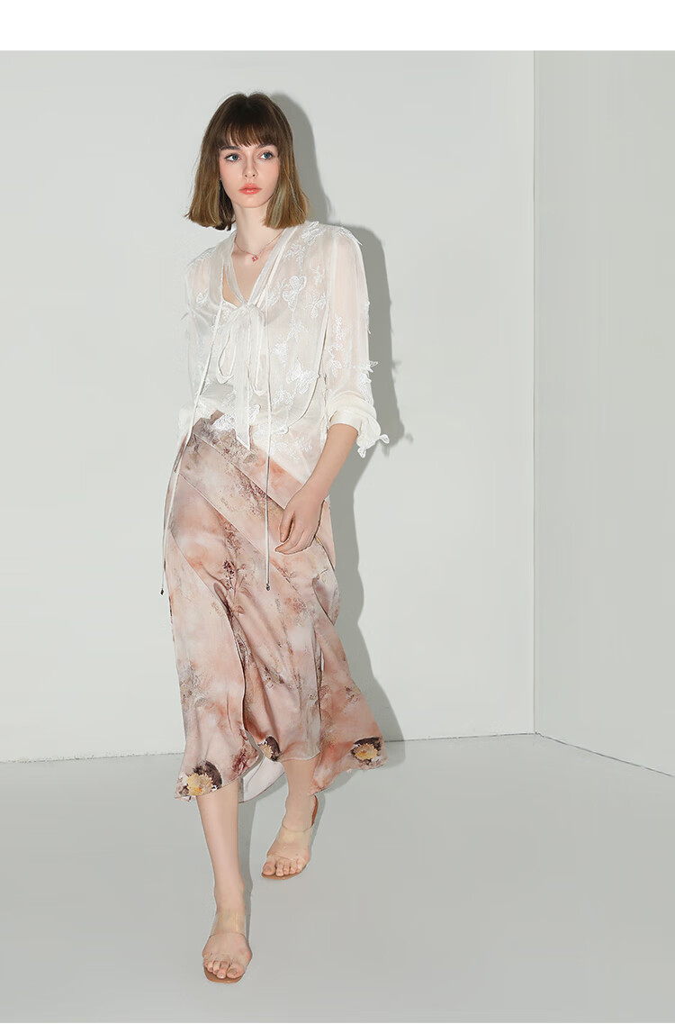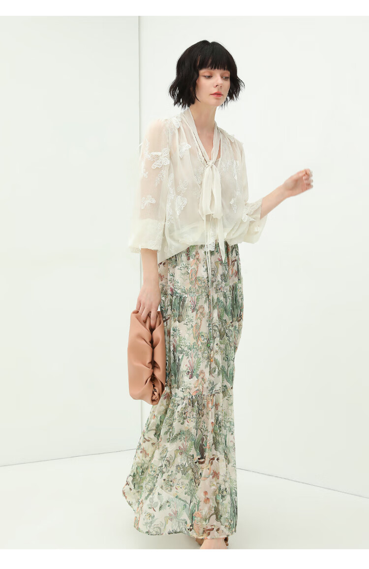 COCOBELLA手工立体蝴蝶刺绣飘逸透视飘带雪纺衫吊带套装LC52
