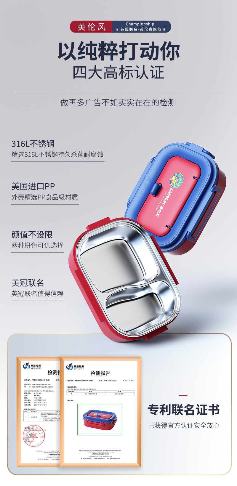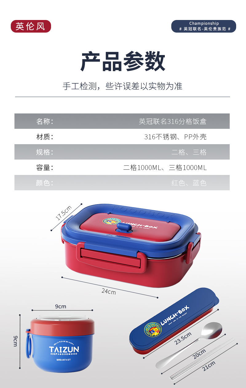 【下单配送餐具 英冠联名 抗菌不锈钢】新款保温饭盒专用餐盒学生小学生1-6年级用大容量316不锈钢便当盒