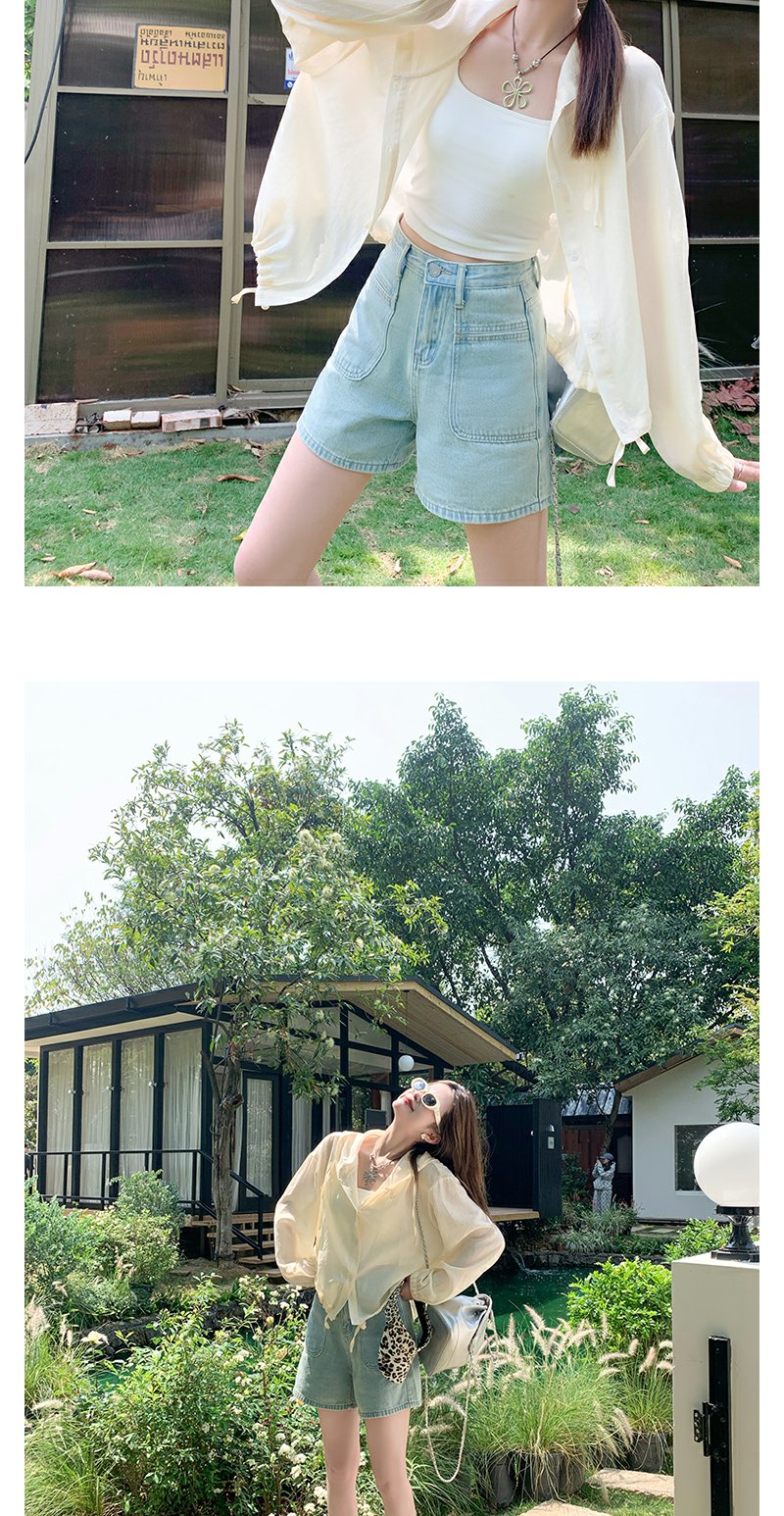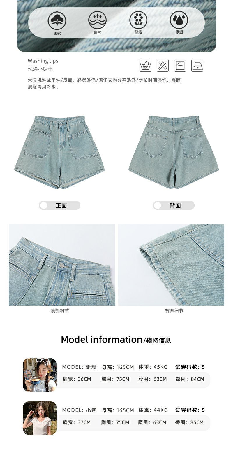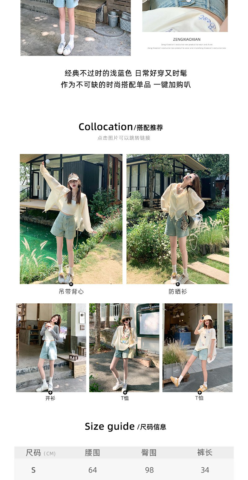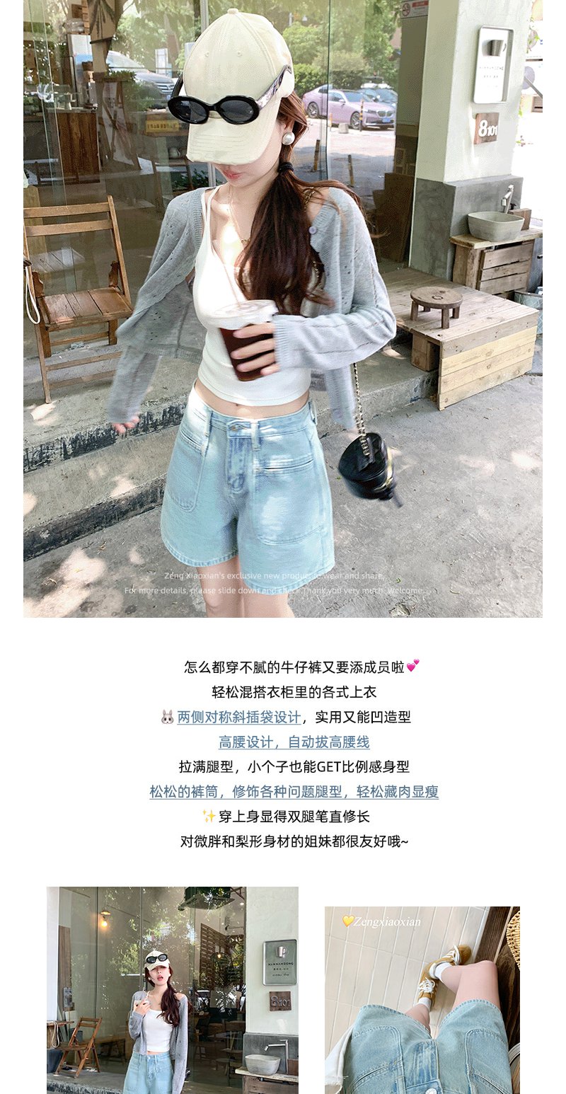<曾小咸推荐>高腰百搭休闲宽松浅蓝色牛仔短裤