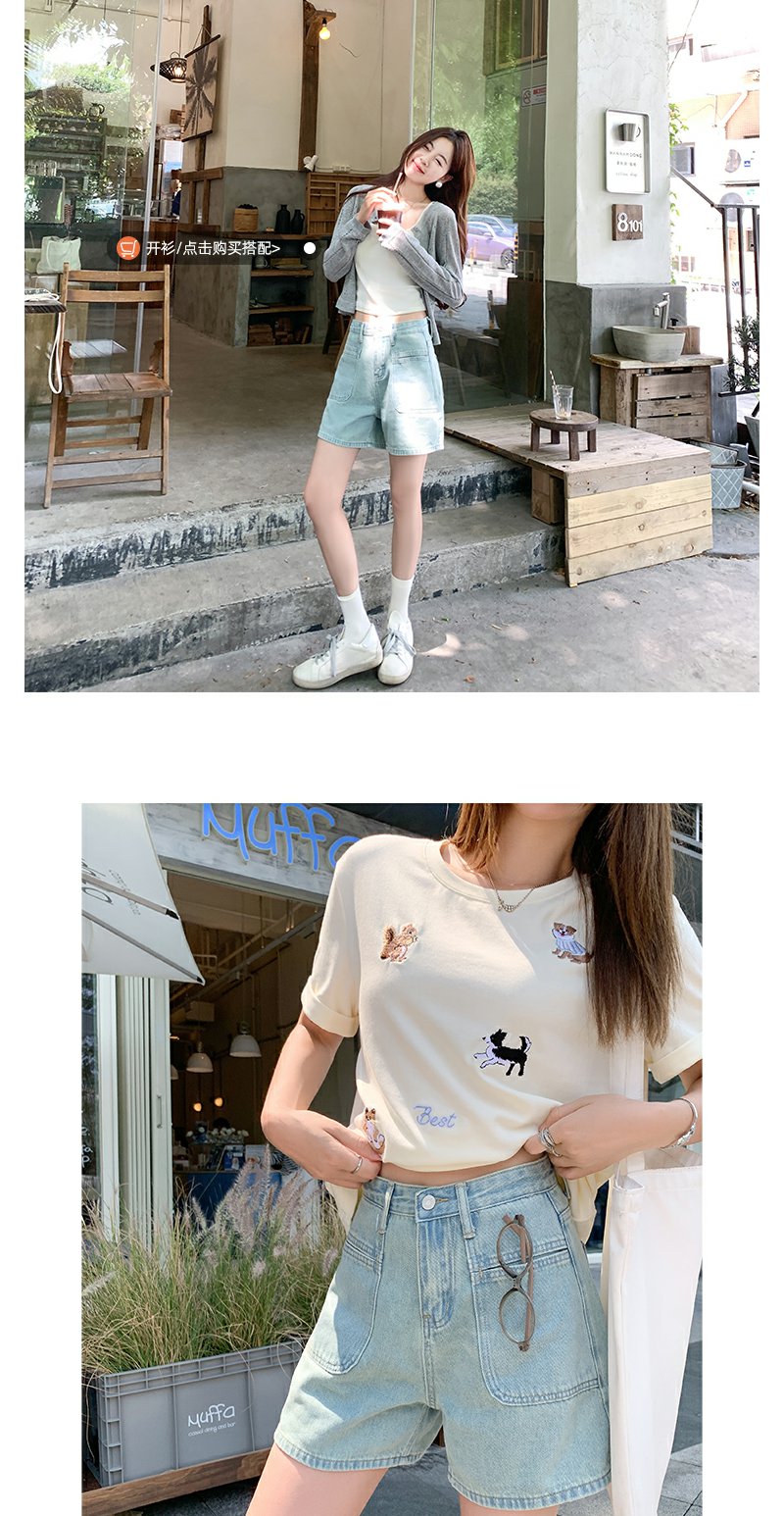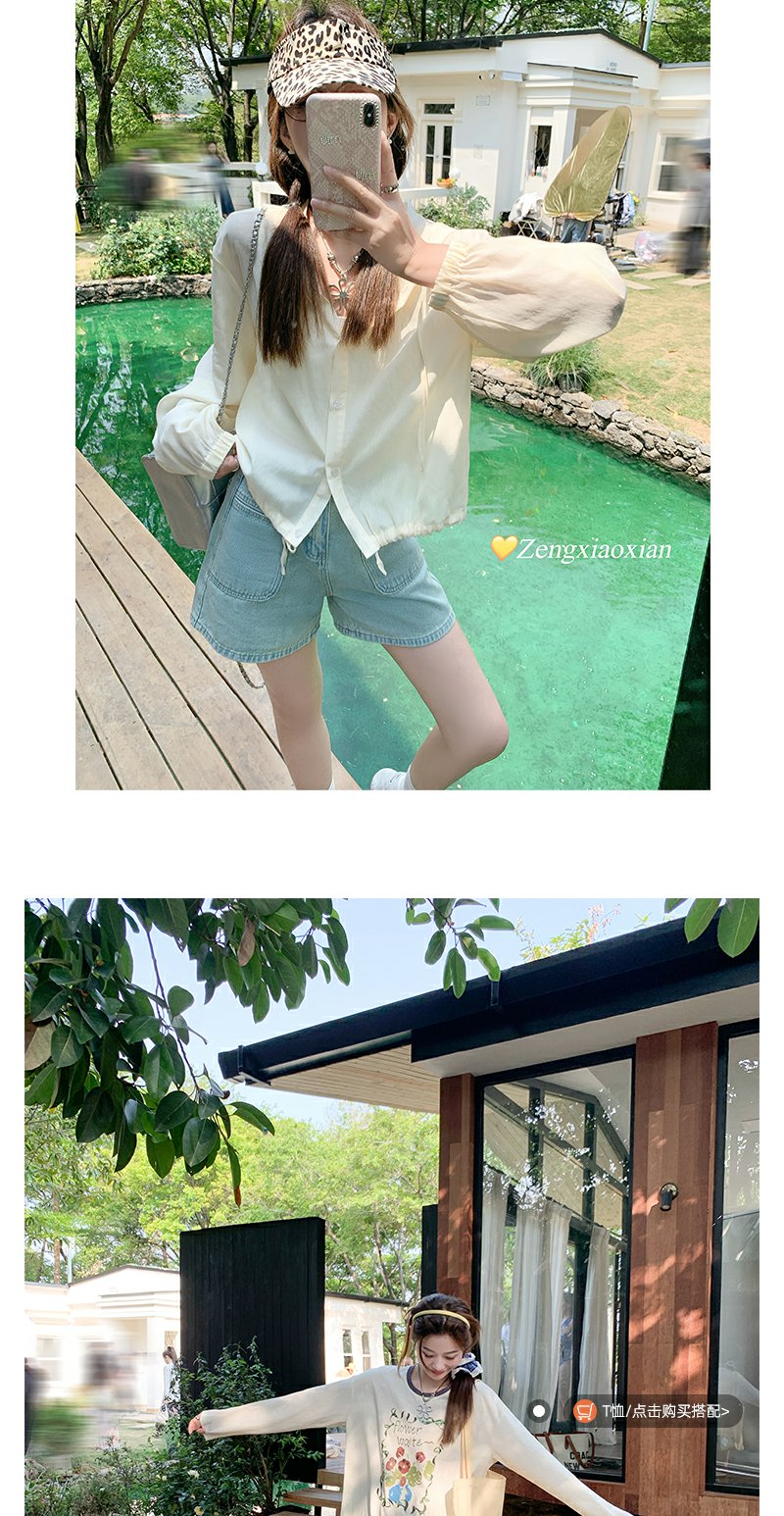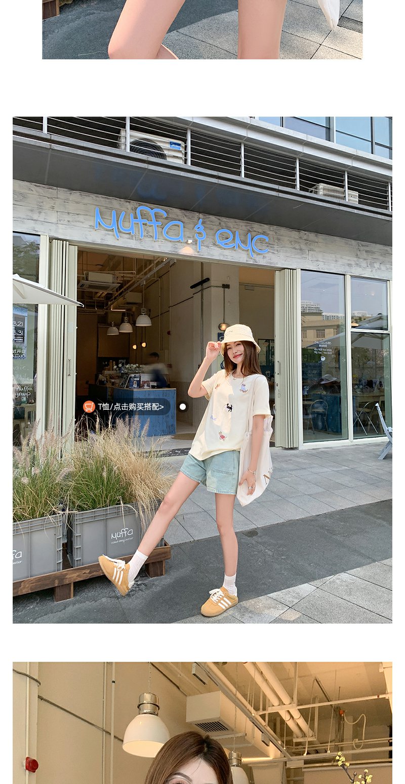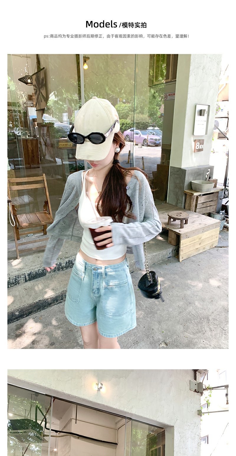 <曾小咸推荐>高腰百搭休闲宽松浅蓝色牛仔短裤