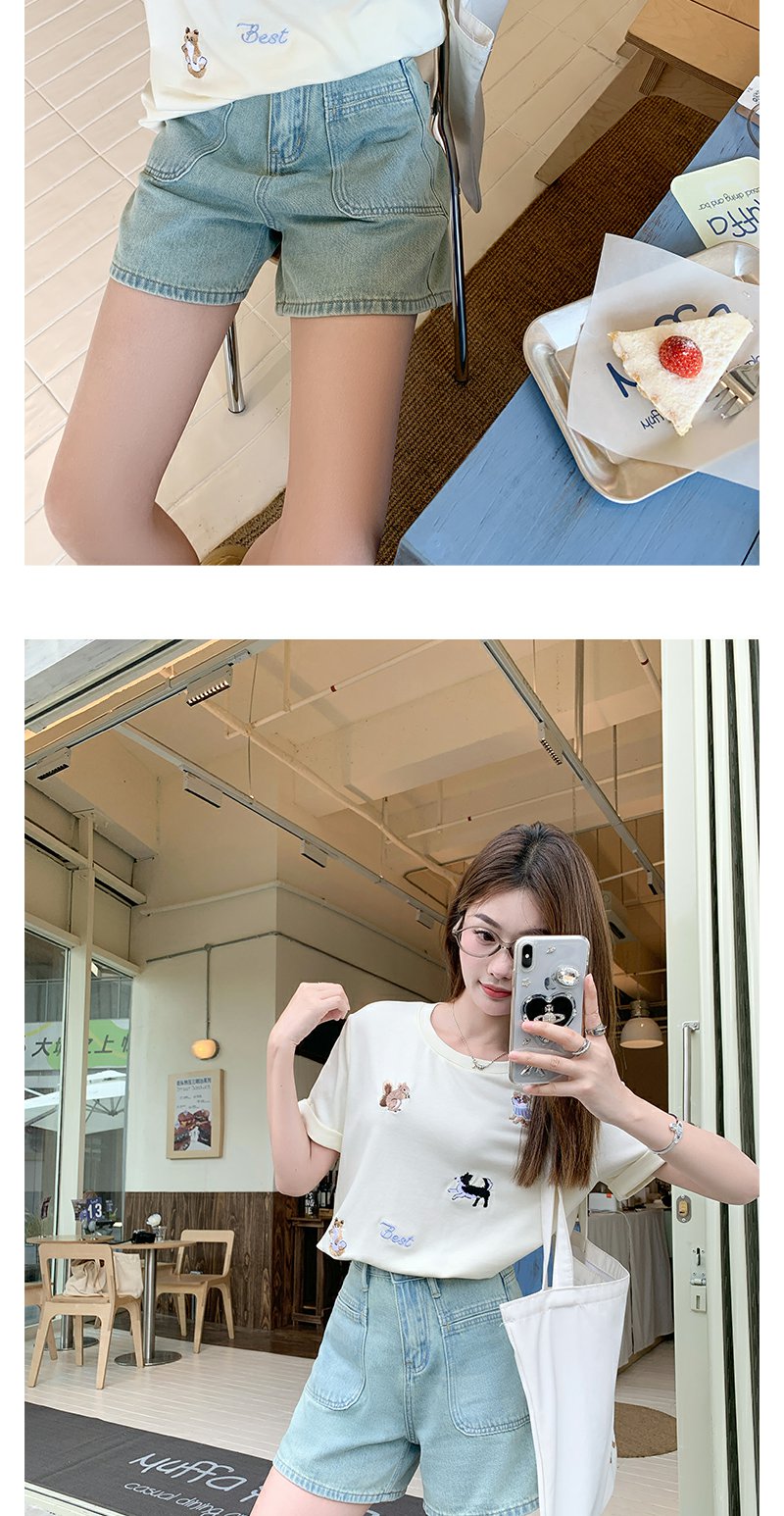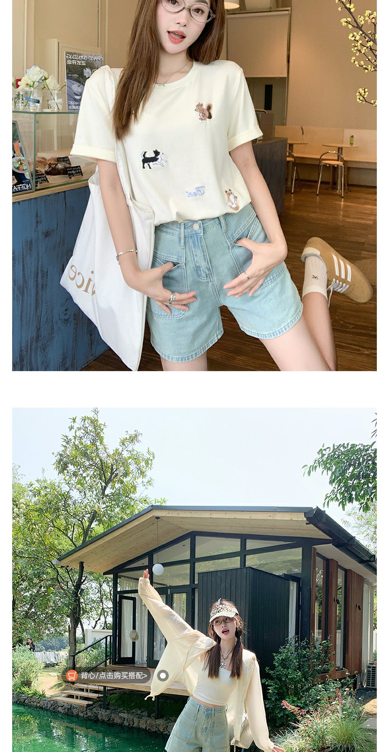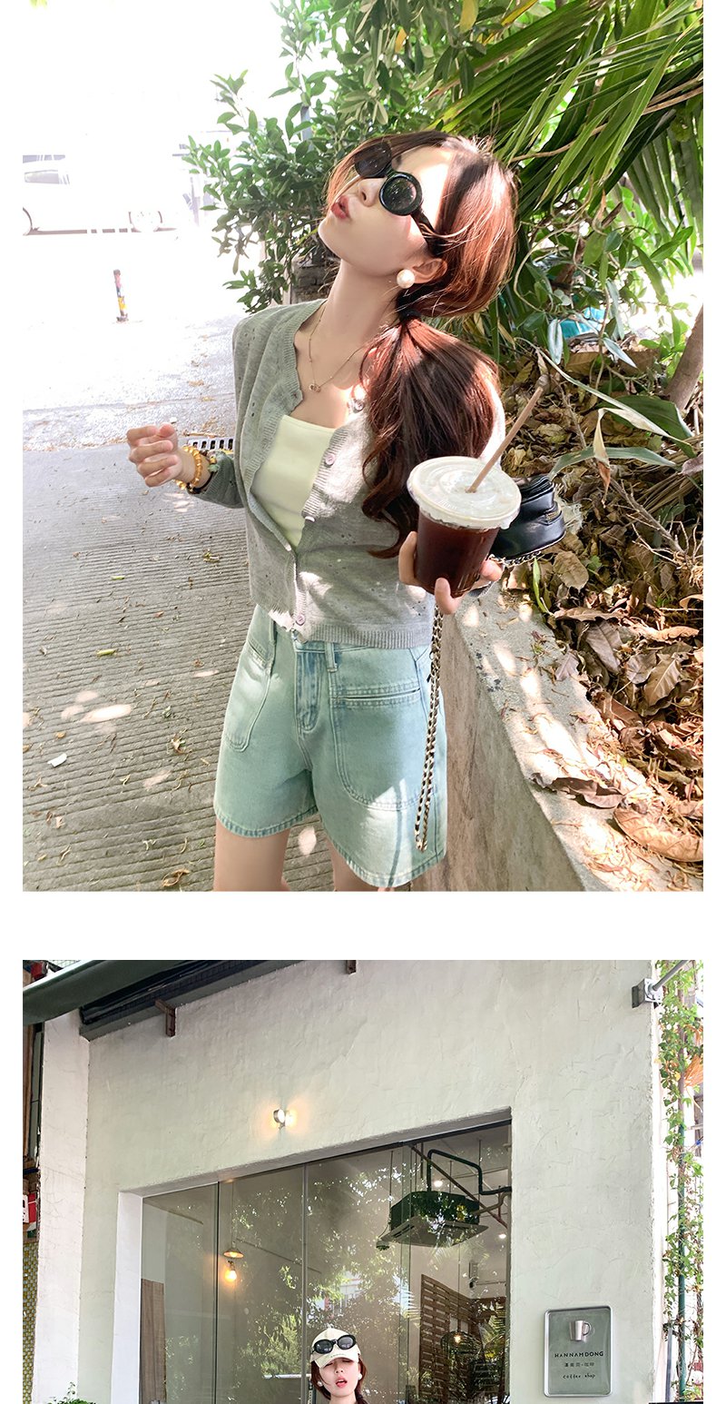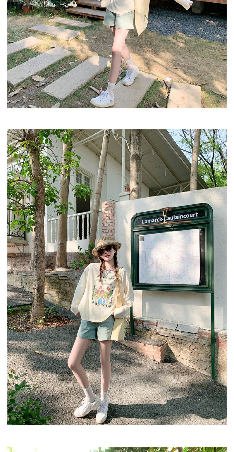 <曾小咸推荐>高腰百搭休闲宽松浅蓝色牛仔短裤