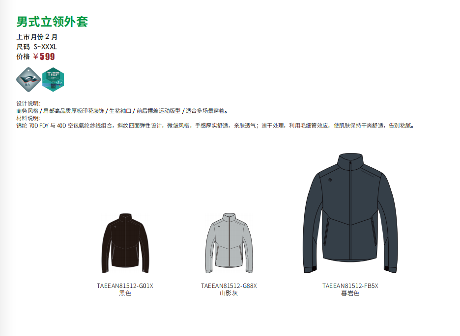 探路者男式立领外套TAEEAN81512