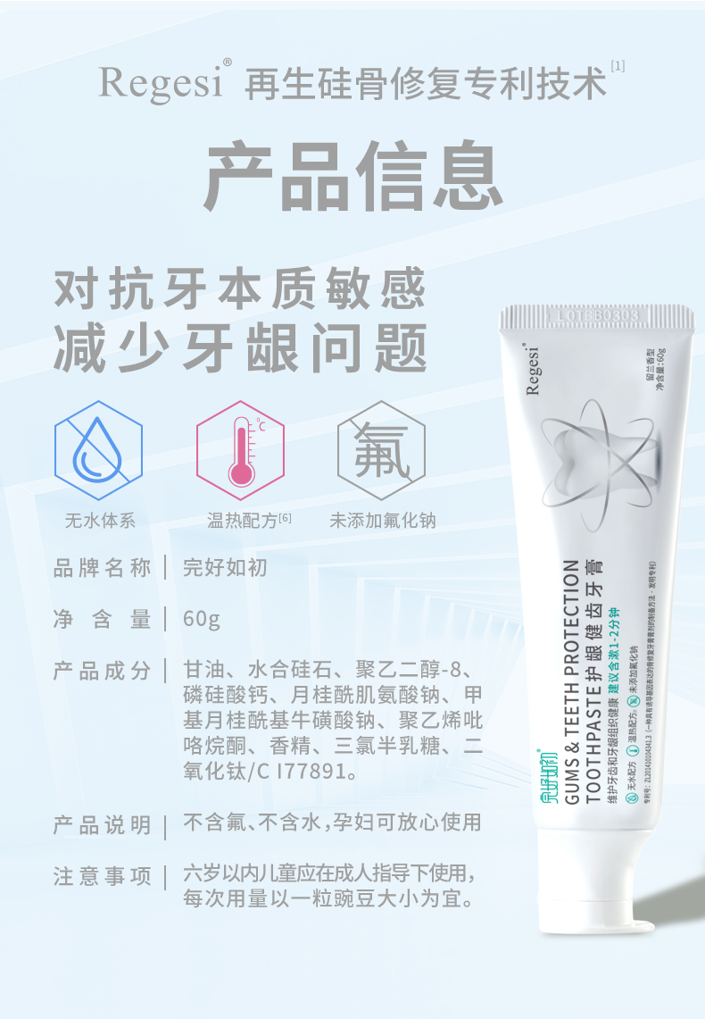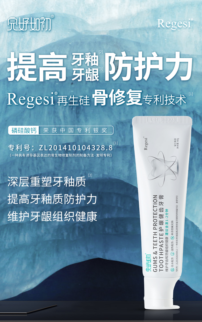 完好如初牙膏RegeSi再生硅护龈牙敏感修护牙釉除渍增白