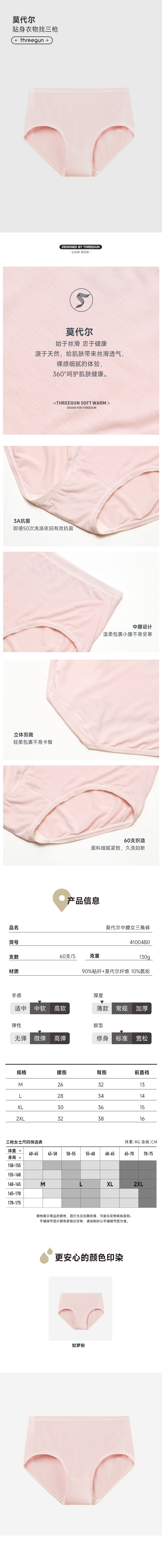 Threegun三枪 【莫代尔】中腰女士三角内裤(1条装)-41004B011