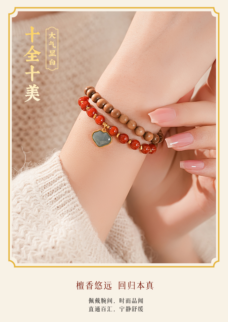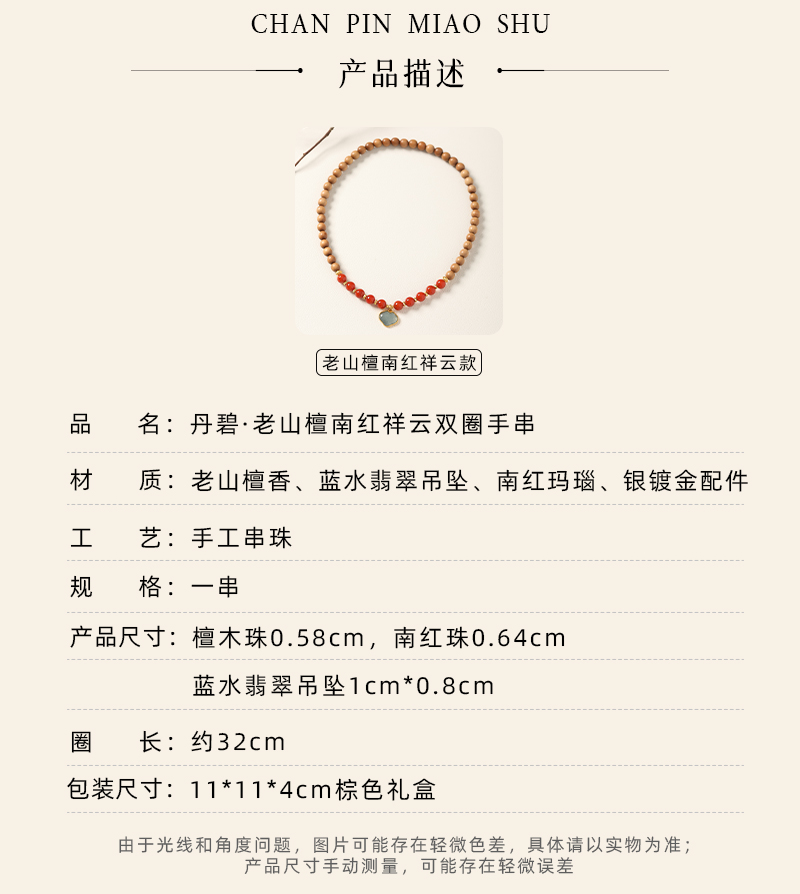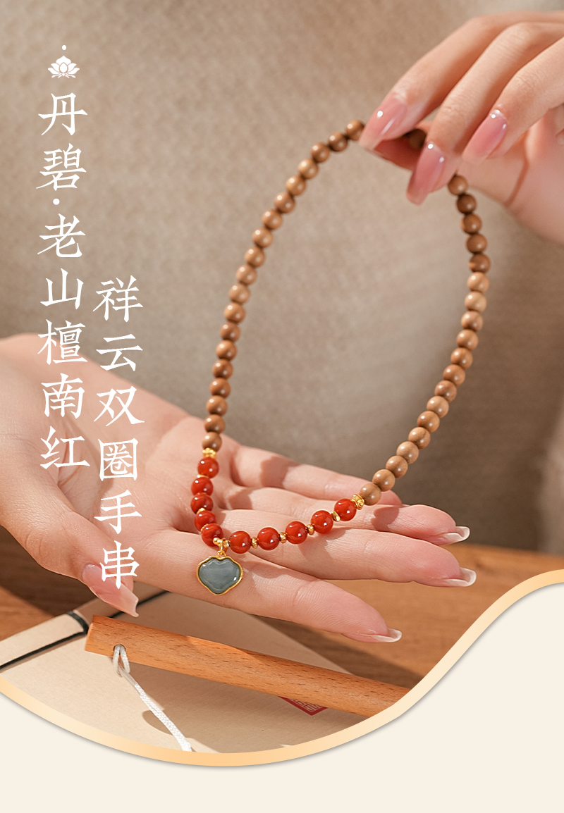 【丹碧·老山檀南红祥云双圈手串·带证书】敦煌福泽小众轻奢祈福老山檀手串