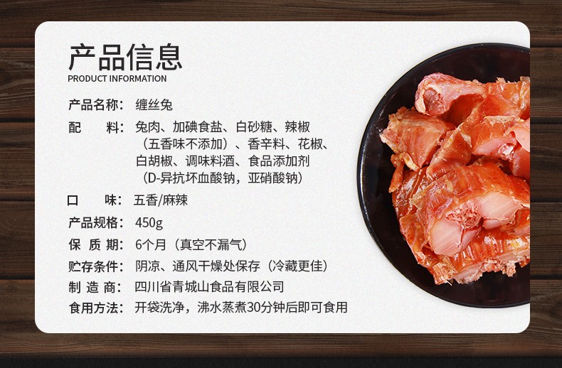 青城山 兔肉 四川成都特产 风干缠丝兔450g(无头)
