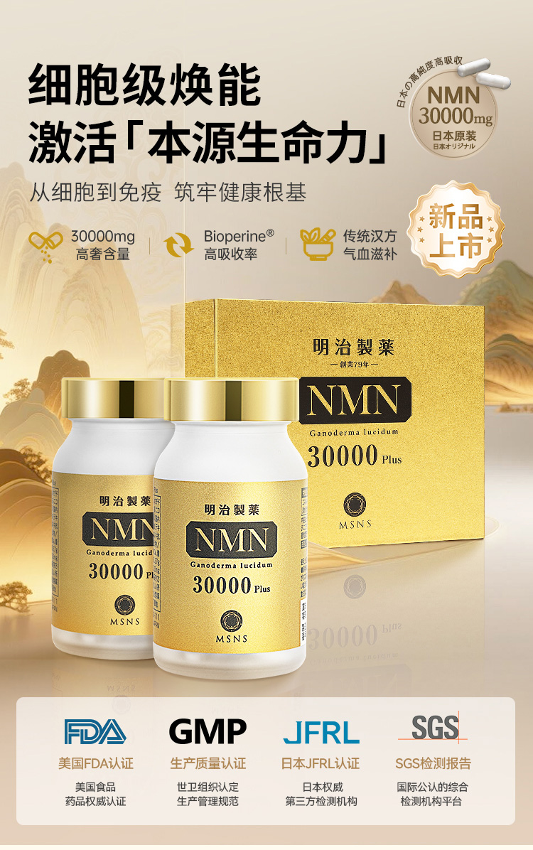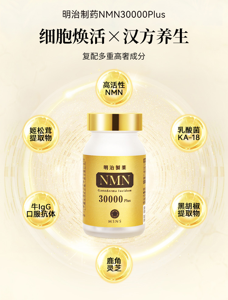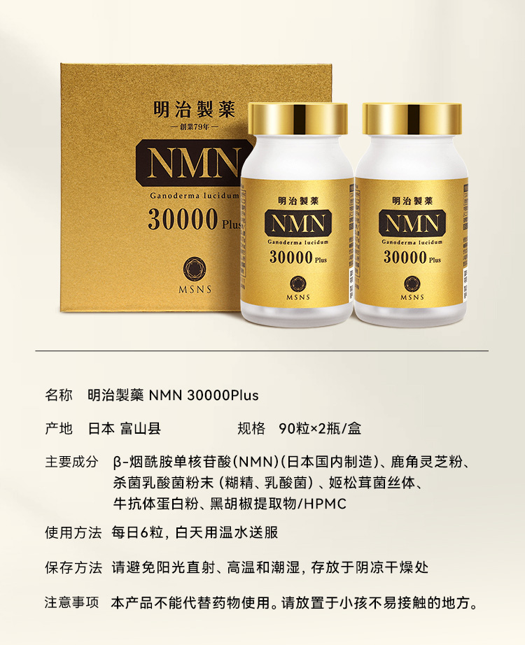 明治制药NMN30000plus 90粒*2瓶【香港直邮,一单仅限拍一瓶,请与其他商品分开下单】