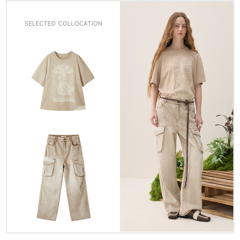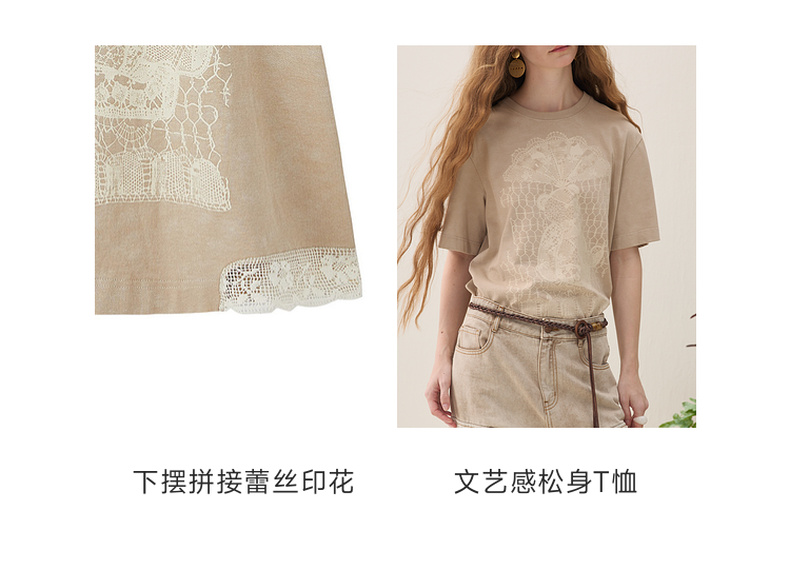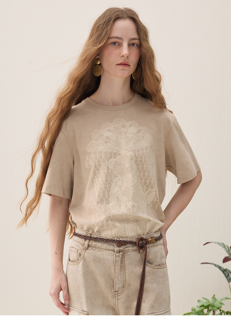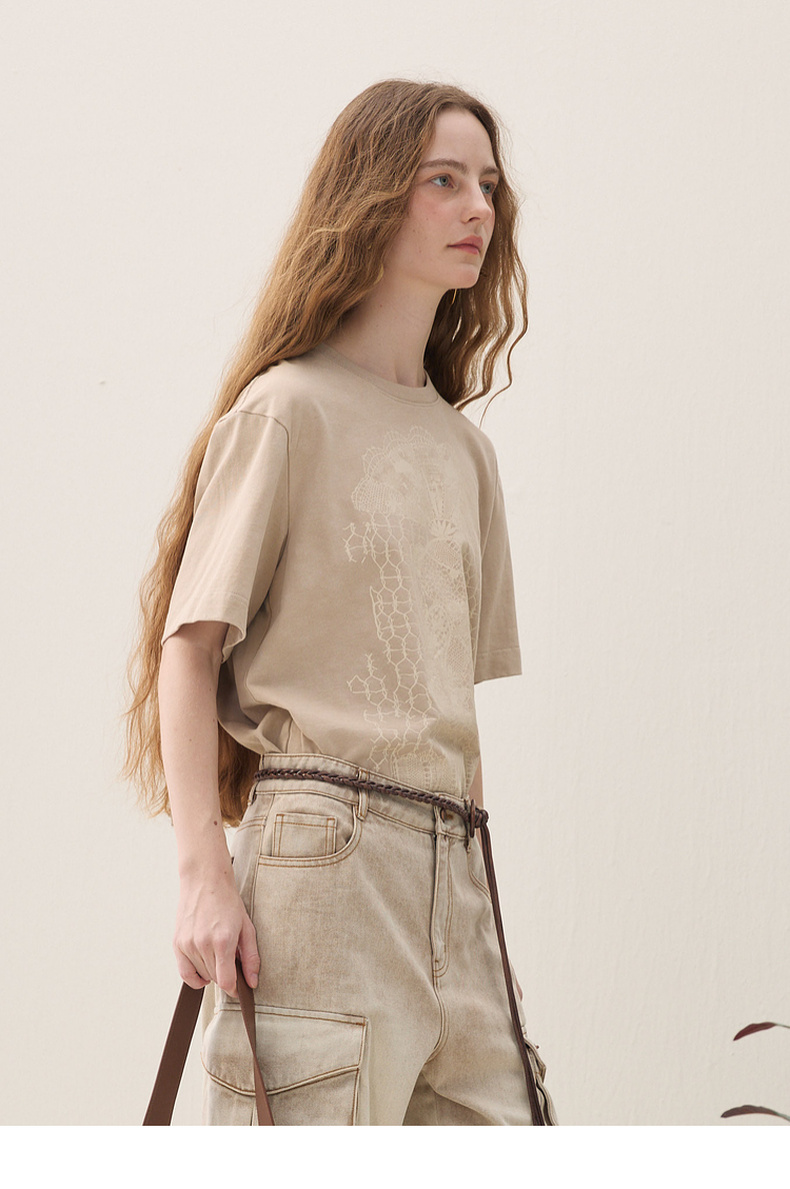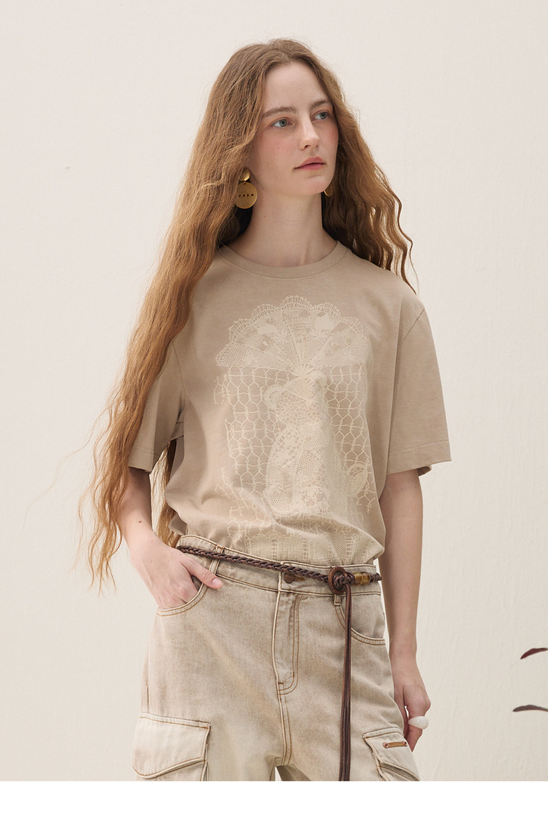 谜底蜡染T恤短袖2026年春季新品蕾丝小熊柔软贴身百搭女261MT0022