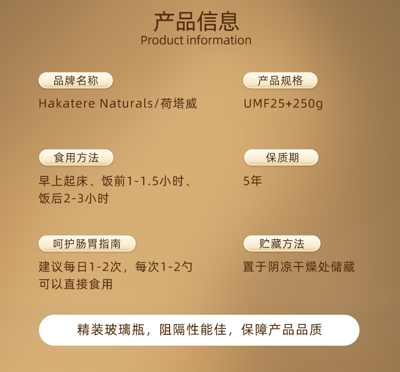 【新西兰进口】荷塔威UMF25+麦卢卡蜂蜜 * 250g/瓶 深度呵护 送礼首选
