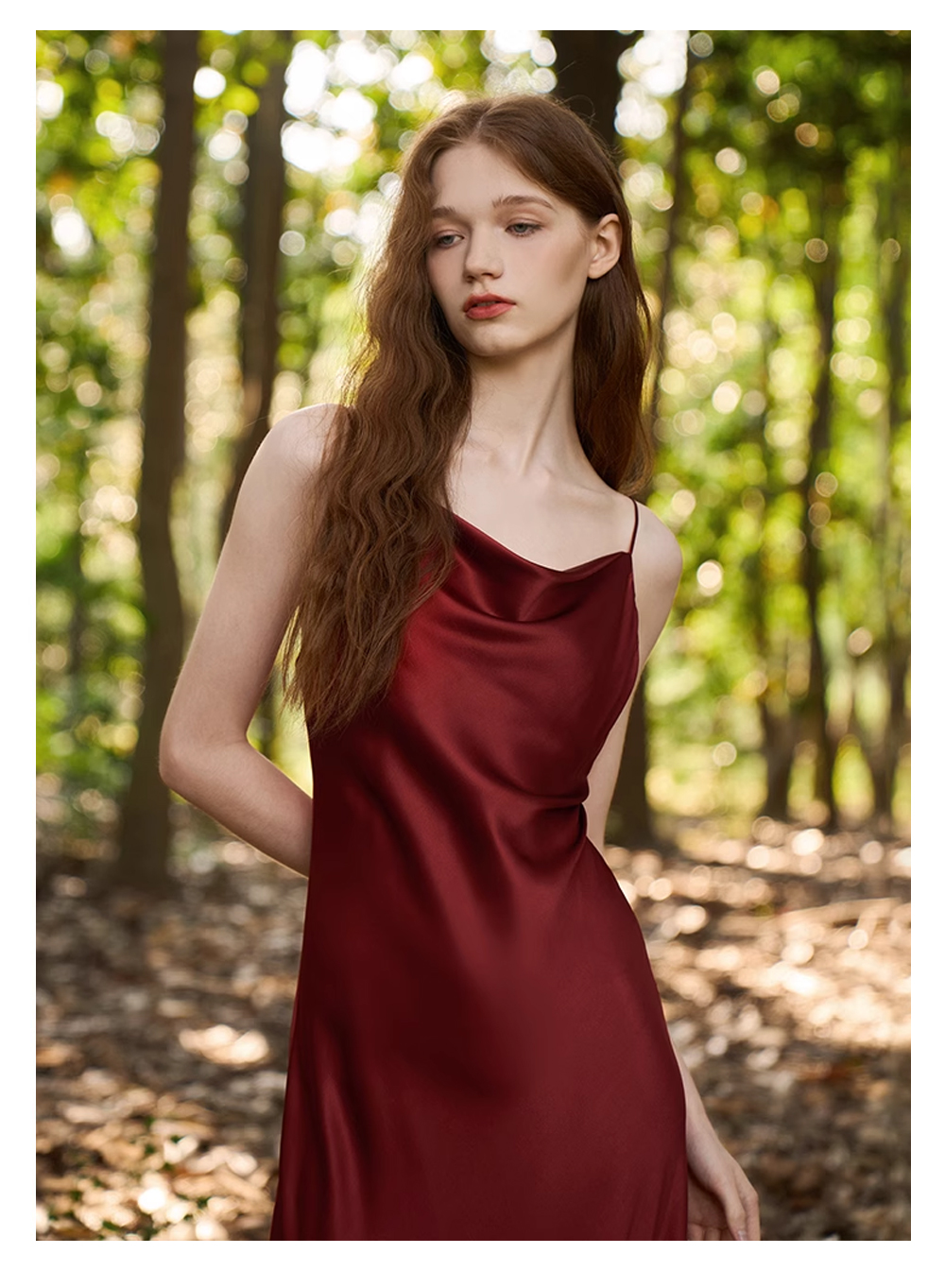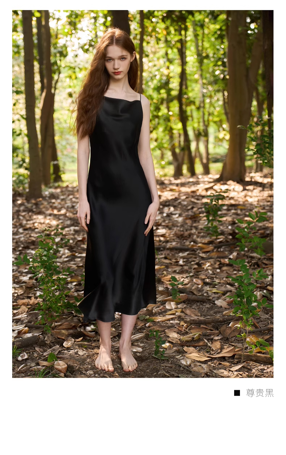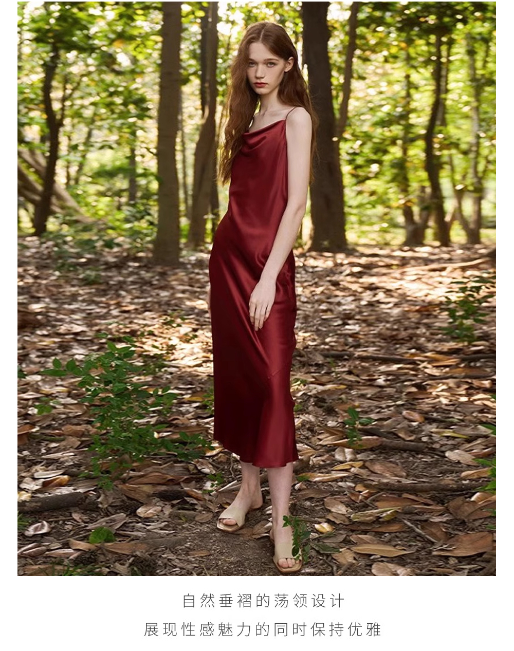 Solo seta丝绸睡裙女长款桑蚕丝荡领吊带裙轻奢高级外穿秋冬