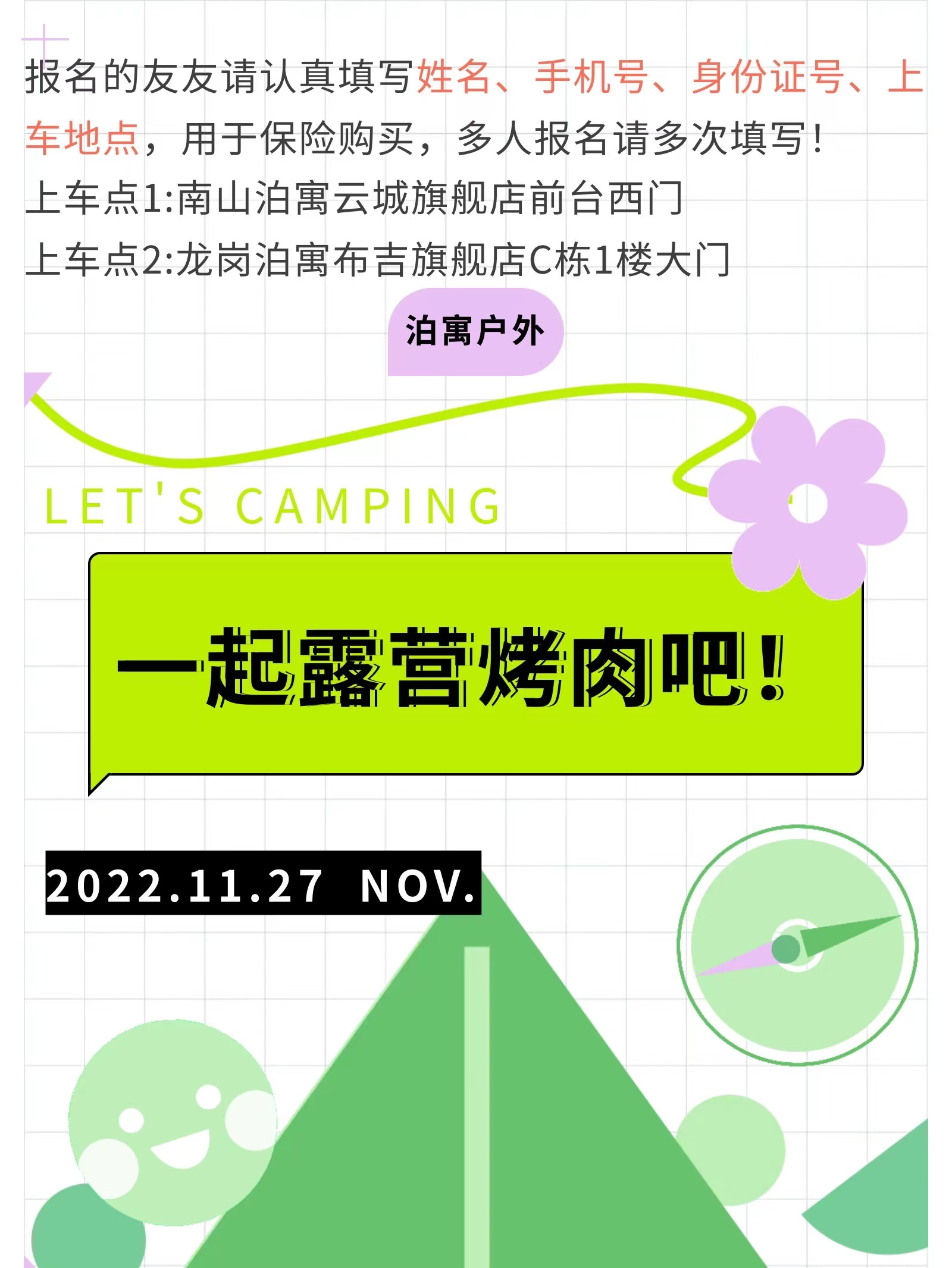 【泊寓户外】11月27日露营不过夜社交烤肉局