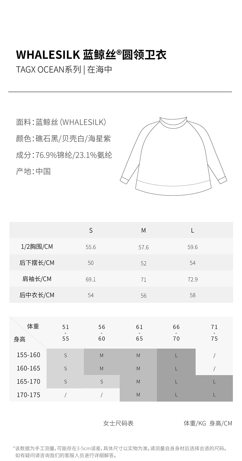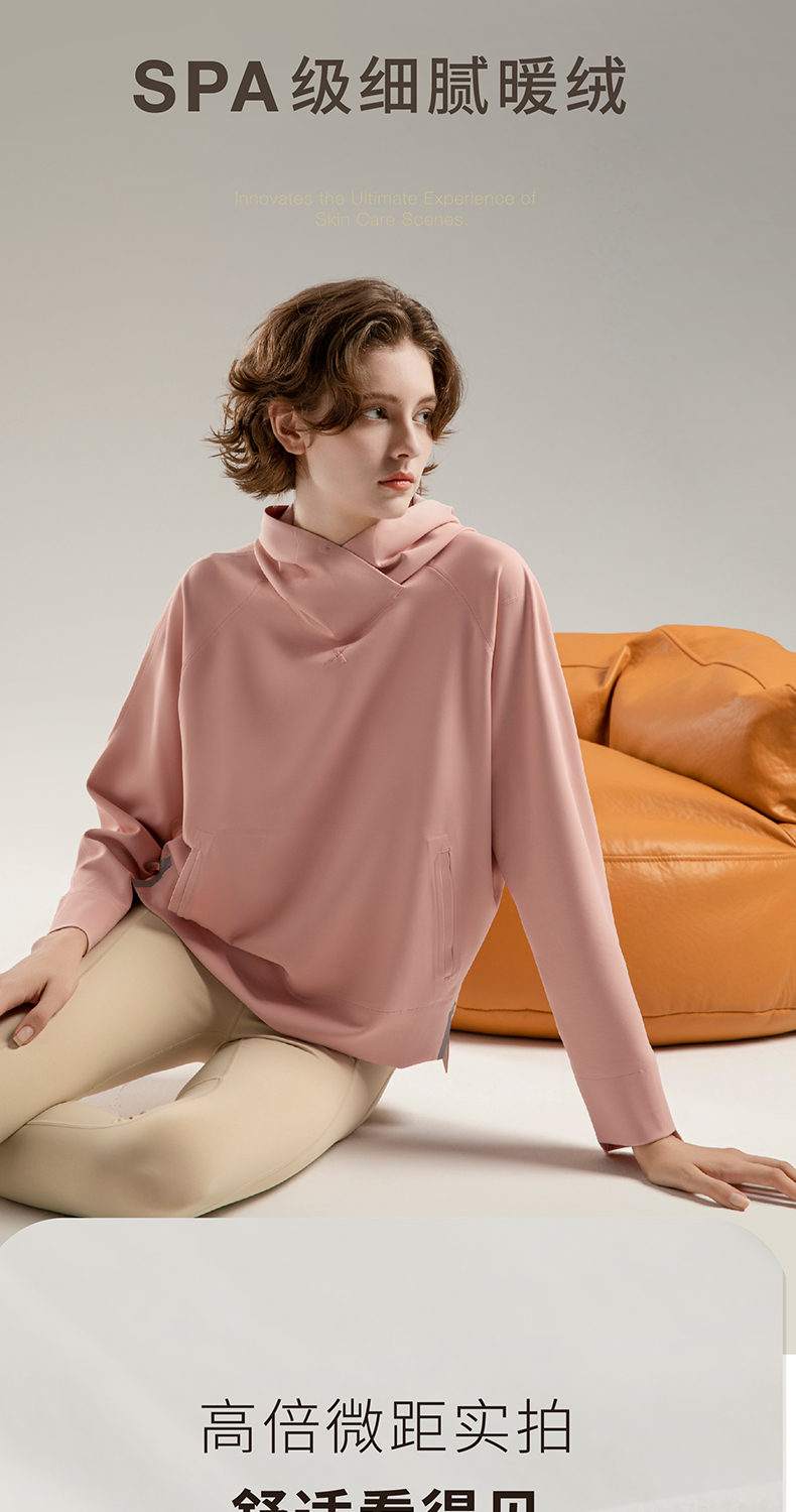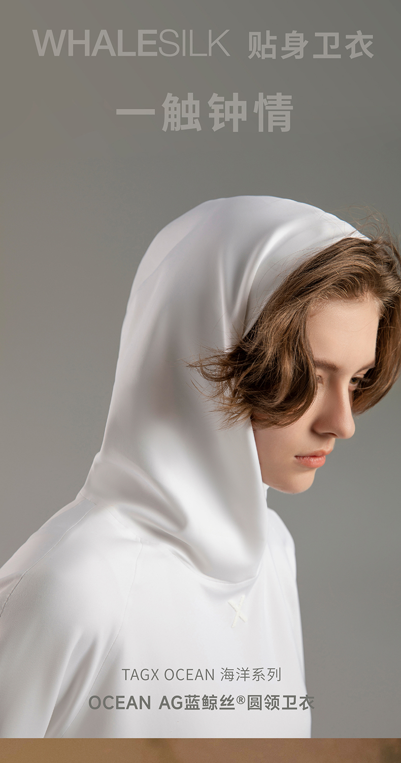 TAGX探观圆领卫衣女连帽蓝鲸丝高级轻盈运动宽松休闲抑菌早春