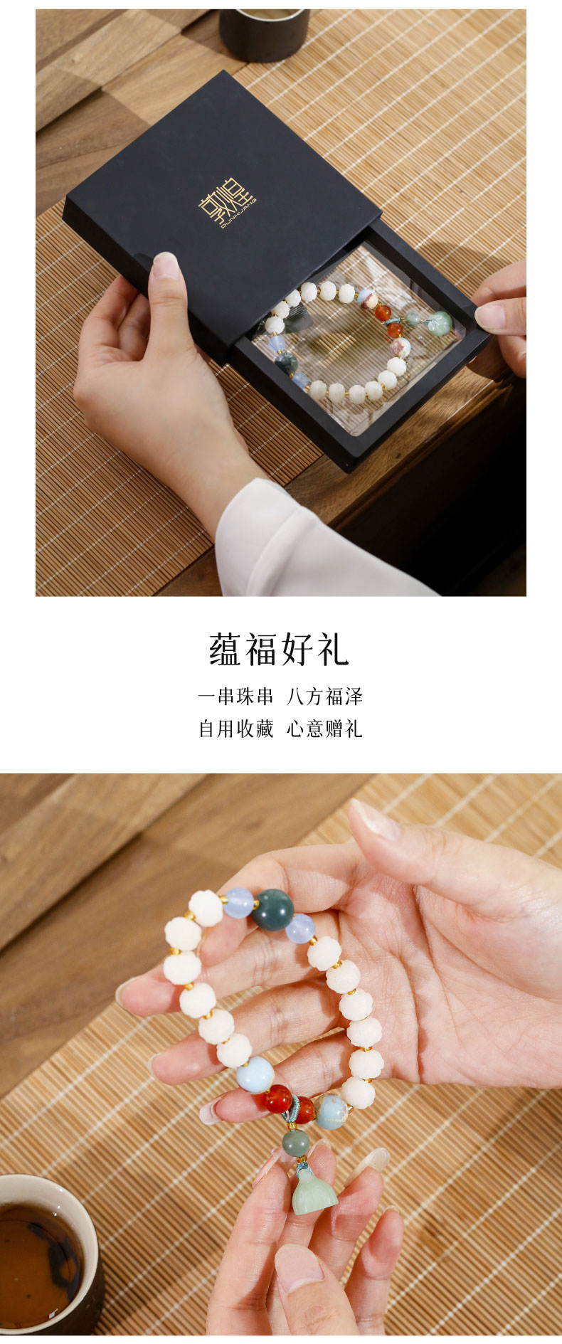 敦煌研究院【白玉菩提莲花手串】(敦煌/嘉峪关包装随机发货)敦煌福泽小众轻奢手串送女友