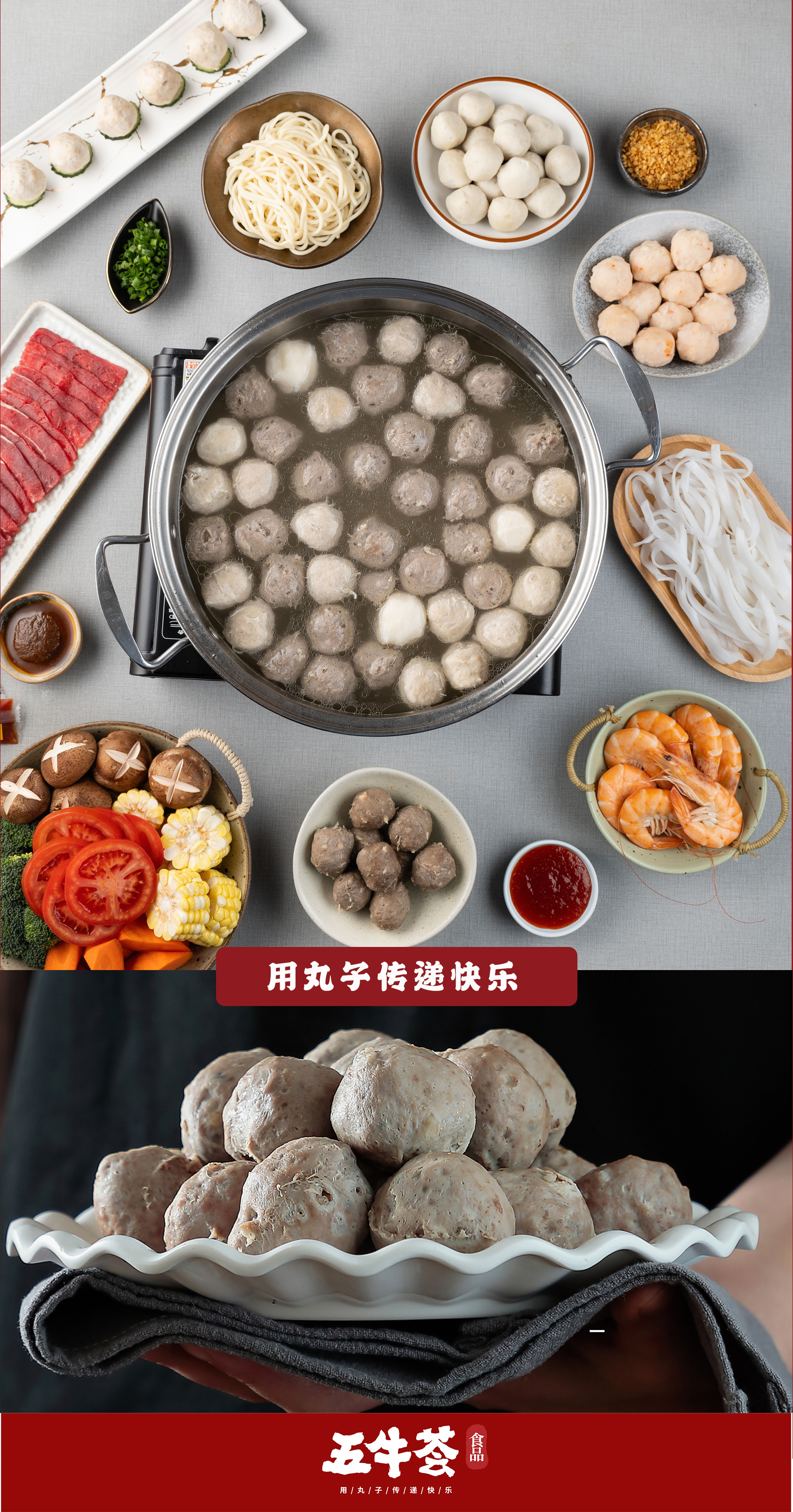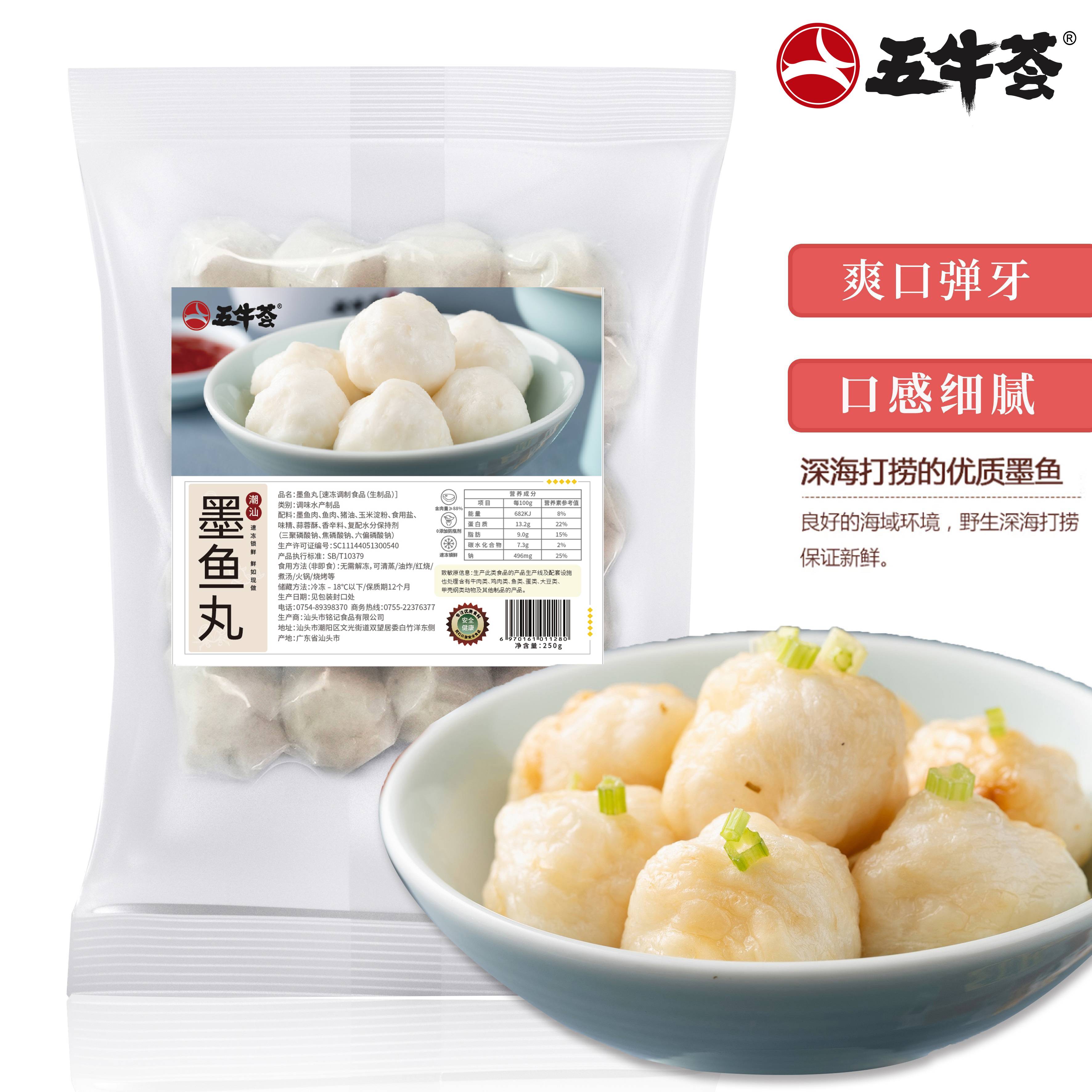 五牛荟墨鱼丸潮汕本港深海墨鱼250g*2包赠送1包250g牛肉丸+1包250g牛筋丸到手4包