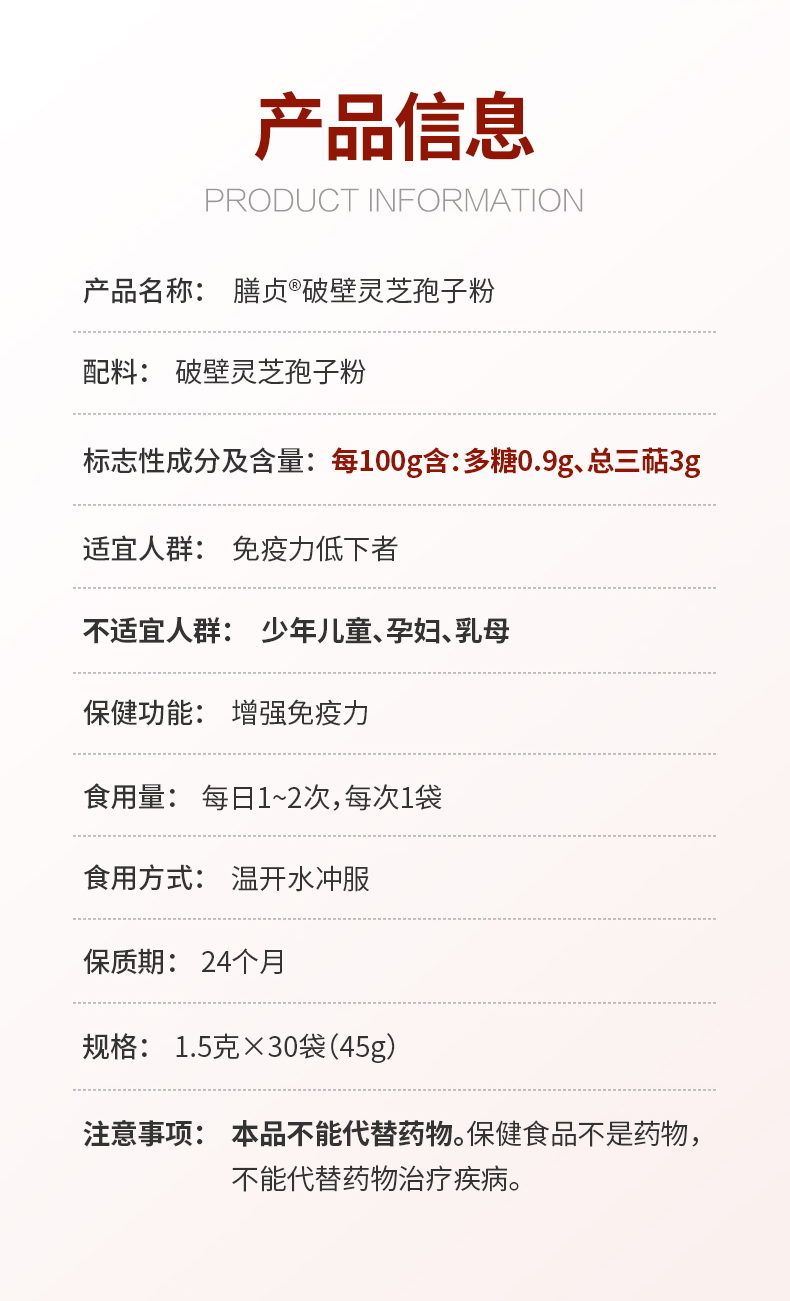【一乐老师专属】膳贞破壁灵芝孢子粉1.5克*30袋/盒