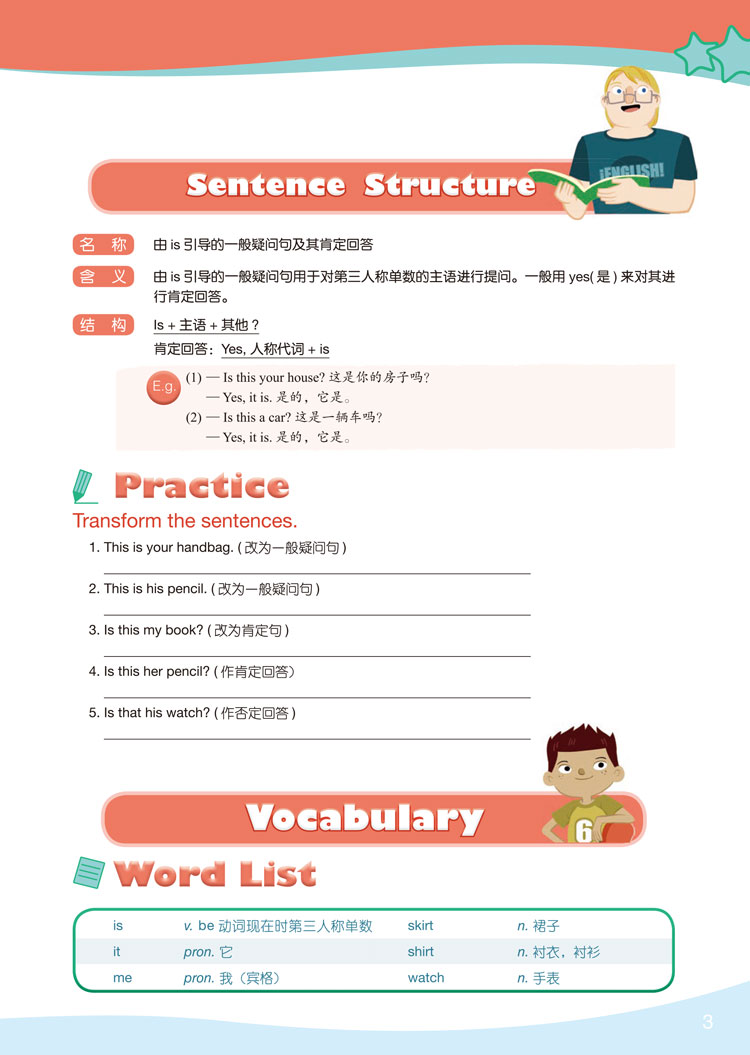 教材重新对《新概念英语》的语言及语法体系进行梳理,按照少年儿童的认知特点、新课标的要求及英语考试改革方案,创新研发出模块化学练体系,在不同单元灵活设计语法(Grammar)、句型结构(Sentence Structure)、词汇(Vocabulary)、听力(Listening)、强化练习(Exercise)和真题演练(Sample Test)六大模块,是一本真正集讲、学、测、考、评于一体的综合性教材,能全面满足中国学生英语培优及应试的需求。