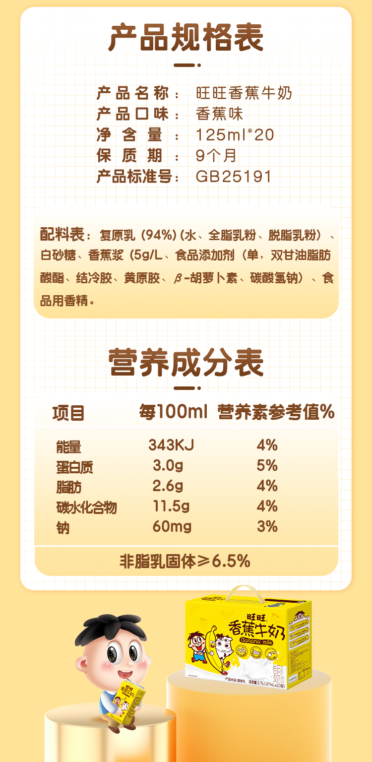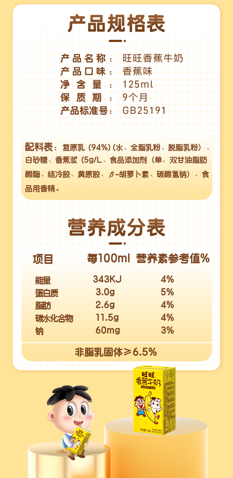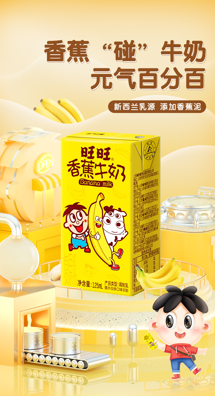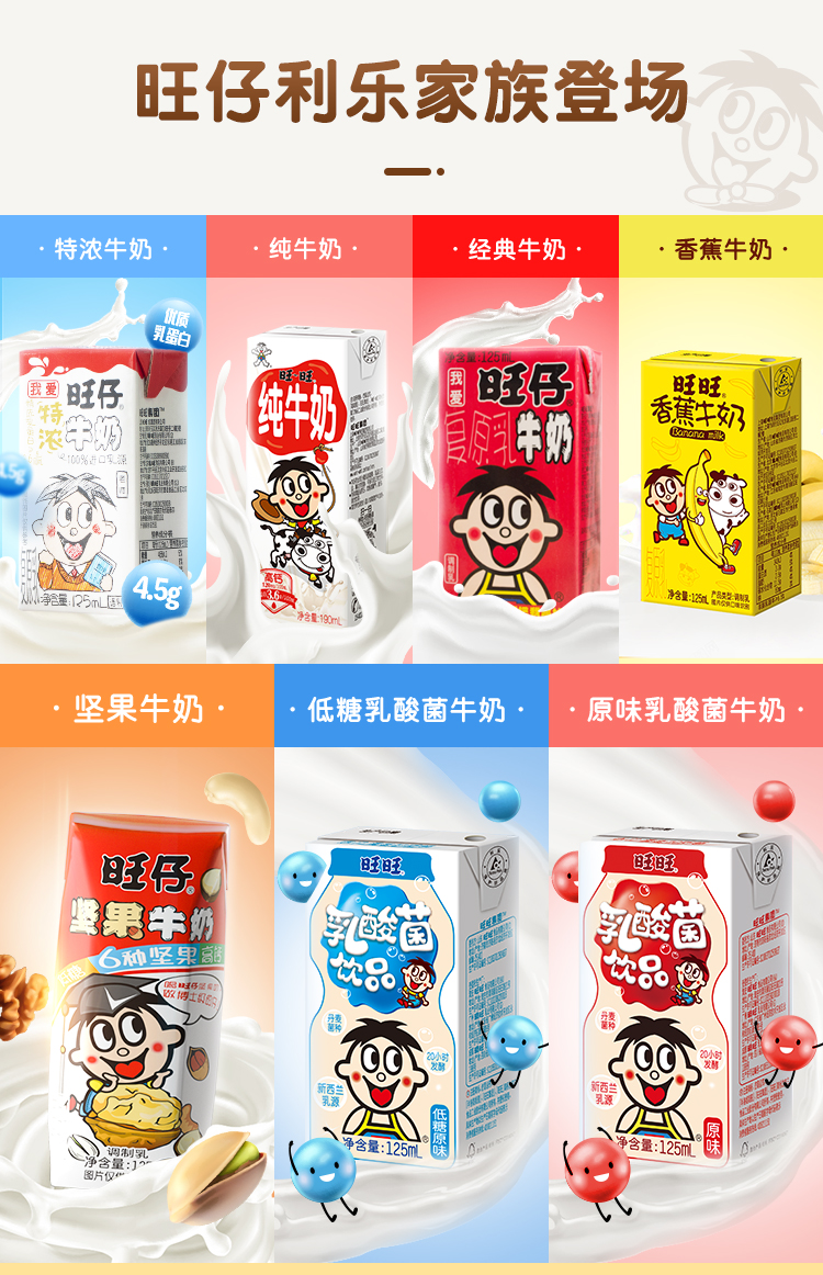 旺仔牛奶145ml*4罐 原味果汁味草莓味